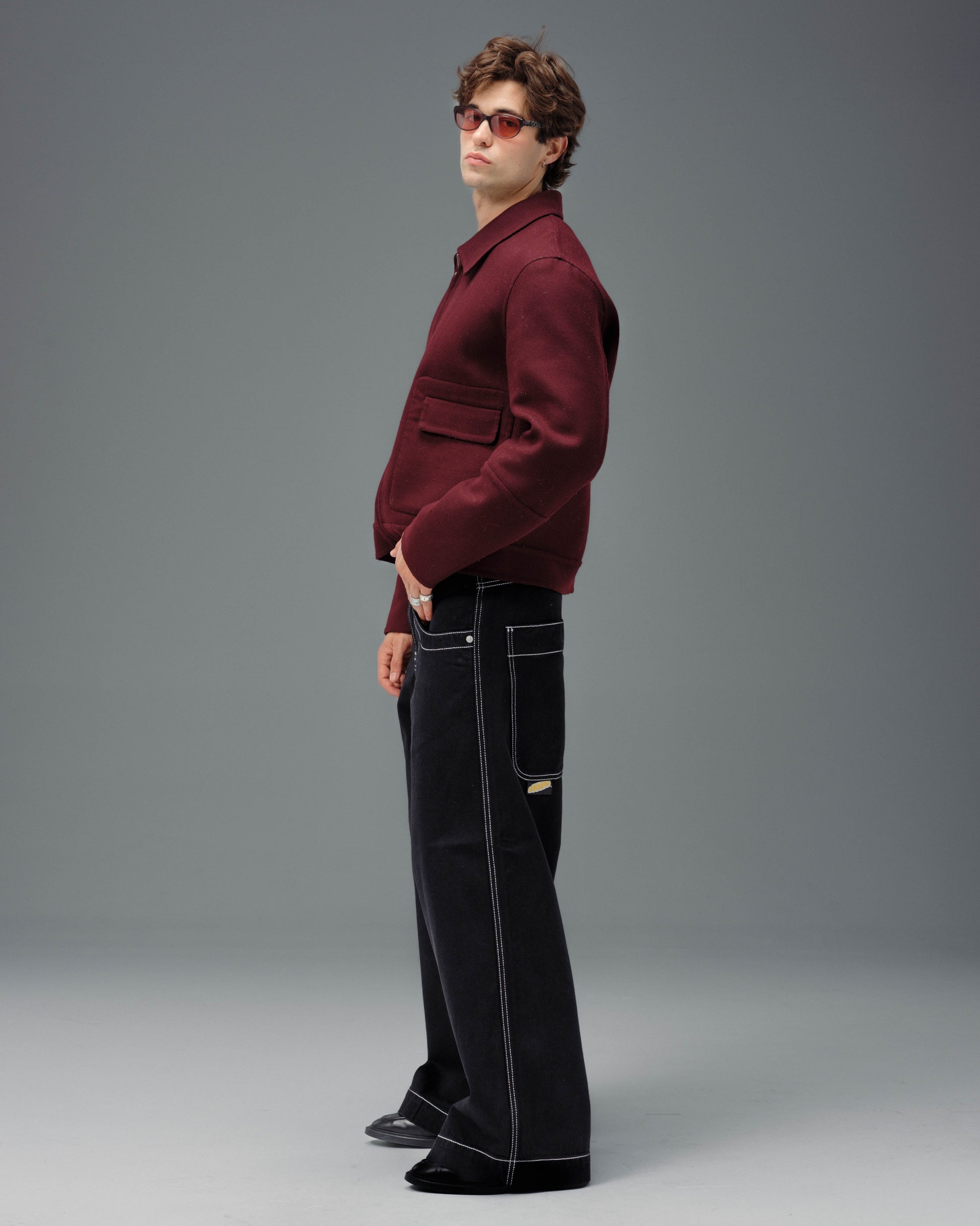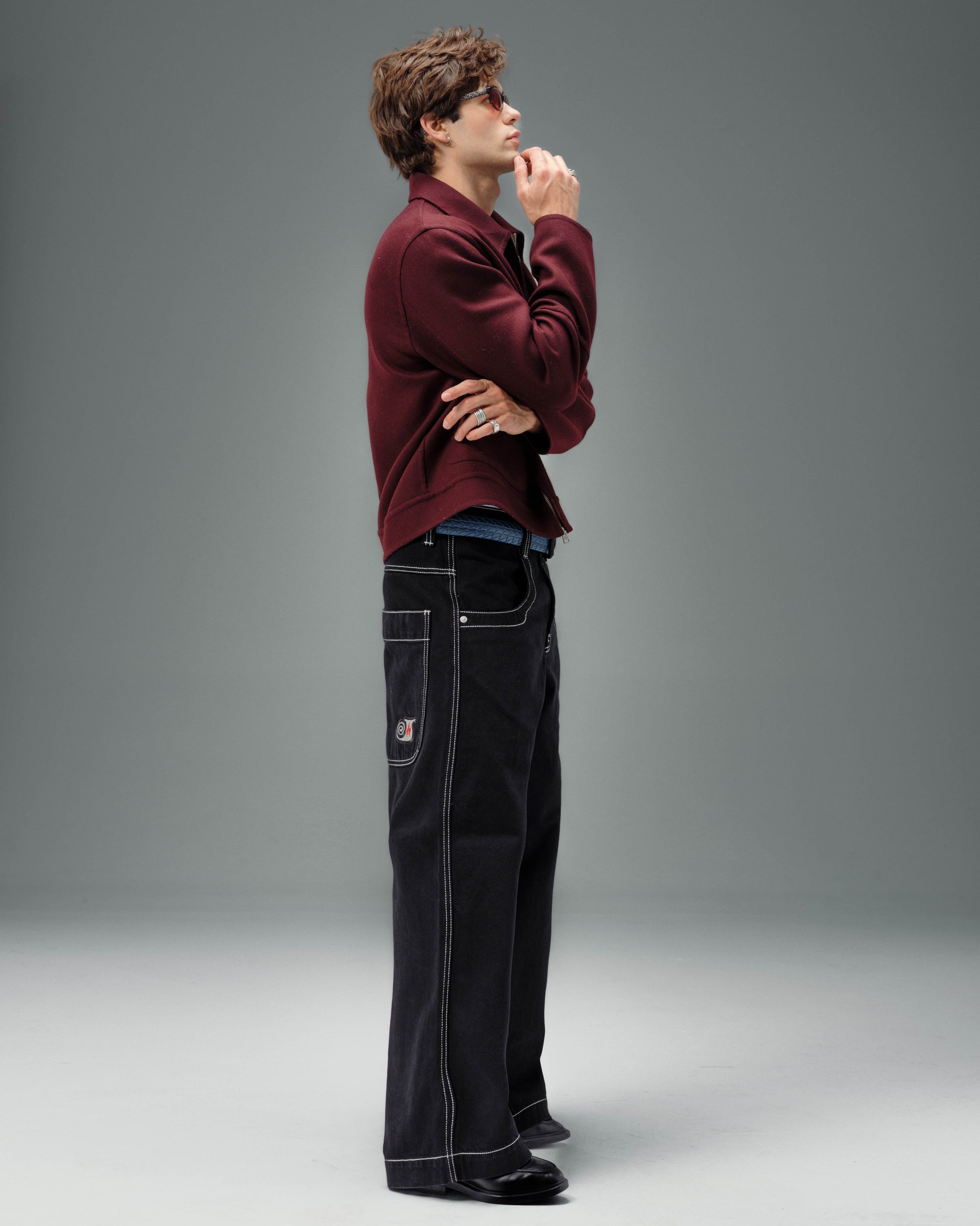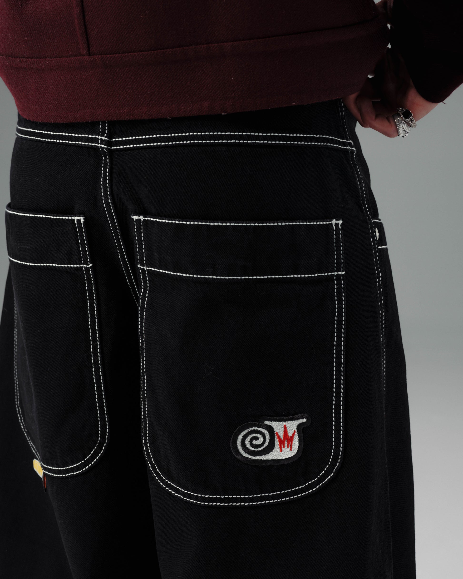 A JNCO classic in Jet Black denim. 13oz 100% cotton rope-dyed with a luxe starch wax finish. 26" bottom opening with contrast stitching and wide double-stitched scoop and back pockets. Features original artwork, labels, and metallic swivel J embroidery on back pocket. Collectible flasher included.
