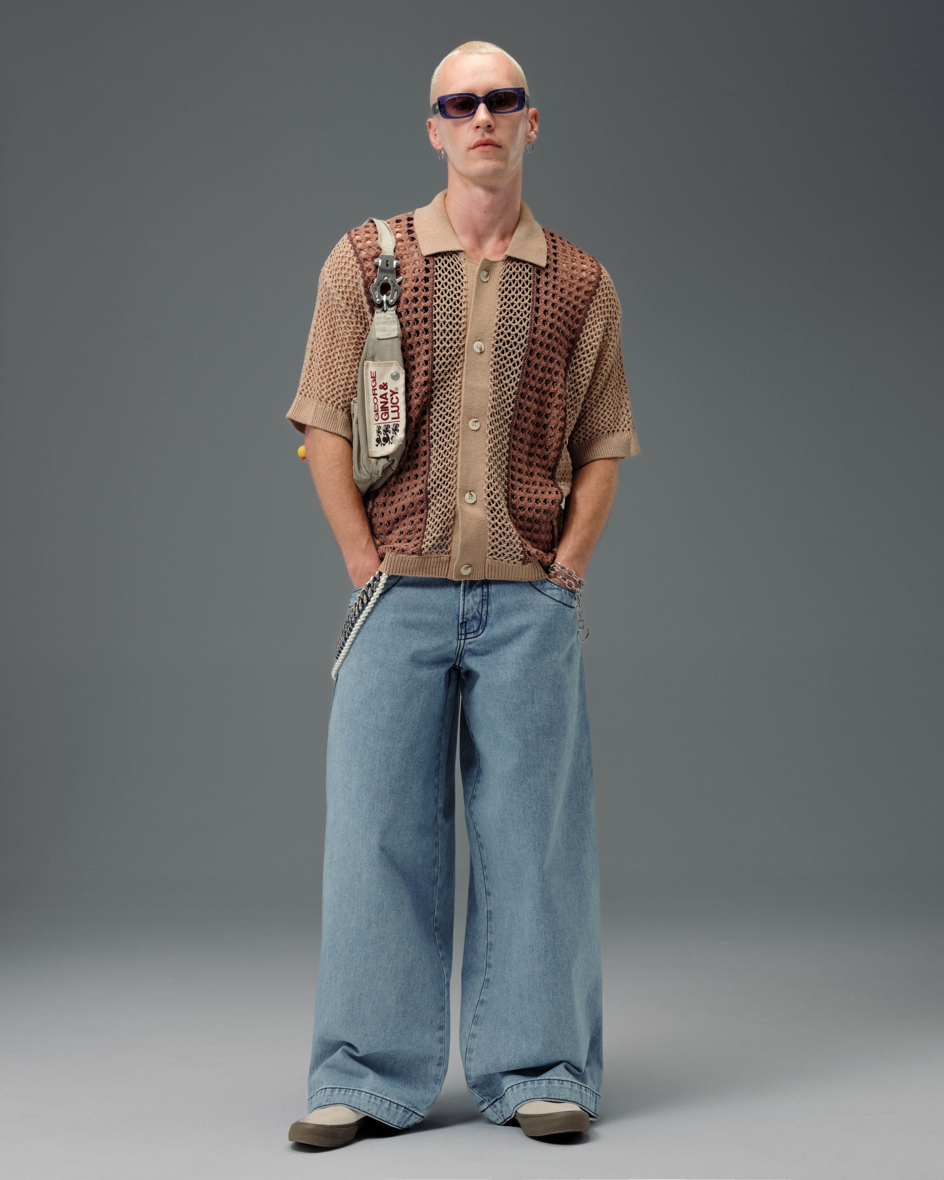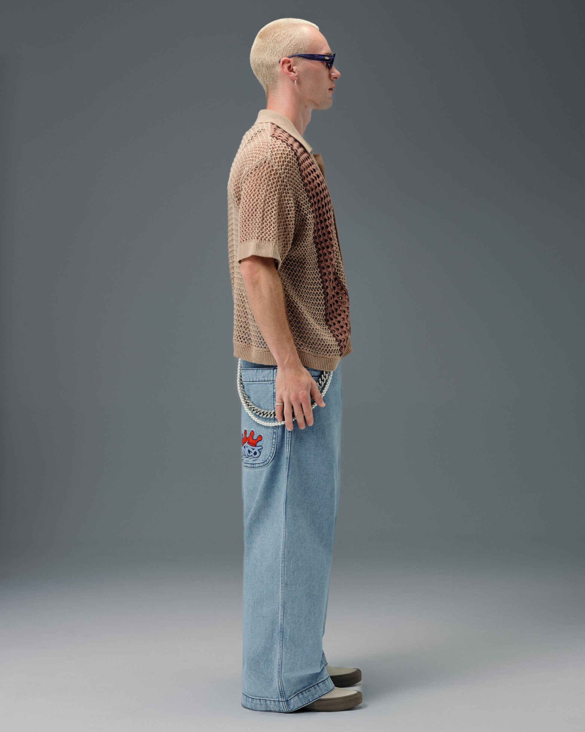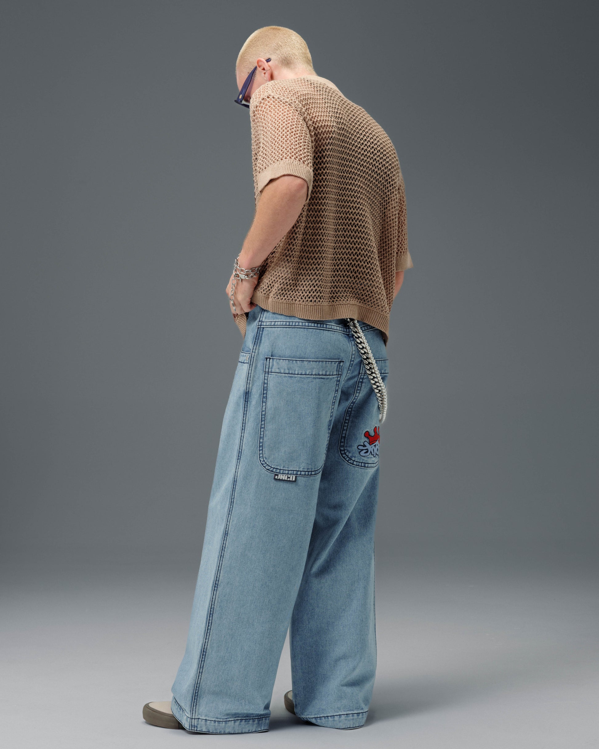 A revamped rendition of the original Twin Cannon in a classic Antique Wash. 14oz 100% cotton denim with a 3x1 left-hand weave and original contrast stitching. 26" bottom opening with double chain stitch detailing on the waistband and hem. Features the iconic JNCO Crown logo embroidery, and new custom buttons and rivets. Collectible new edition flasher included.