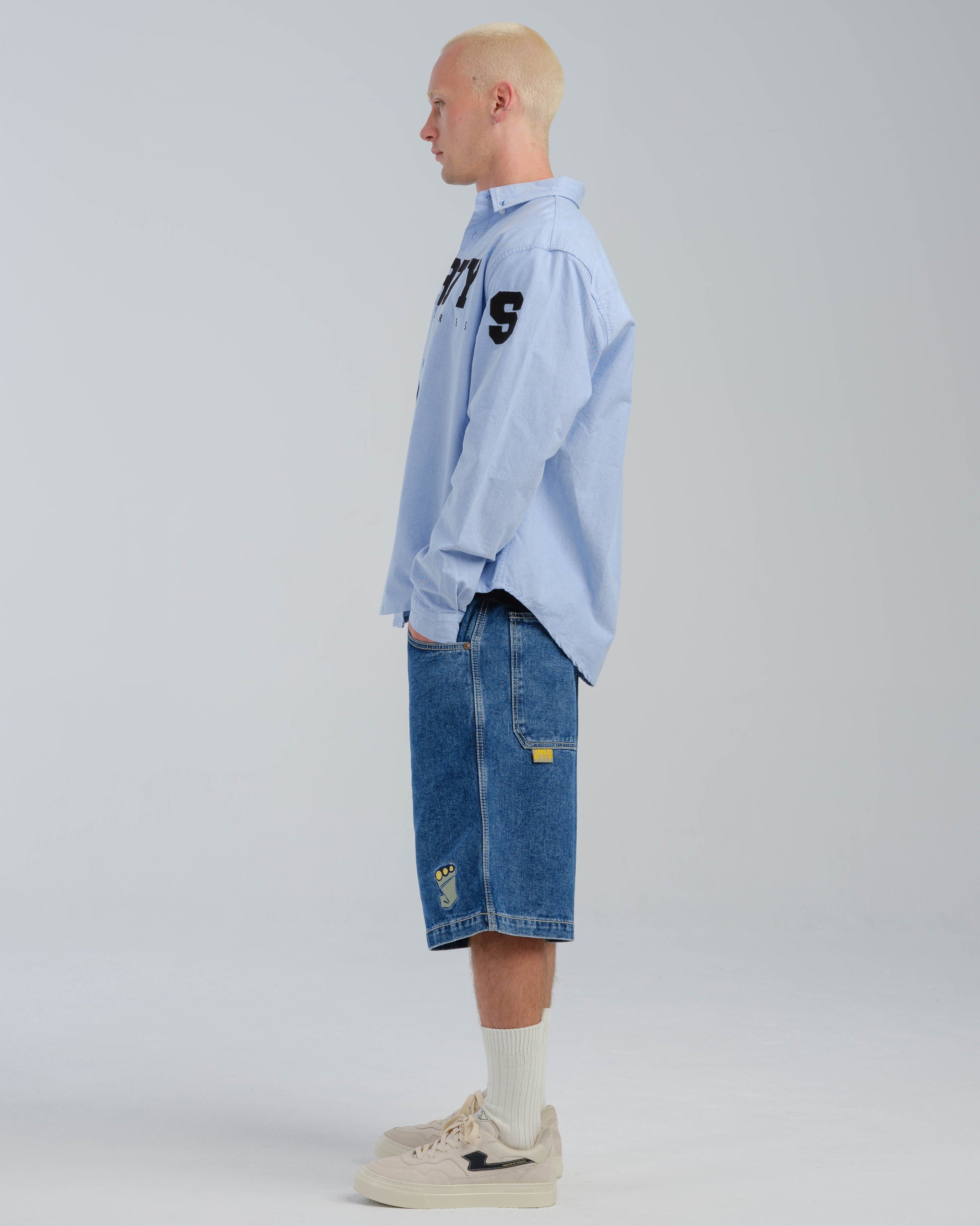 JNCO classic with a 14" inseam. 14oz 100% cotton denim, contrast double stitching. Original artwork, labels, and "Jester J" embroidery. Collectible flasher included.