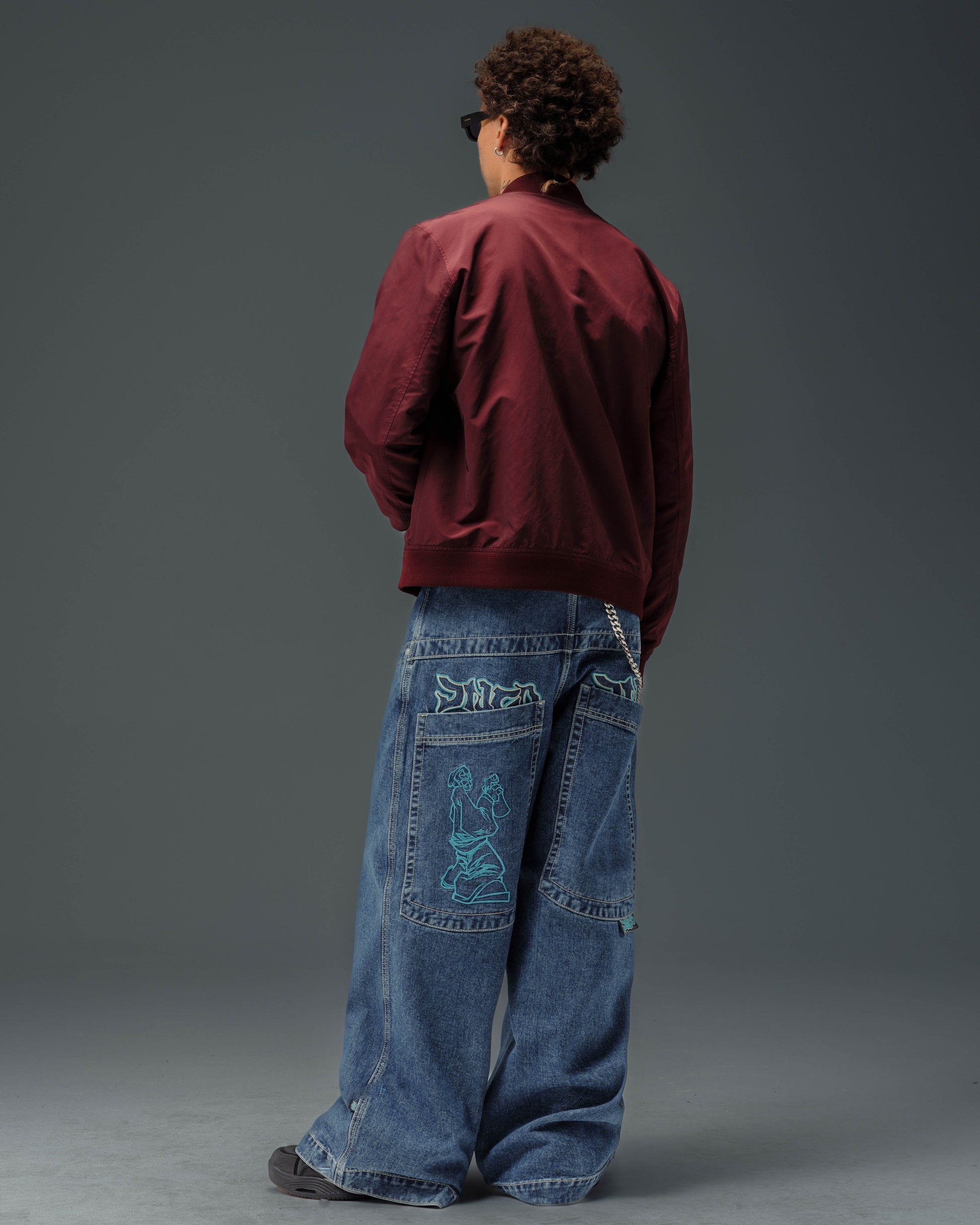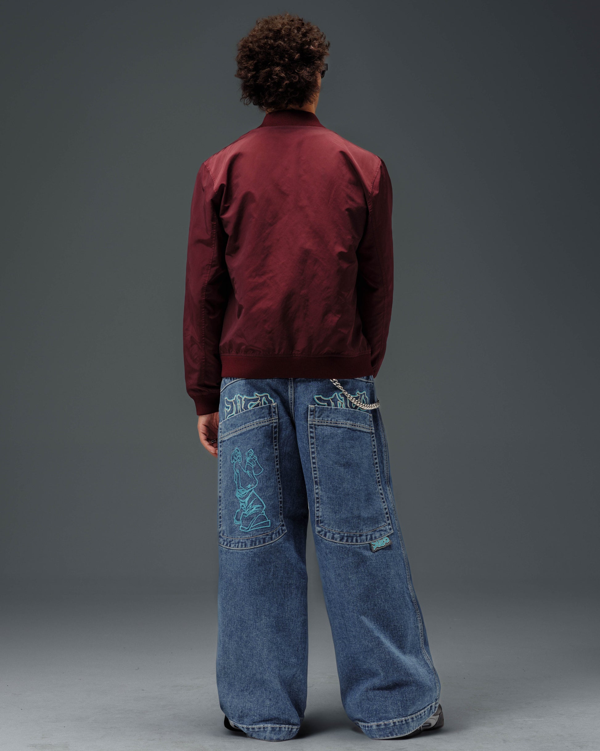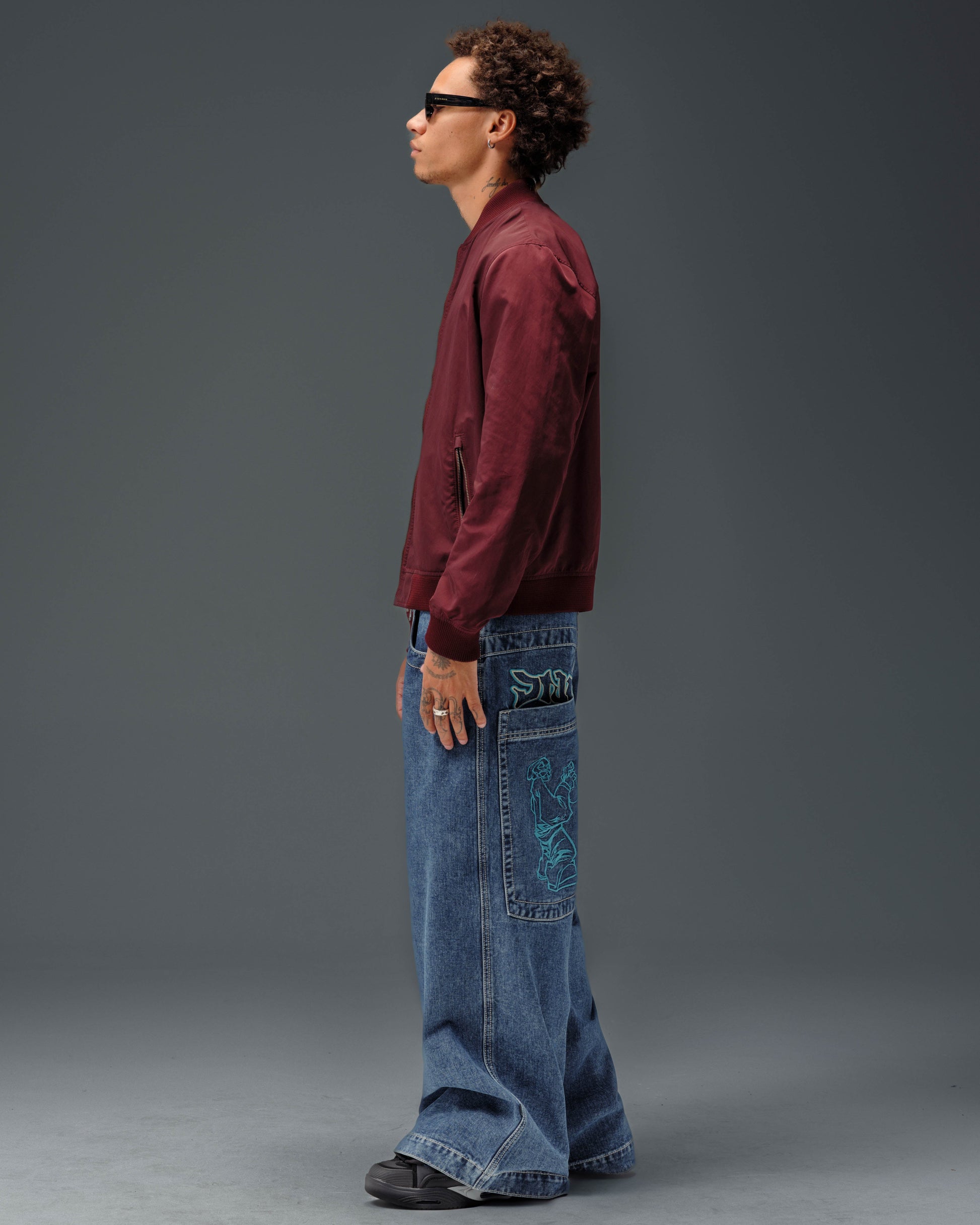 Collector’s item from the original JNCO Roots line. Dark Stone Wash, 26" bottom opening. 14oz 100% cotton denim with heavy double contrast stitching. JNCO logo embroidery above both back pockets with "tagger" embroidery below. Original labels, metallic Artistical Uprising flasher included. Limited Edition – very limited stock.