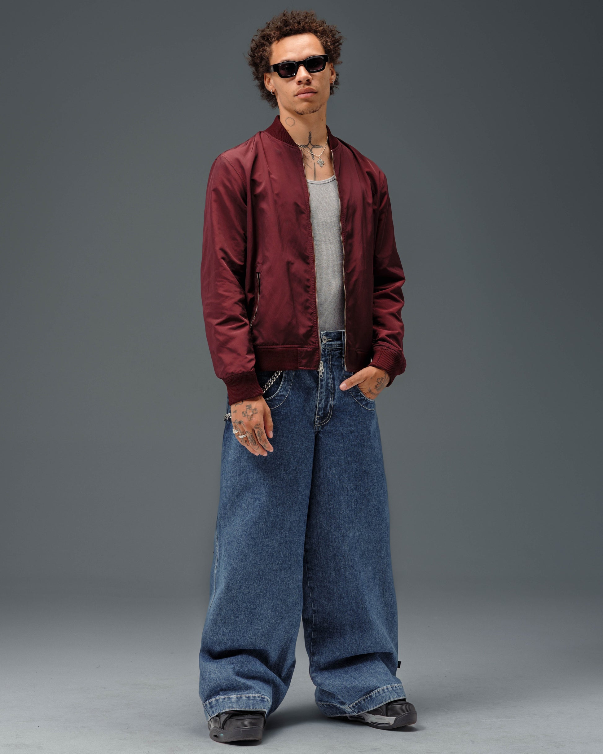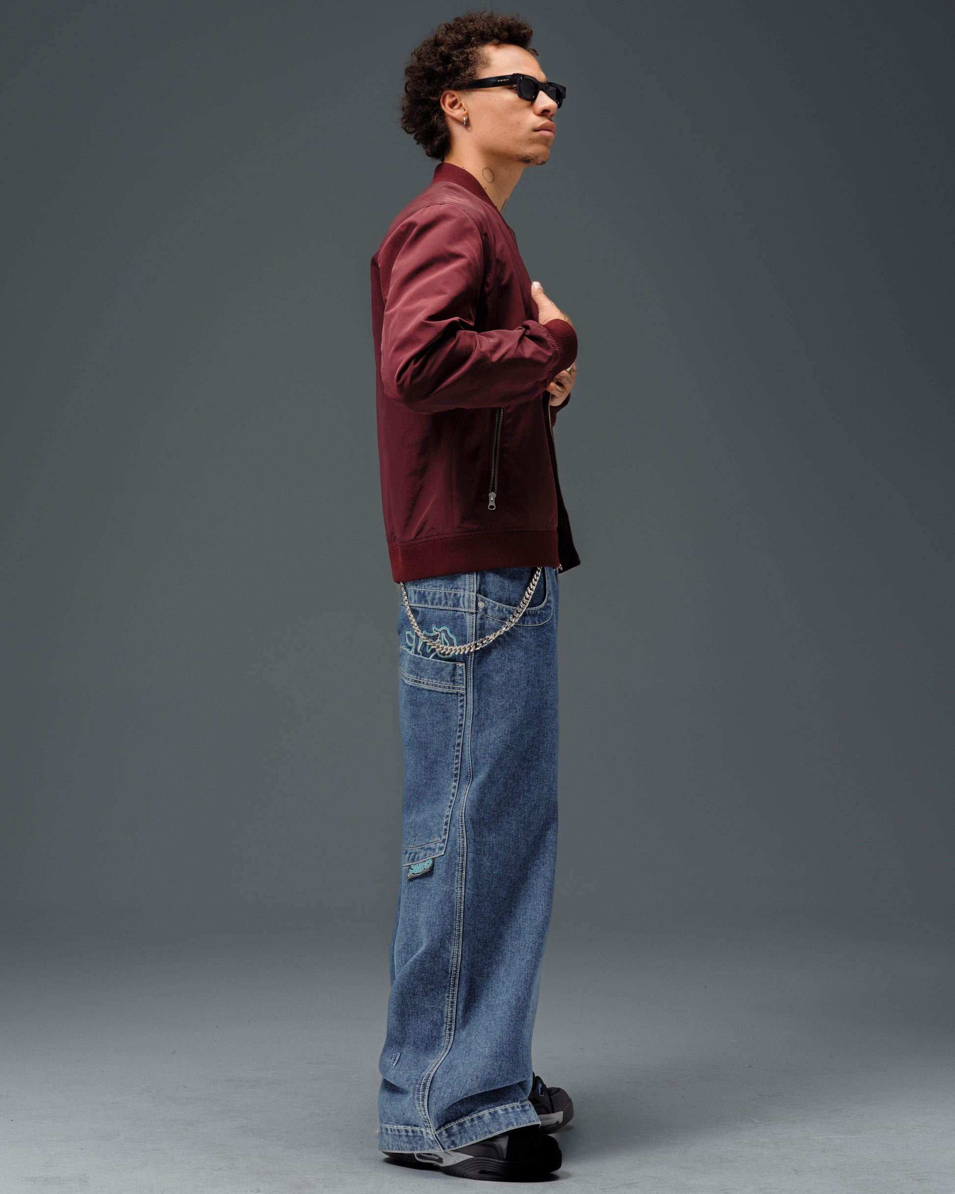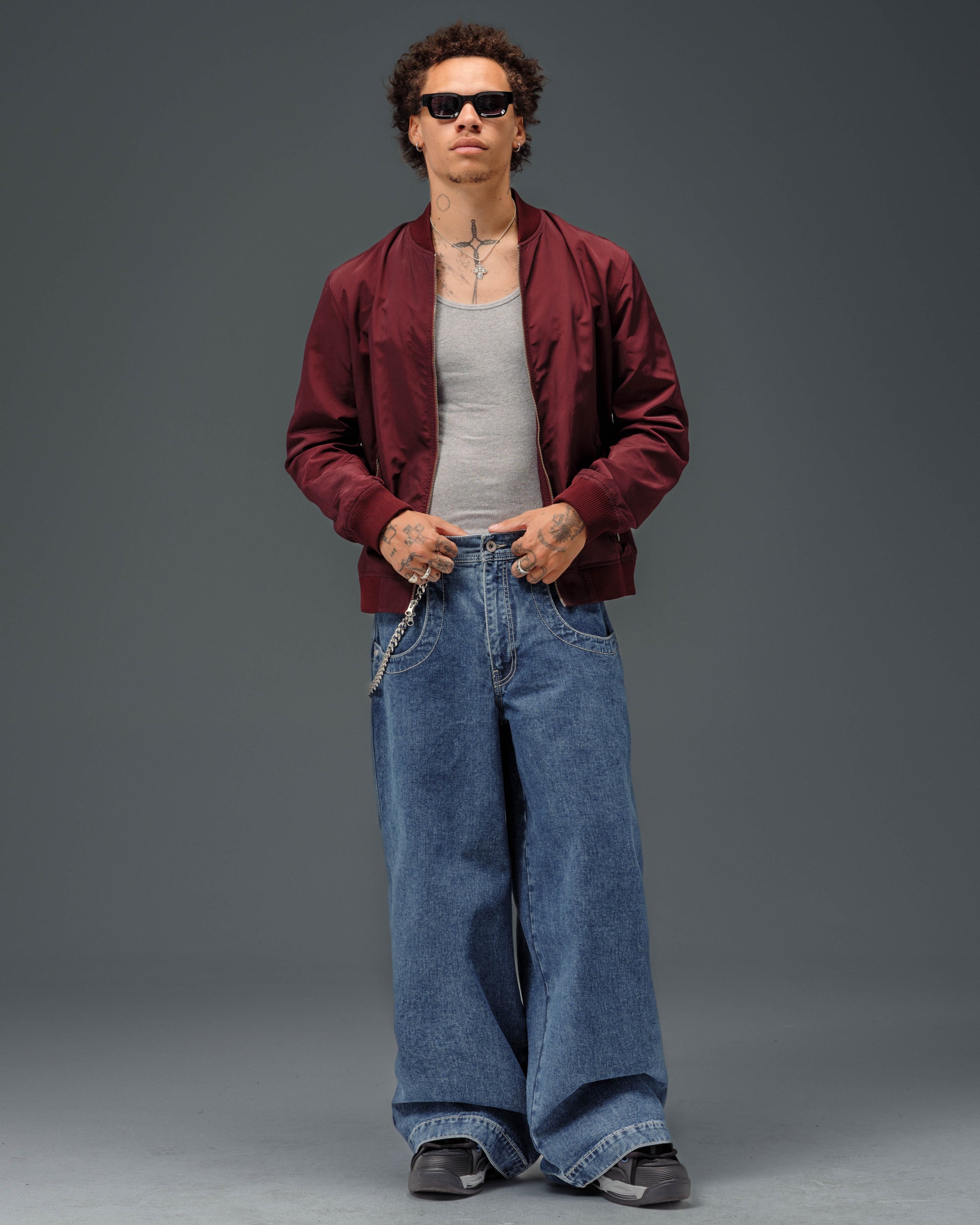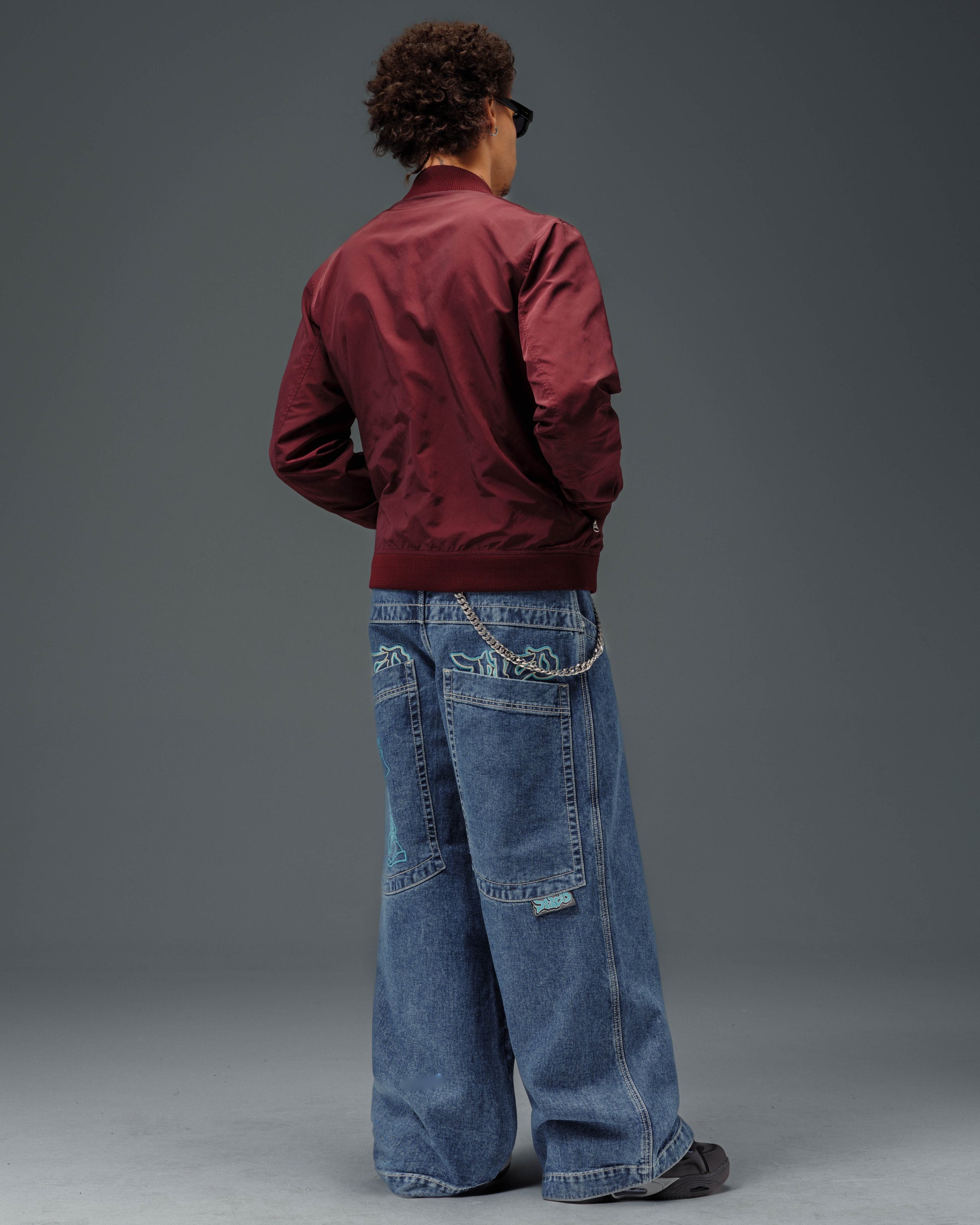 Collector’s item from the original JNCO Roots line. Dark Stone Wash, 26" bottom opening. 14oz 100% cotton denim with heavy double contrast stitching. JNCO logo embroidery above both back pockets with "tagger" embroidery below. Original labels, metallic Artistical Uprising flasher included. Limited Edition – very limited stock.