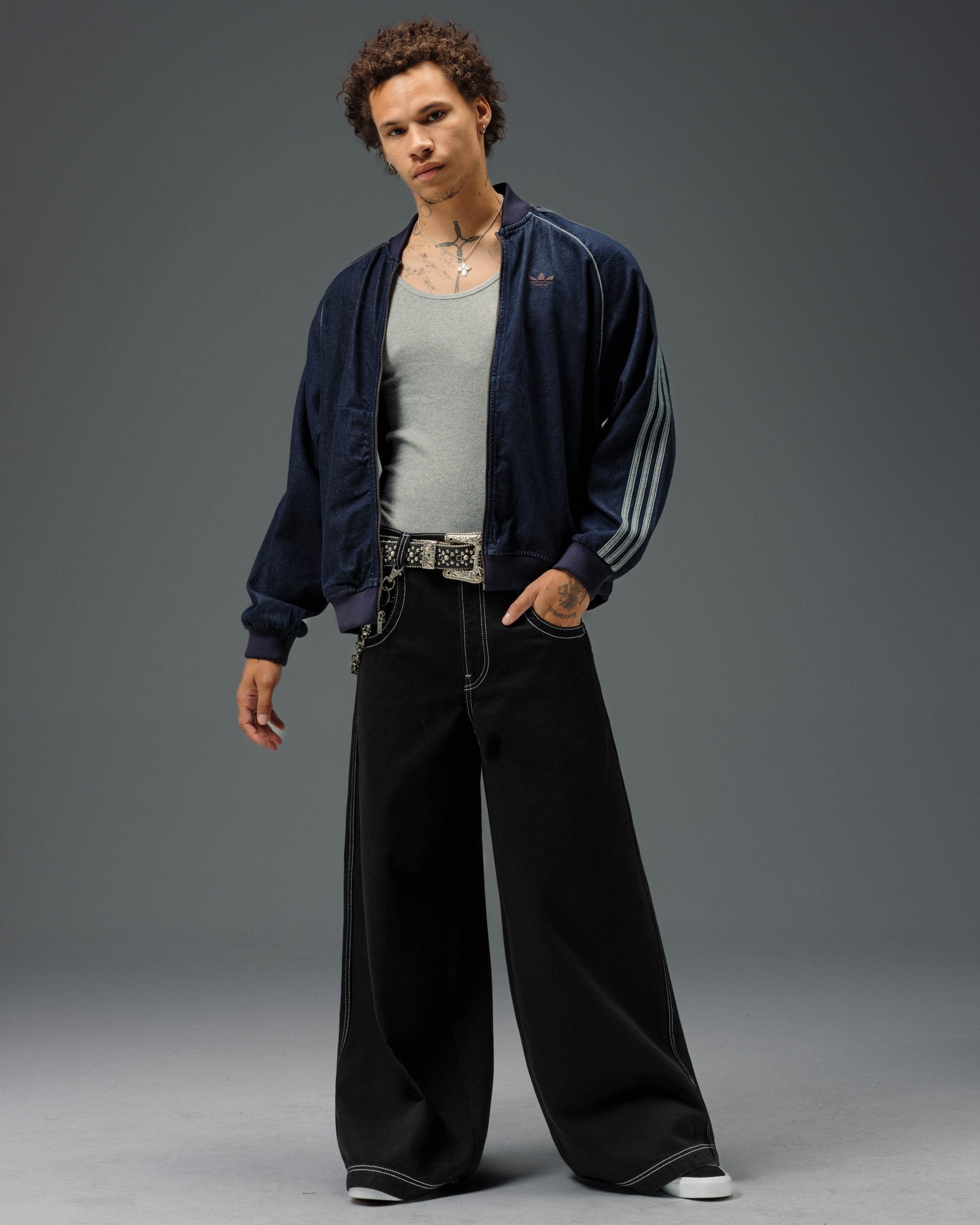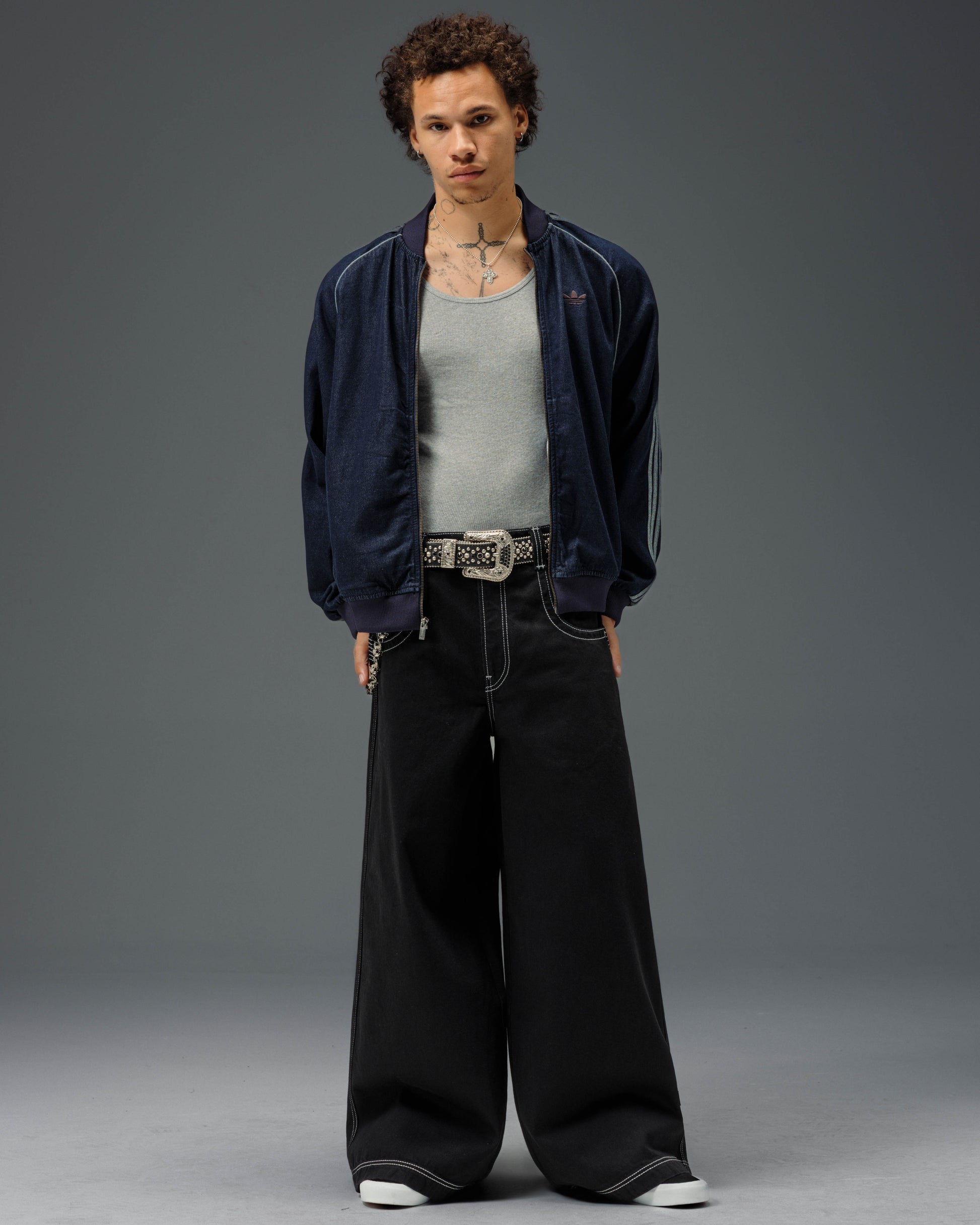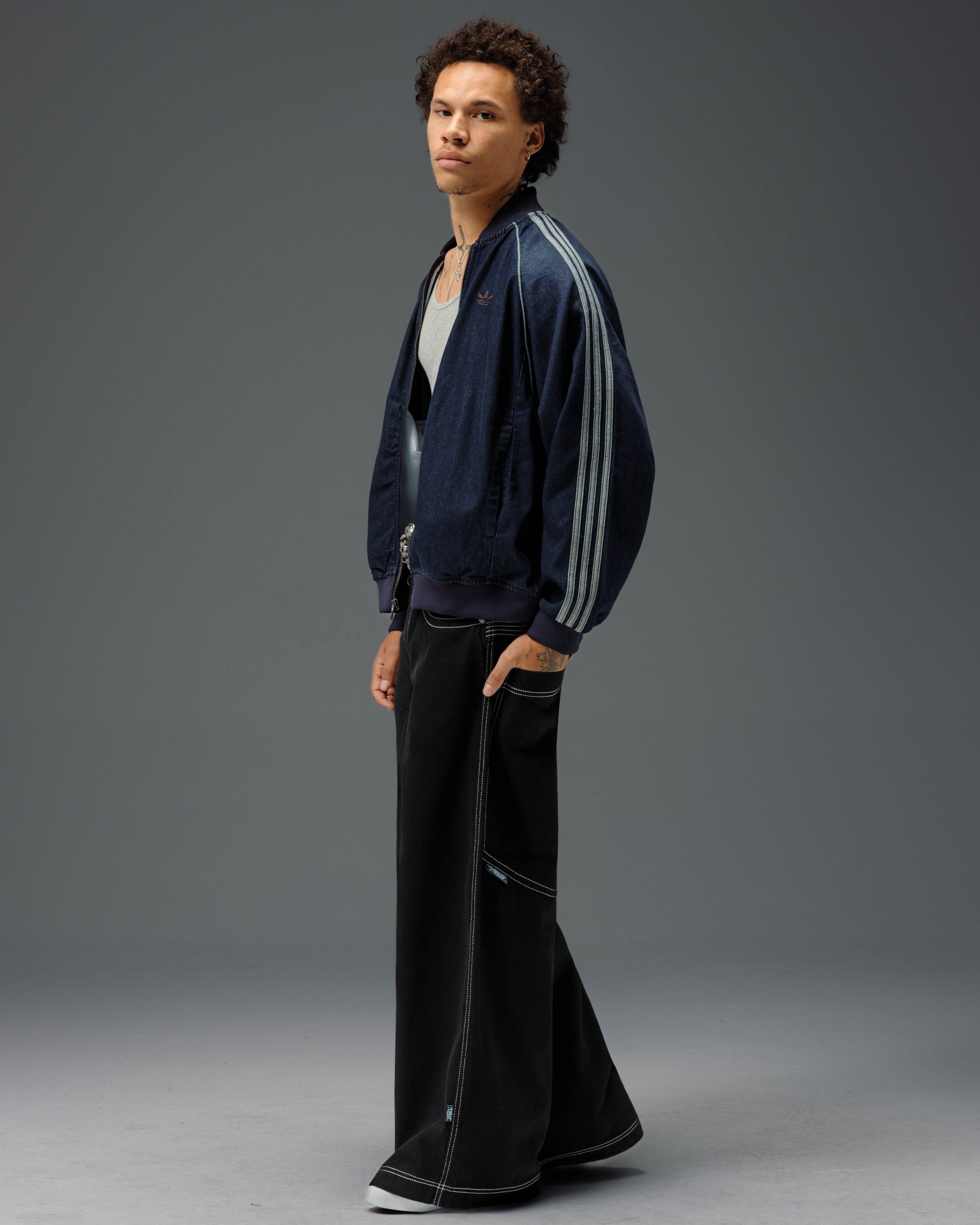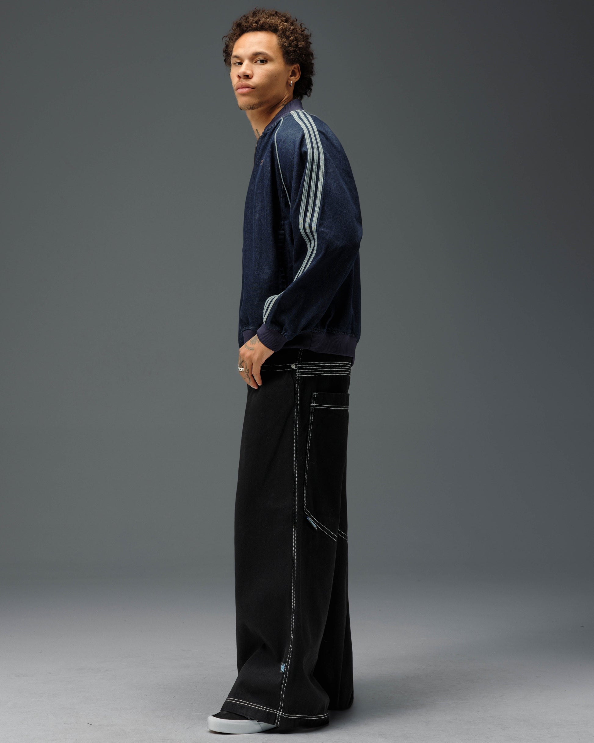 Collector’s item from the original JNCO “Roots” line. Jet Black denim, 30" bottom opening. 13oz rope-dyed 100% cotton with a luxe starch wax finish. Heavy contrast stitching and six rows of double back yoke seams. Back leg logo embroidery with over 50,000 stitches, signed by the original graffiti artist. Original labels, collectible flasher, and JNCO Roots stickers. Limited Edition – very limited stock.