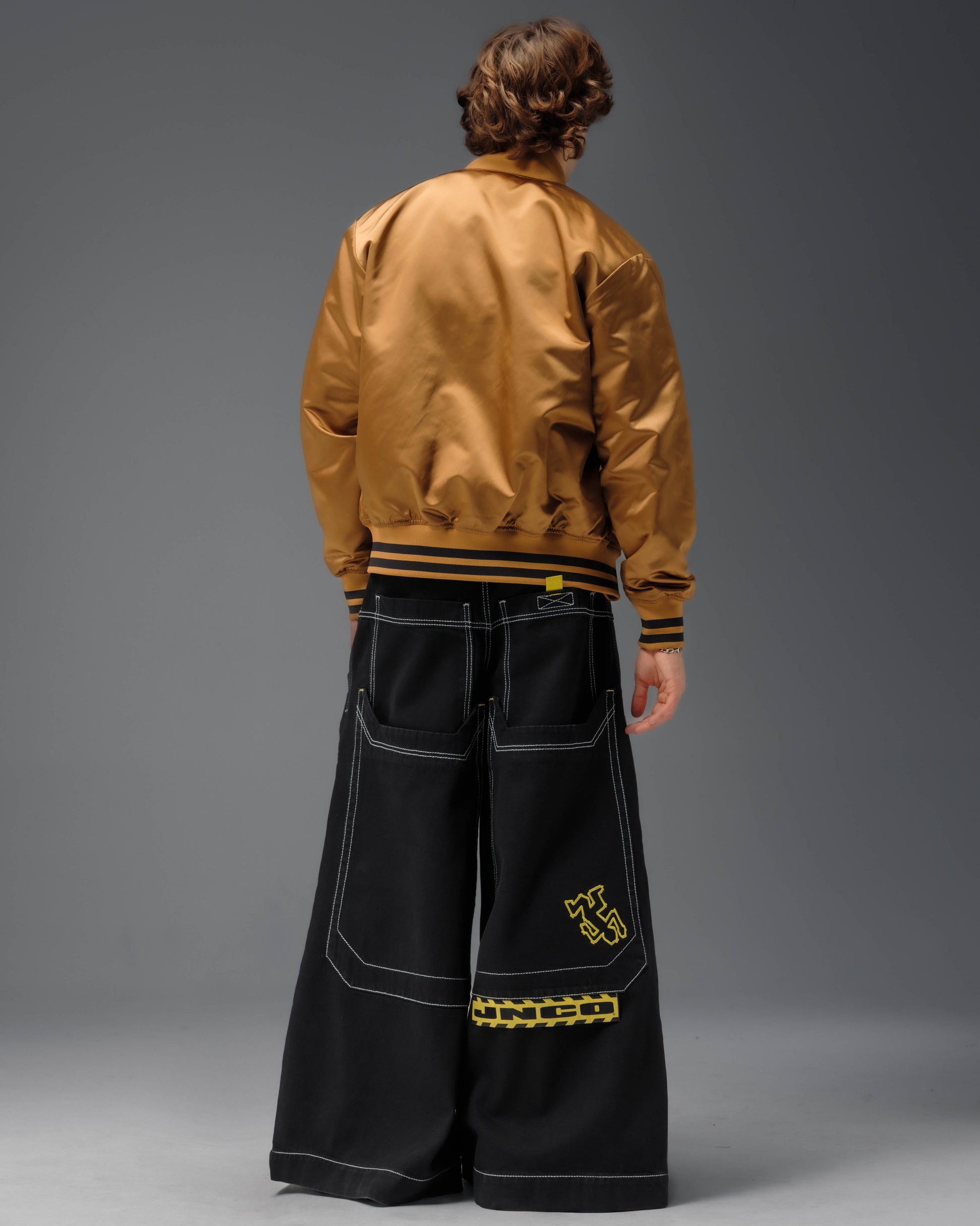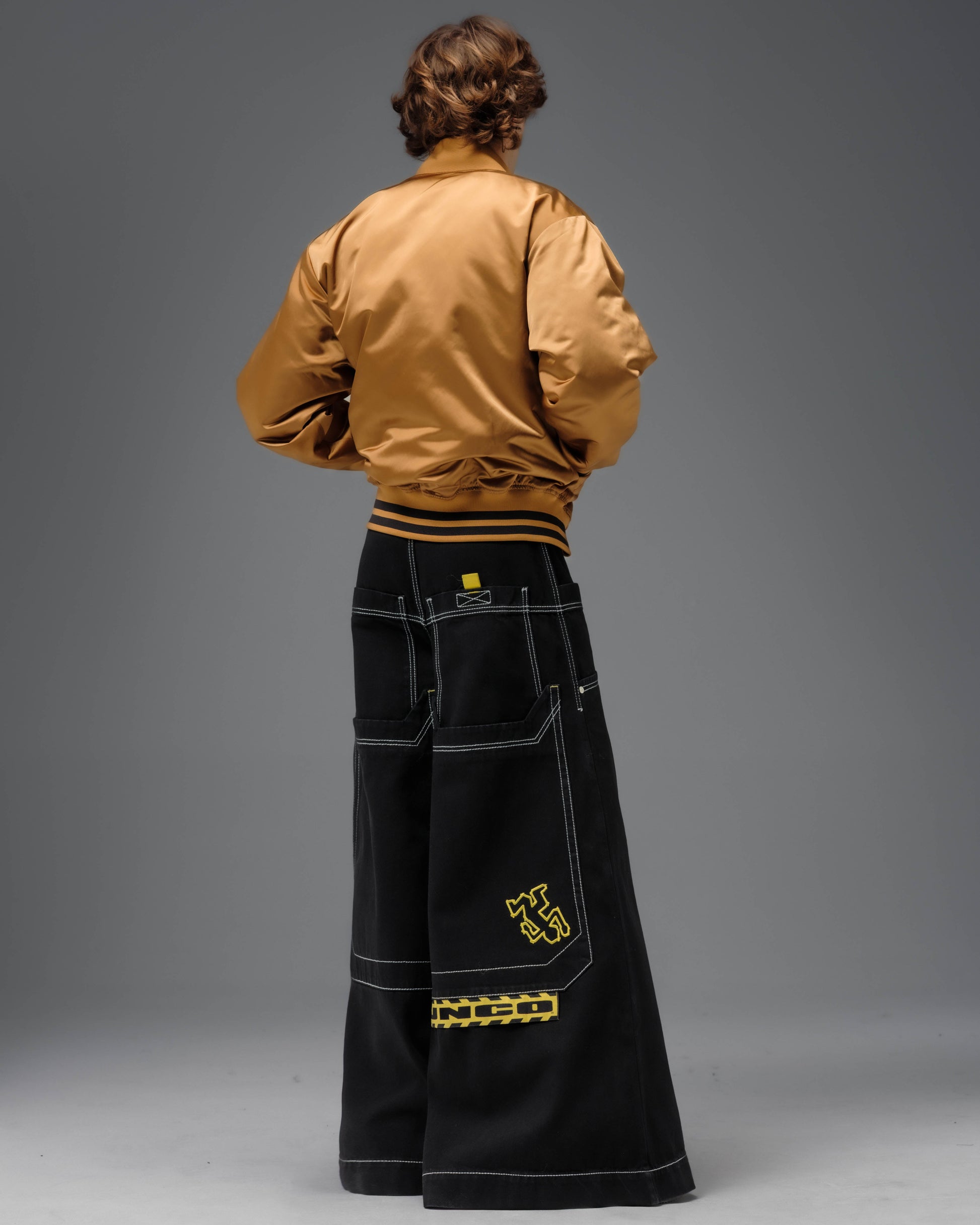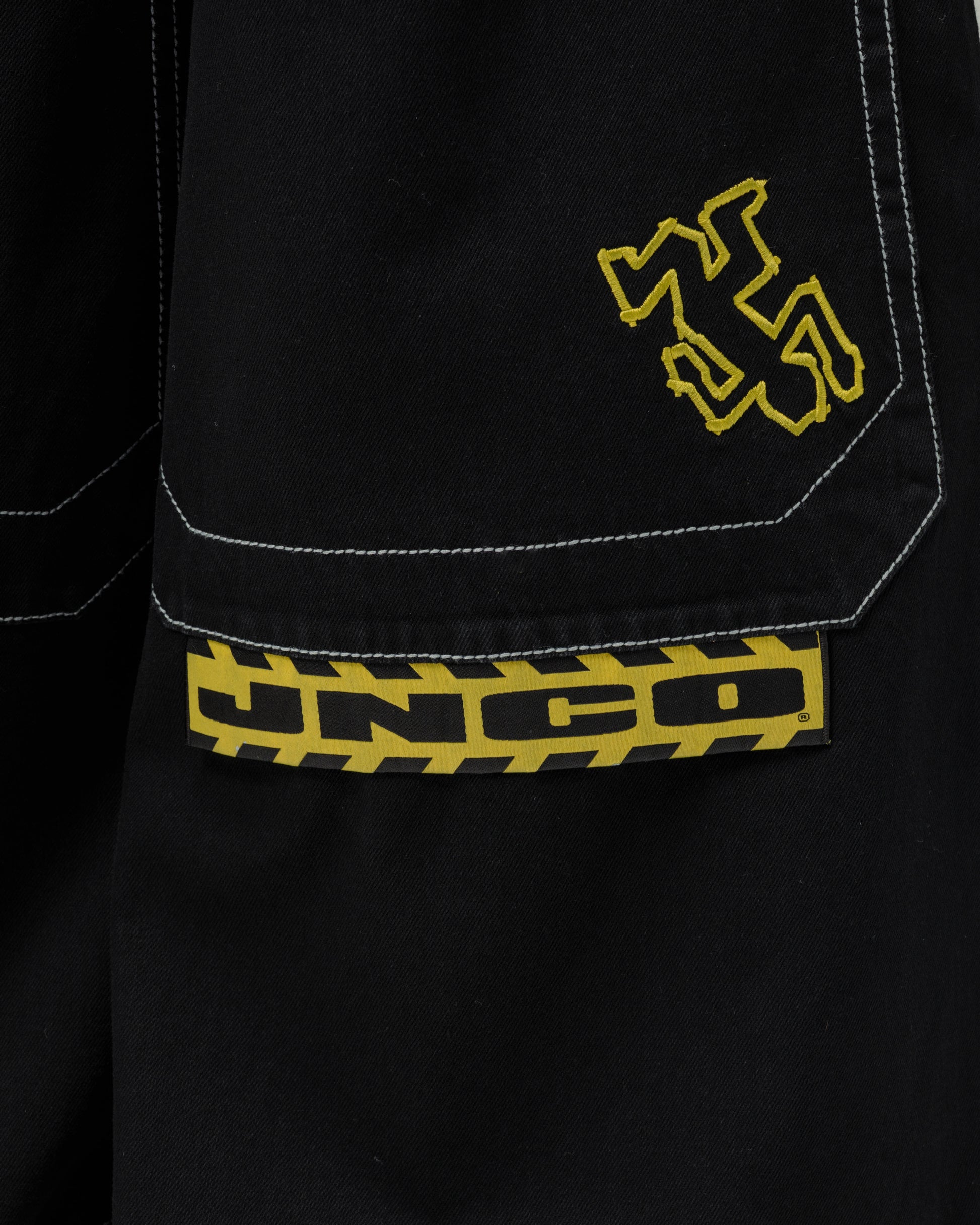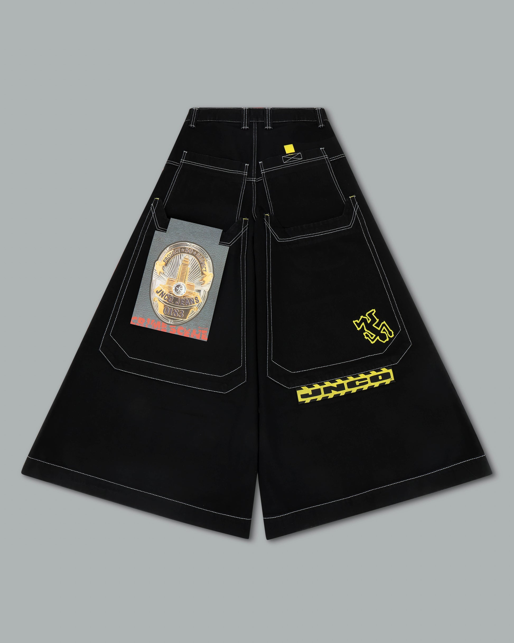 A standout from the FIVE-0 Collection in Jet Black. 13 oz. rope-dyed jet black denim, finished with a luxe blended starch wax for a smooth, structured feel. Crime Scene embroidery on back pocket with yellow zipper tape at the front. Collectible 50 Badge flasher attached. Limited Edition – very Limited Stock.