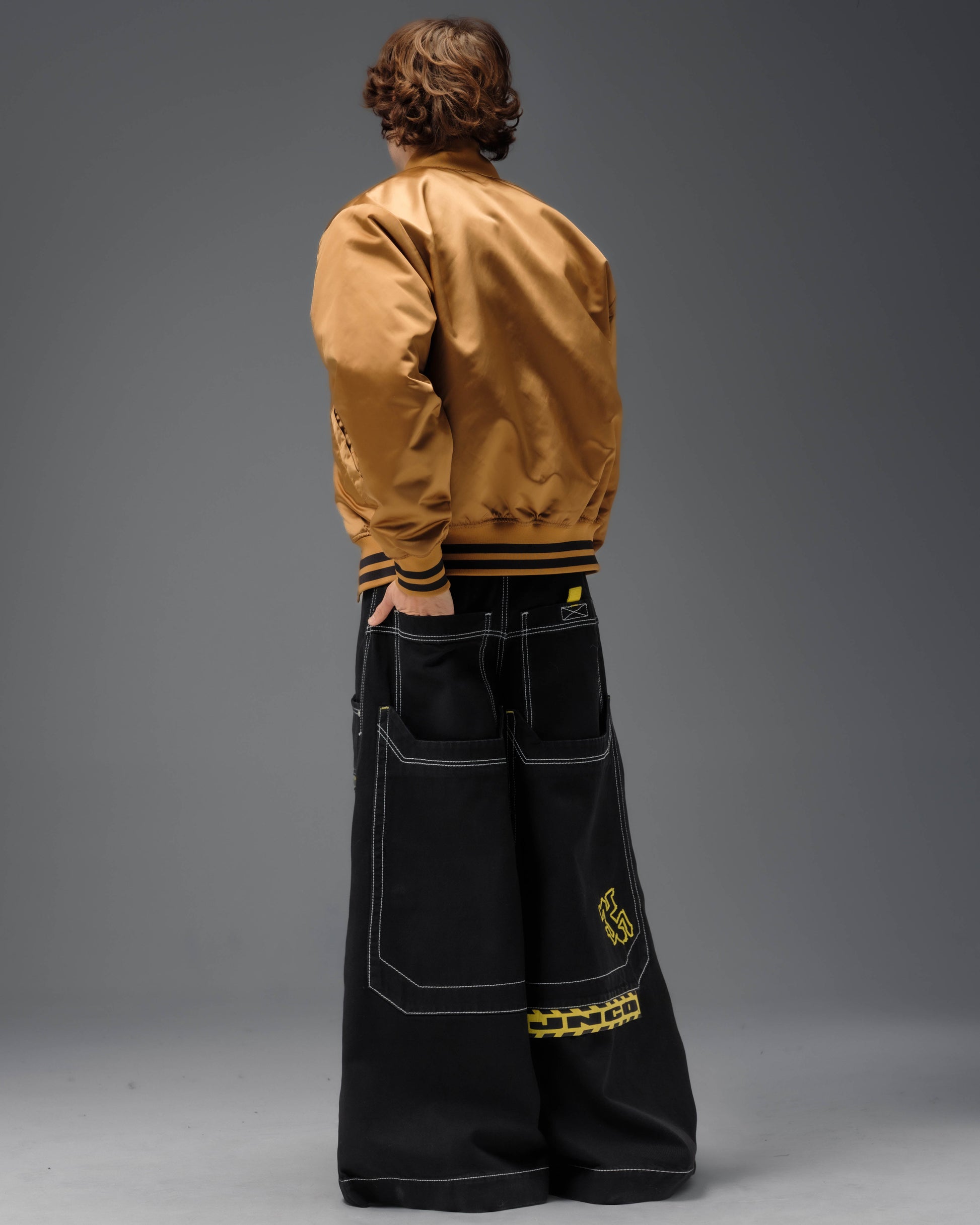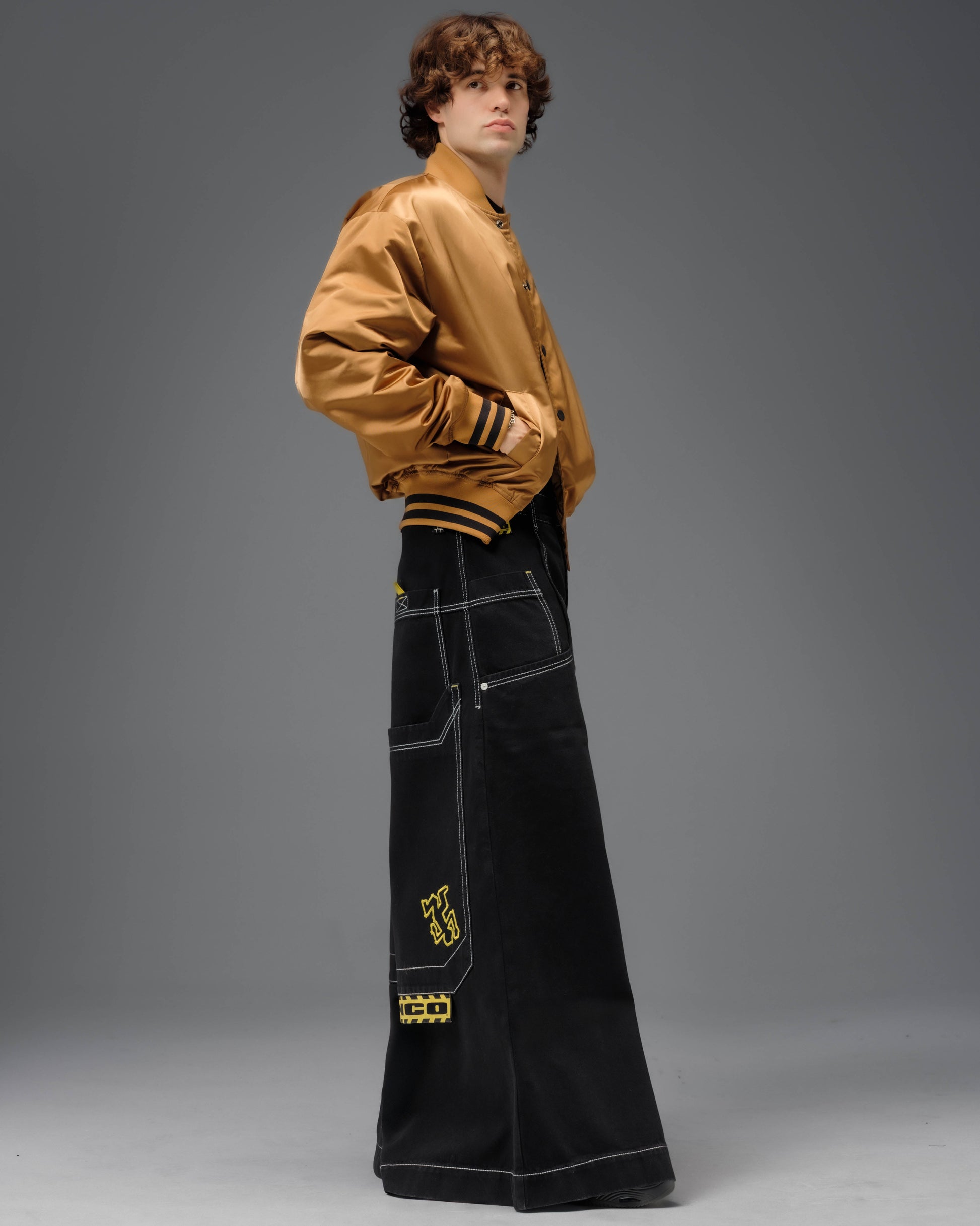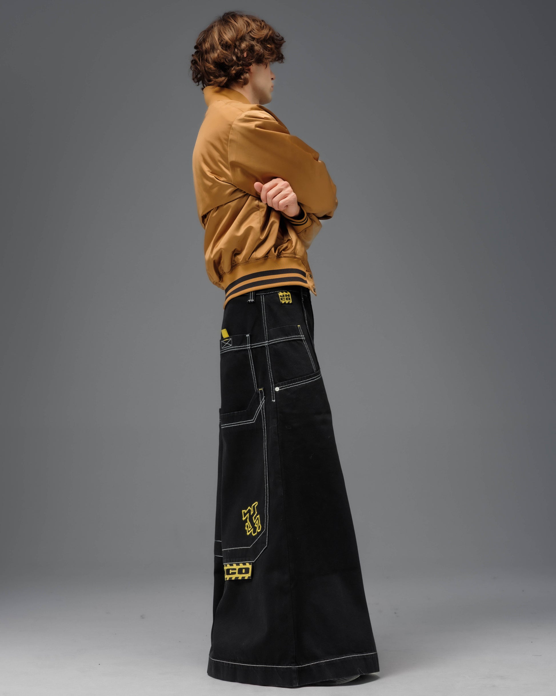 A standout from the FIVE-0 Collection in Jet Black. 13 oz. rope-dyed jet black denim, finished with a luxe blended starch wax for a smooth, structured feel. Crime Scene embroidery on back pocket with yellow zipper tape at the front. Collectible 50 Badge flasher attached. Limited Edition – very Limited Stock.
