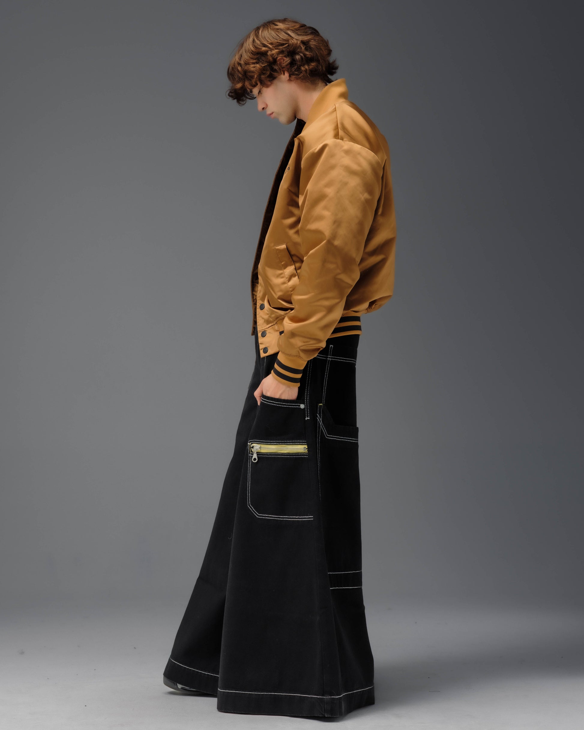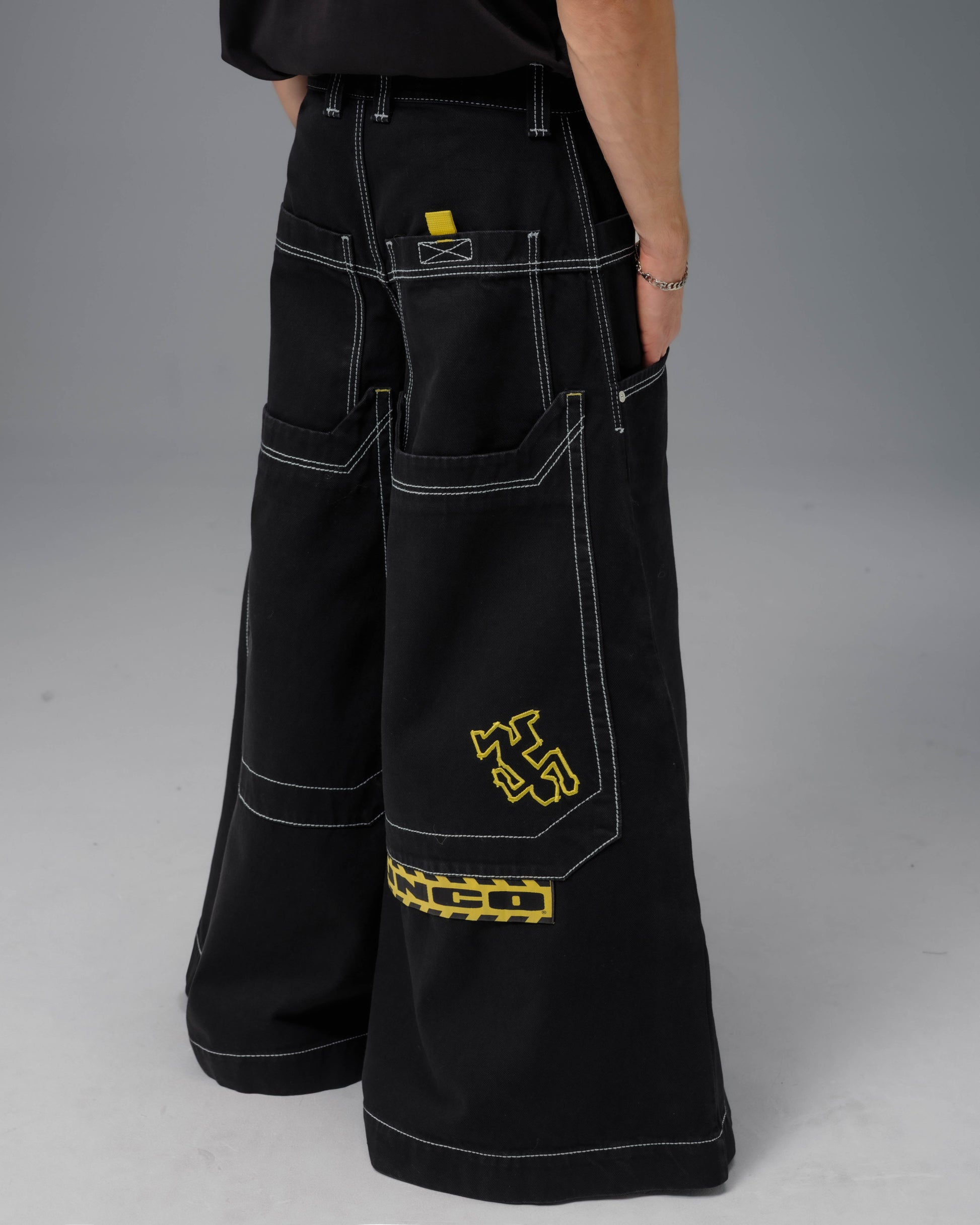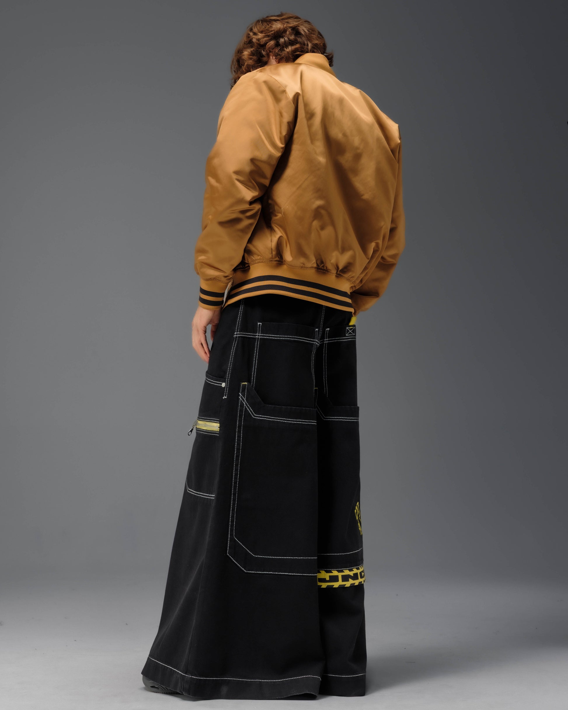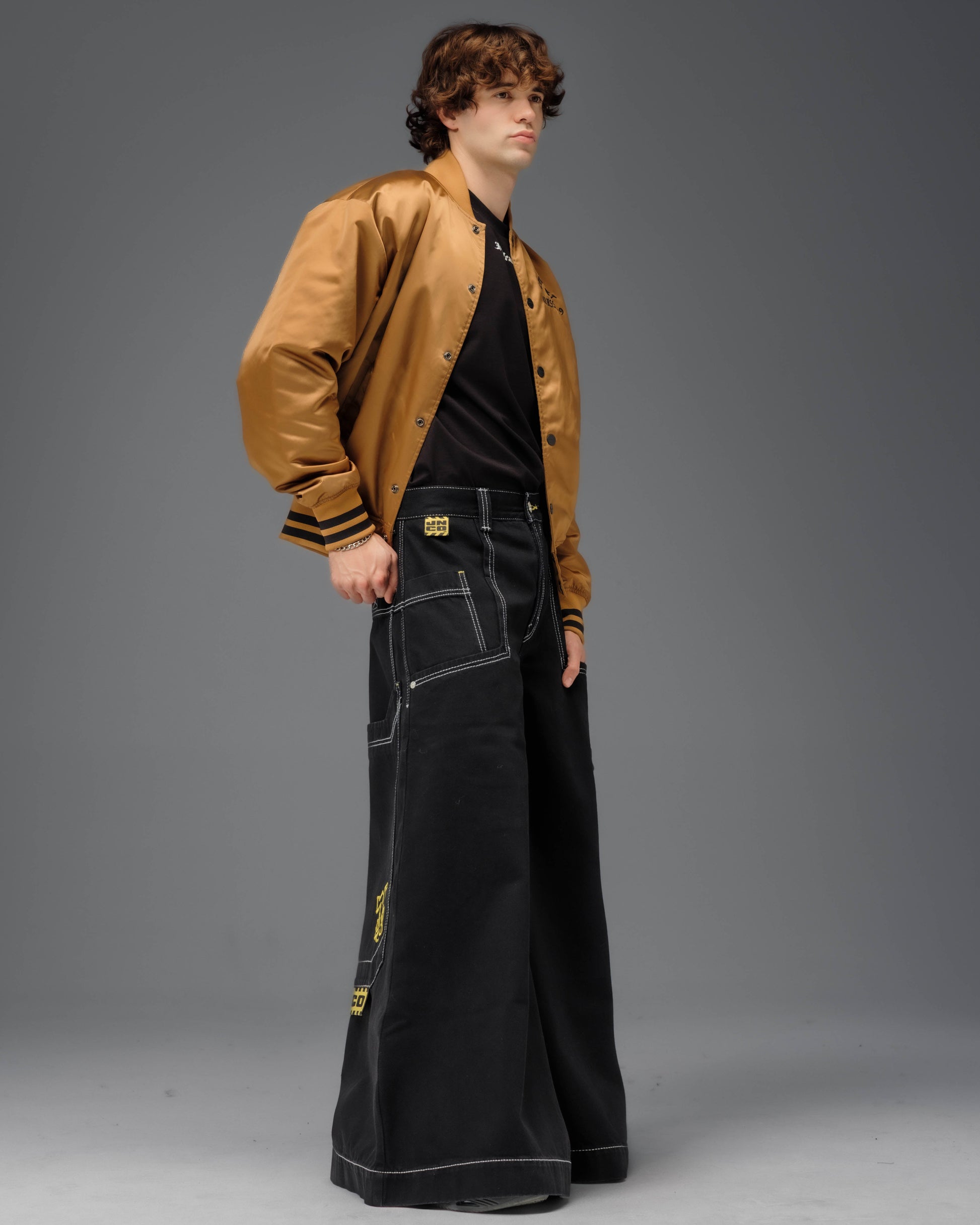 A standout from the FIVE-0 Collection in Jet Black. 13 oz. rope-dyed jet black denim, finished with a luxe blended starch wax for a smooth, structured feel. Crime Scene embroidery on back pocket with yellow zipper tape at the front. Collectible 50 Badge flasher attached. Limited Edition – very Limited Stock.