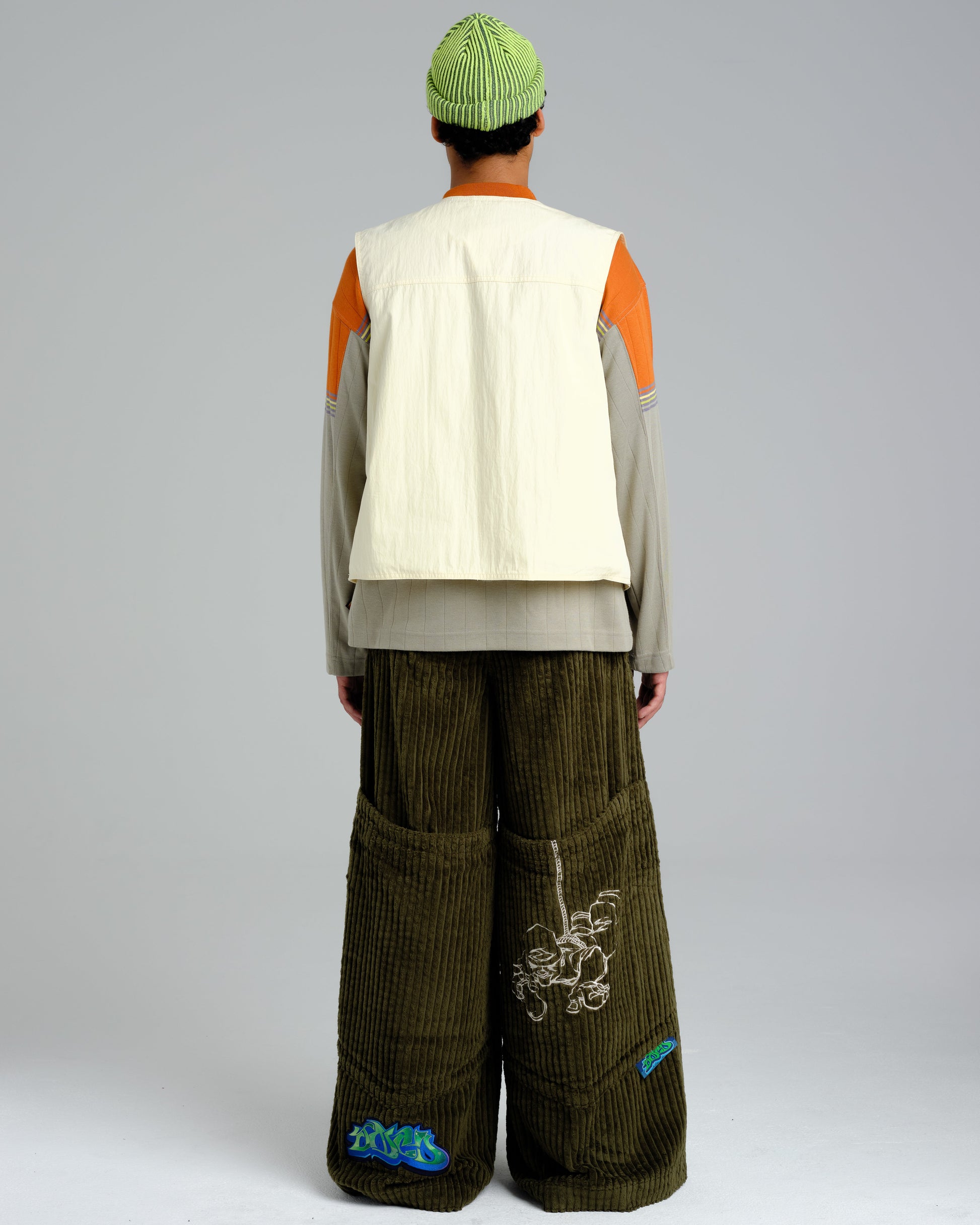 Collector’s item from the JNCO Roots Collection in 12oz 2-Wale Corduroy with 34" bottom opening. Heavy double stitching throughout. Features oversized back pockets with JNCO logo and “hangin’ tagger” embroidery. Includes original labels and collectible metallic flasher. Limited Edition – very limited stock.