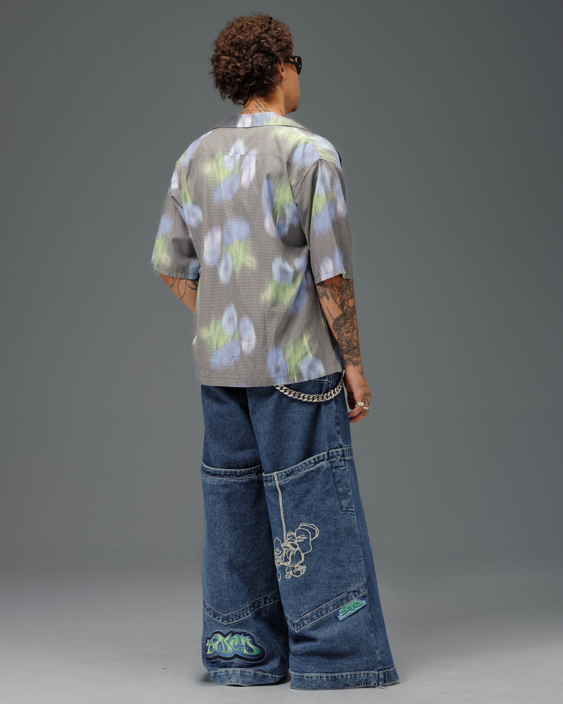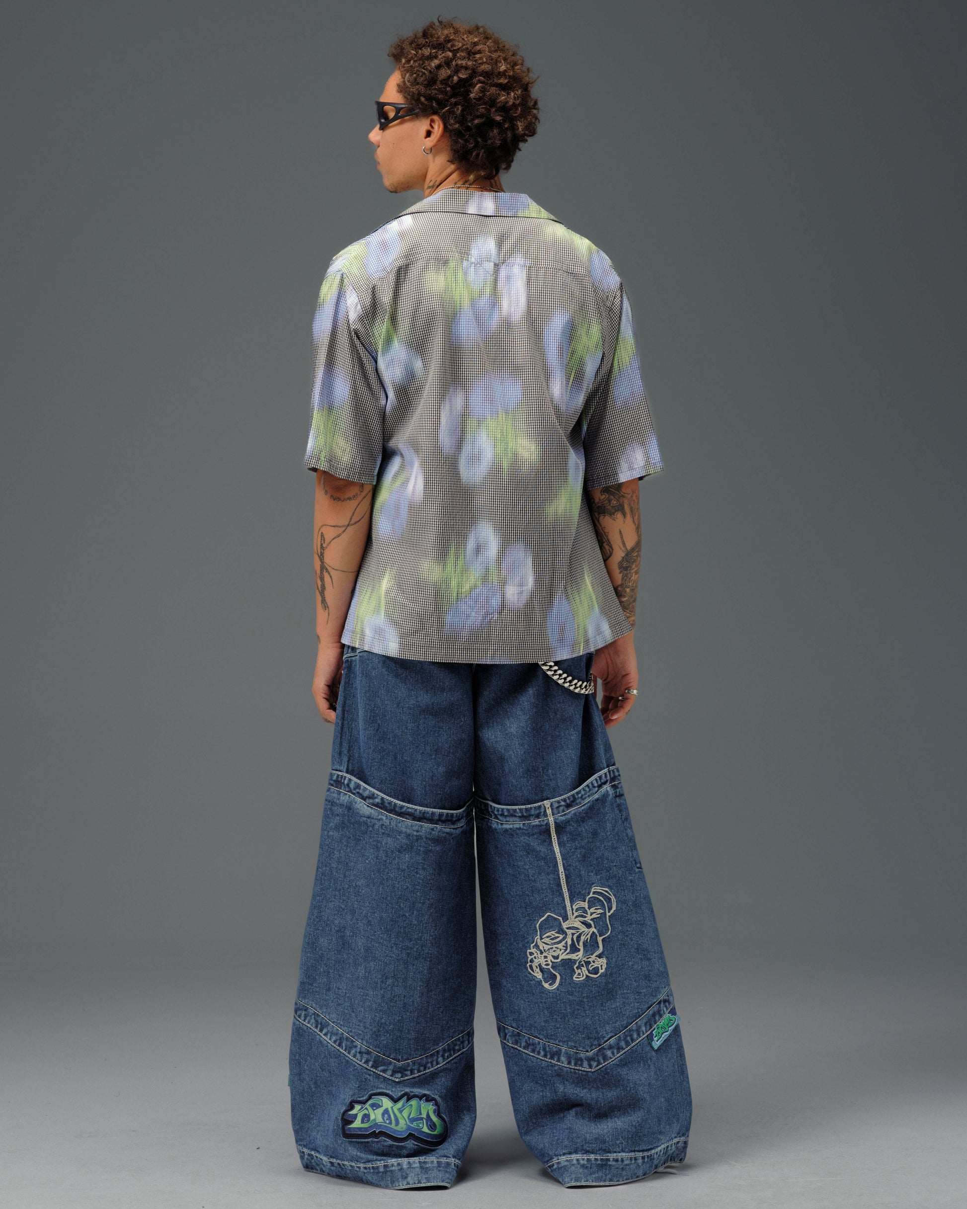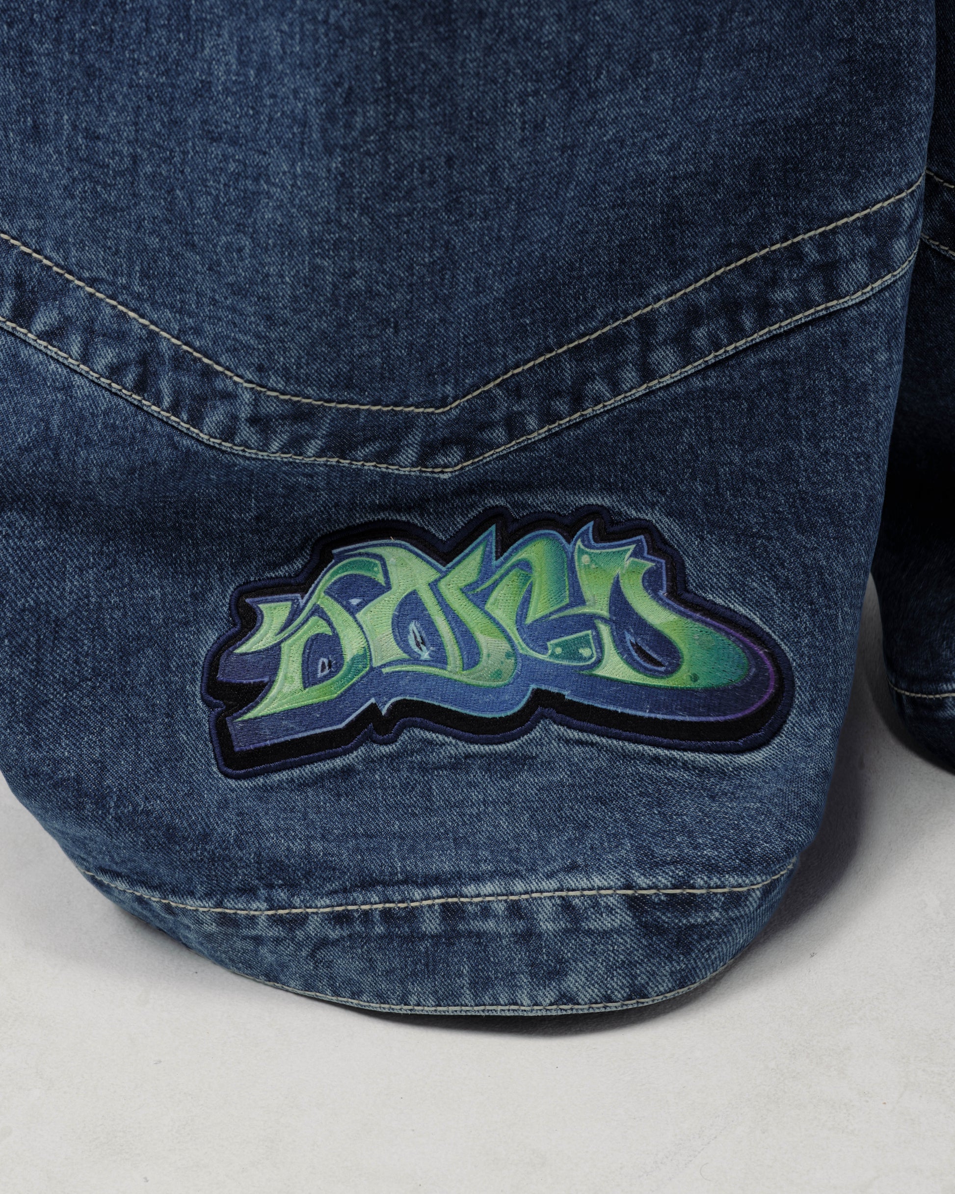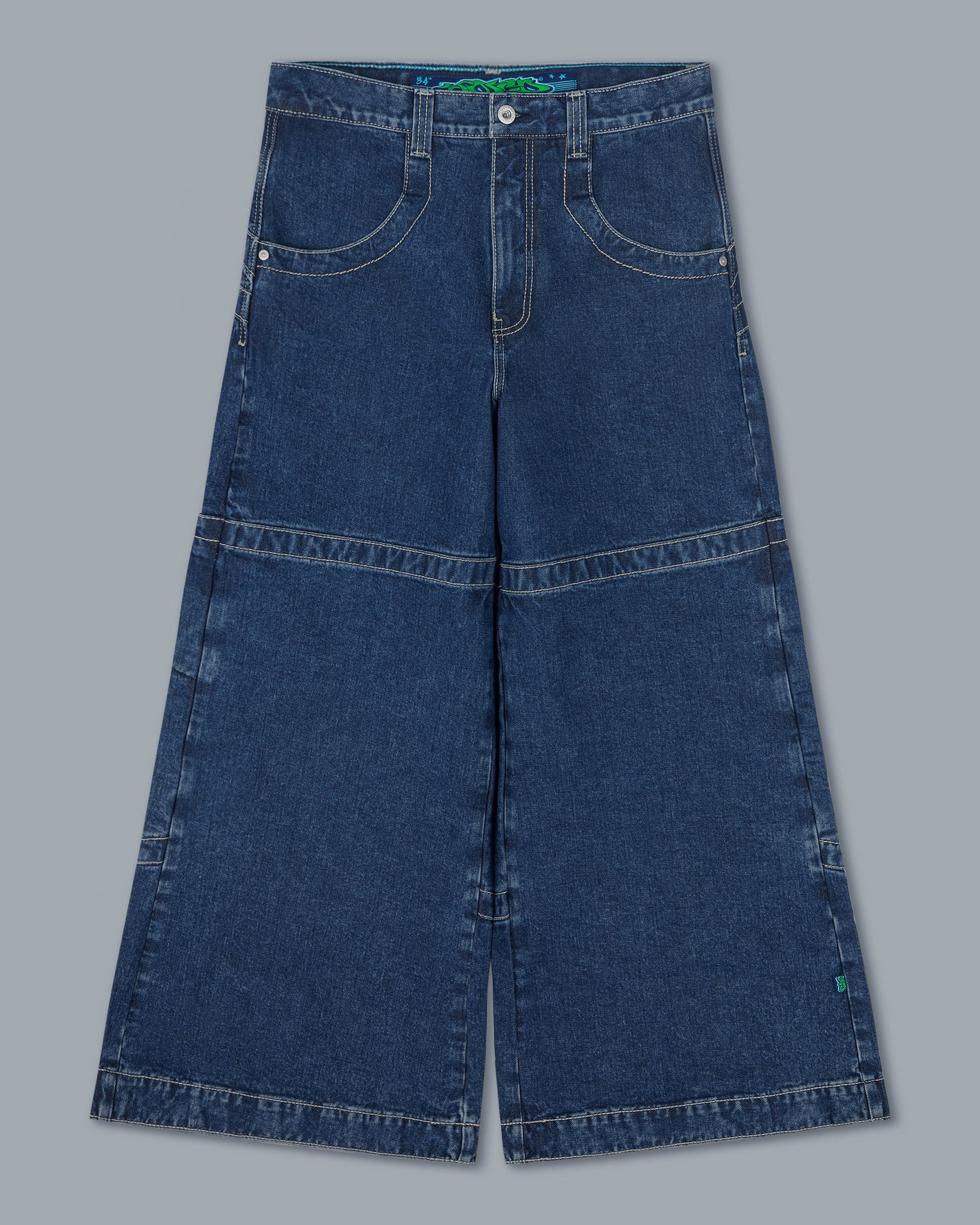 14oz 100% cotton denim with heavy double contrast stitching. Oversized back pockets with JNCO logo and “hangin' tagger” embroidery. Original labels and collectible metallic flasher. Limited Edition – very limited stock.