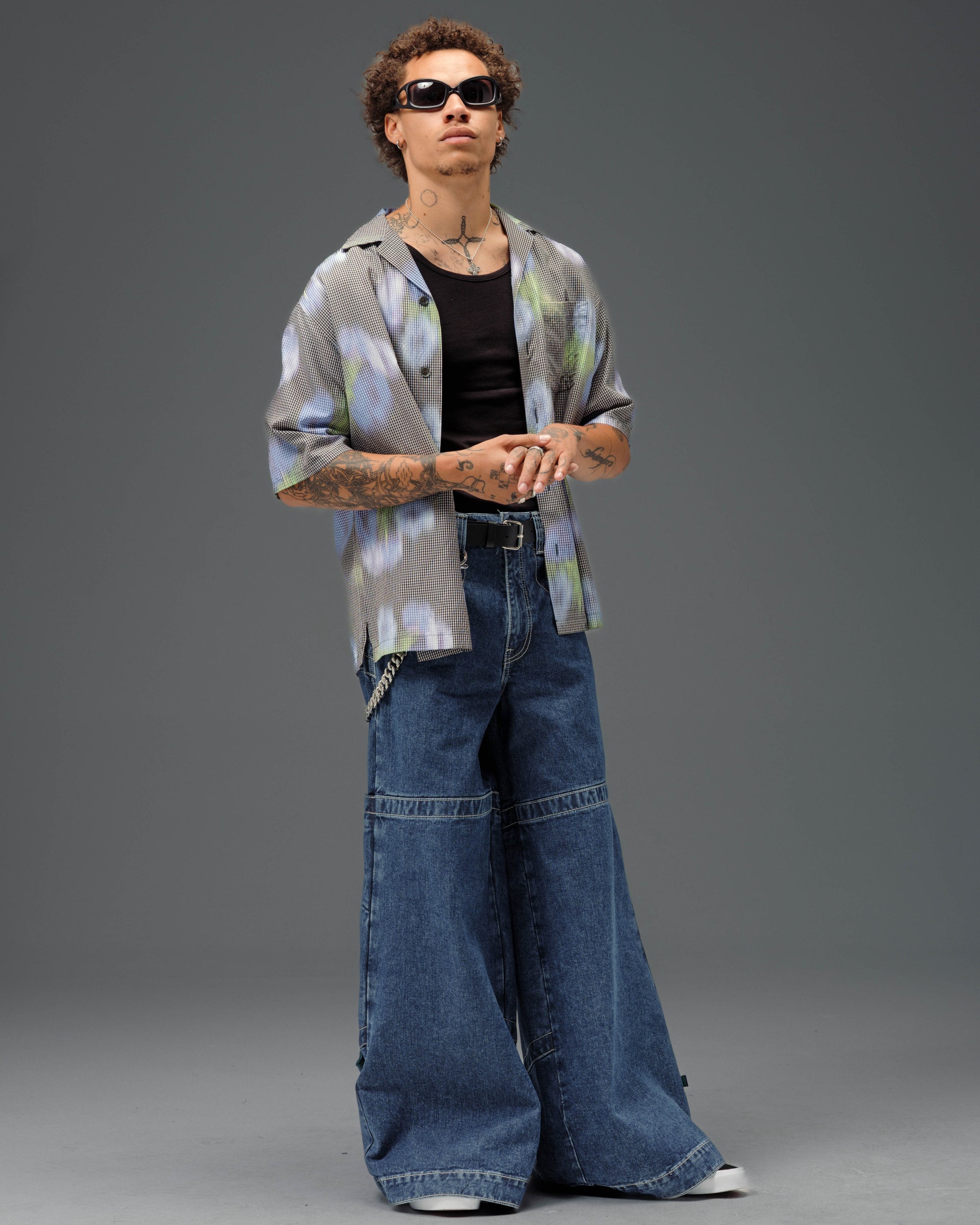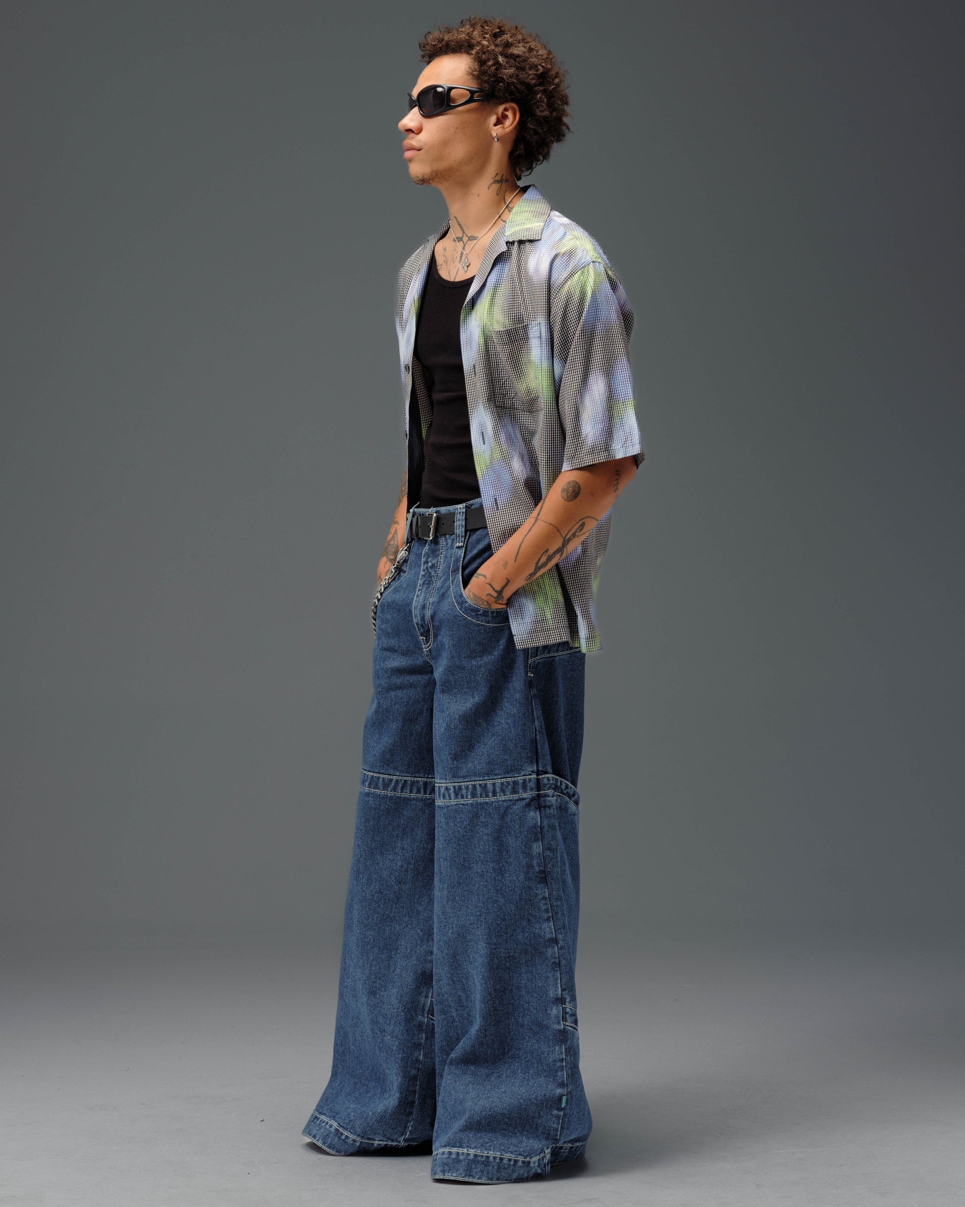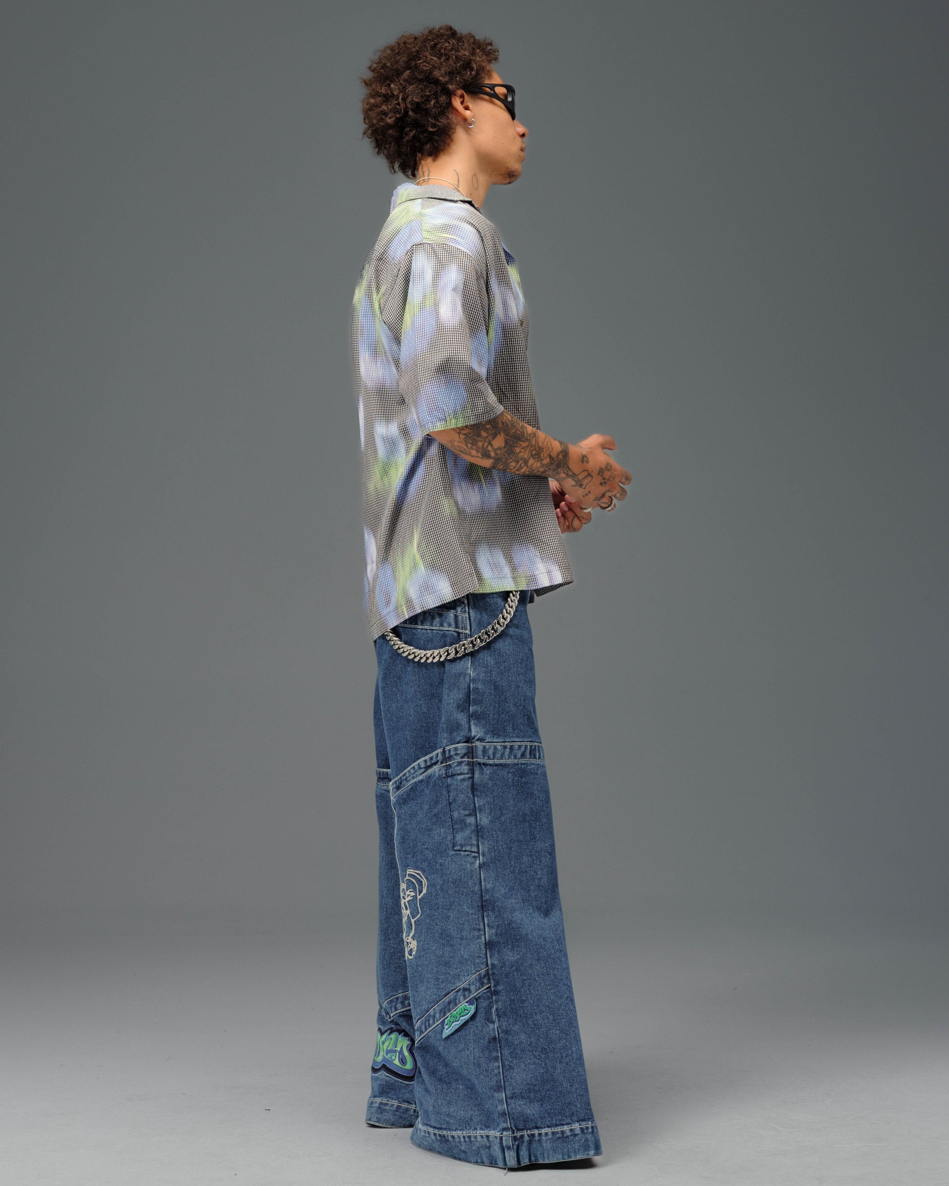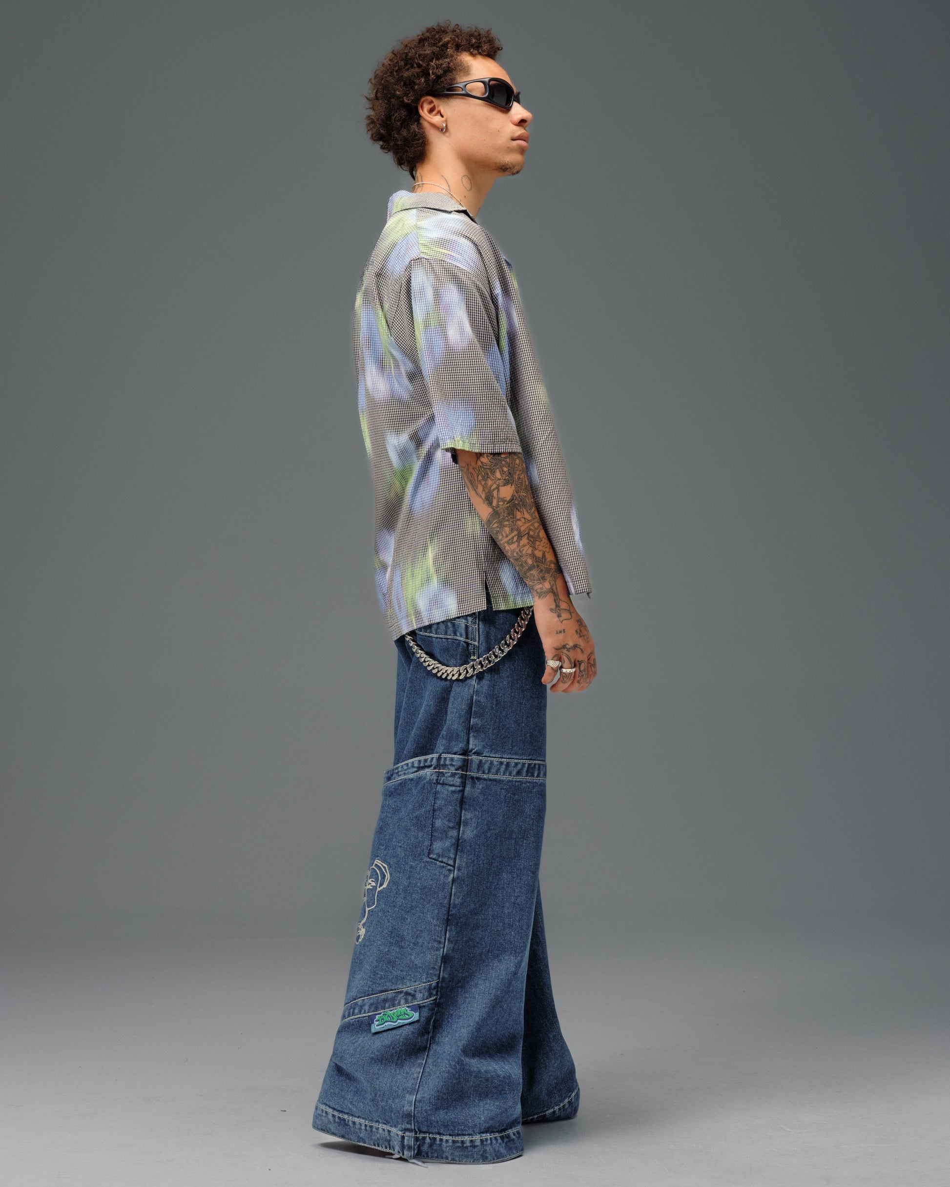 14oz 100% cotton denim with heavy double contrast stitching. Oversized back pockets with JNCO logo and “hangin' tagger” embroidery. Original labels and collectible metallic flasher. Limited Edition – very limited stock.