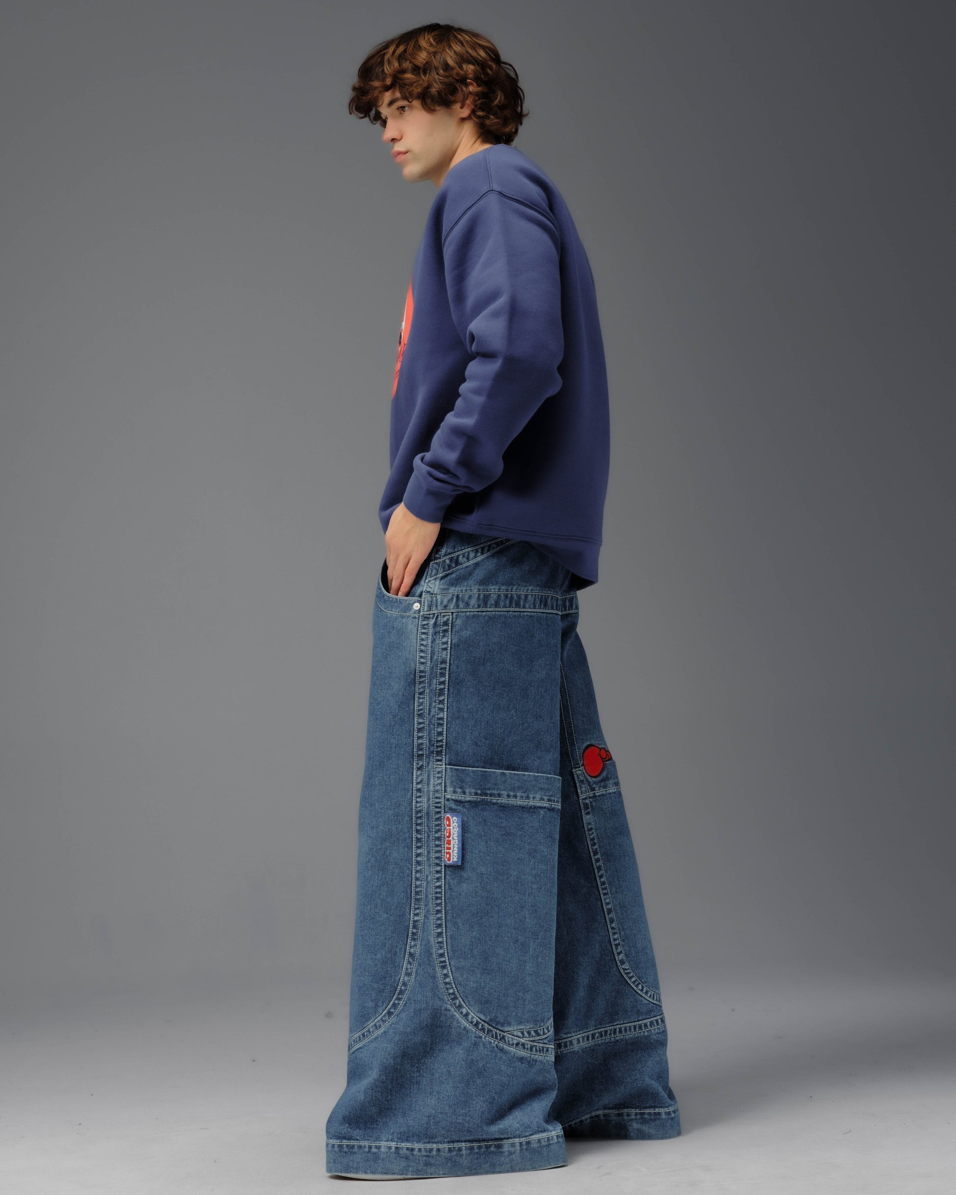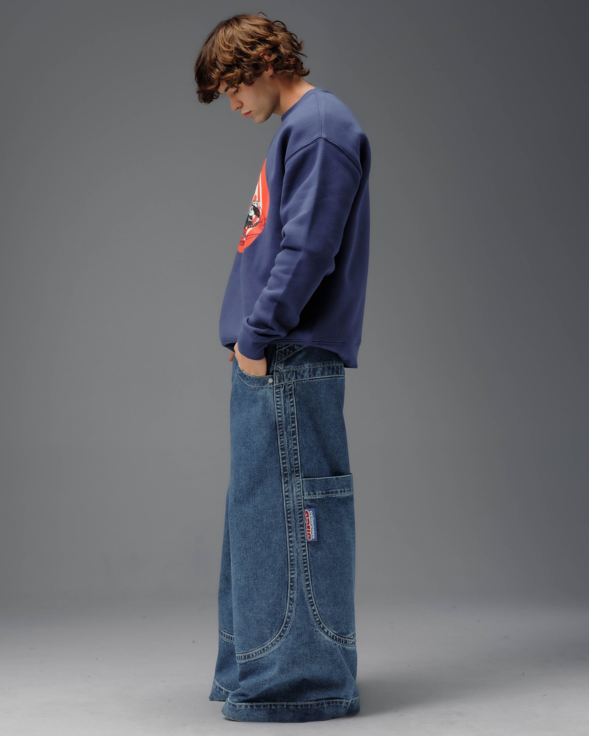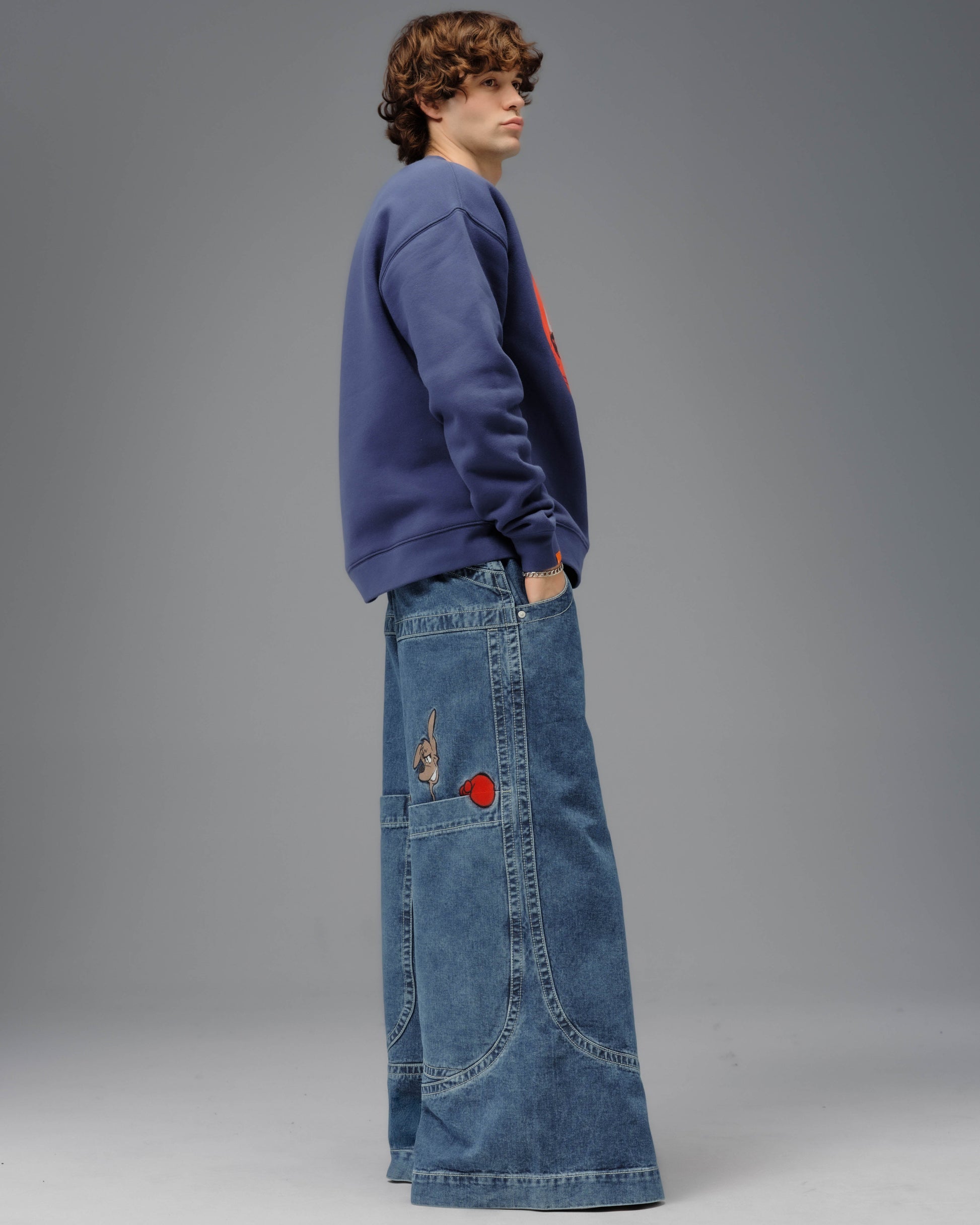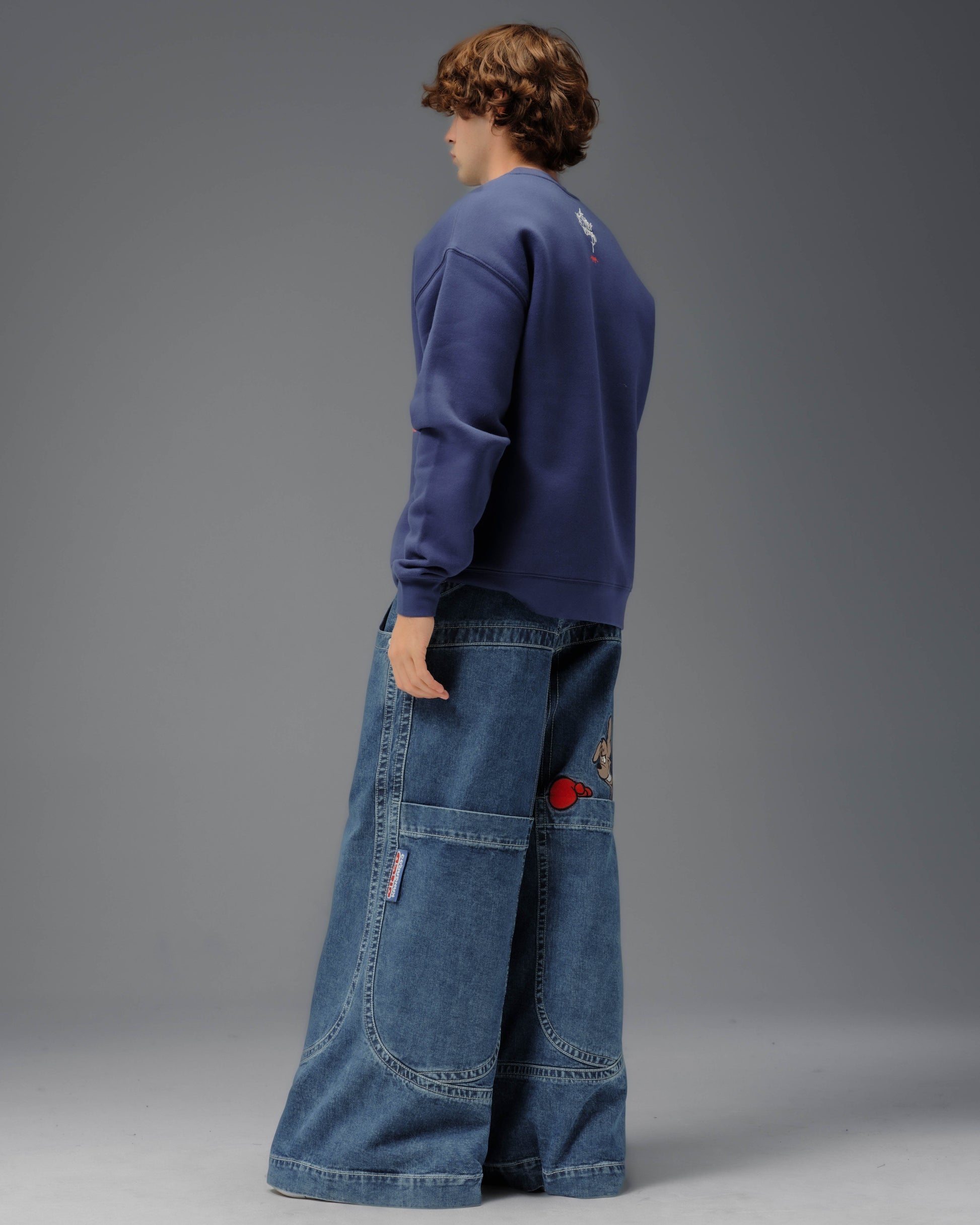 Collector’s classic in Dark Stone Wash with a 34" bottom opening. 14oz 100% cotton denim with heavy contrast stitching. Features iconic kangaroo embroidery with 26,000 dense stitches peeking from deep right pocket, and intricate stitch detailing. Includes collectible leather-feel boxing glove flasher. Limited Edition – very limited stock.