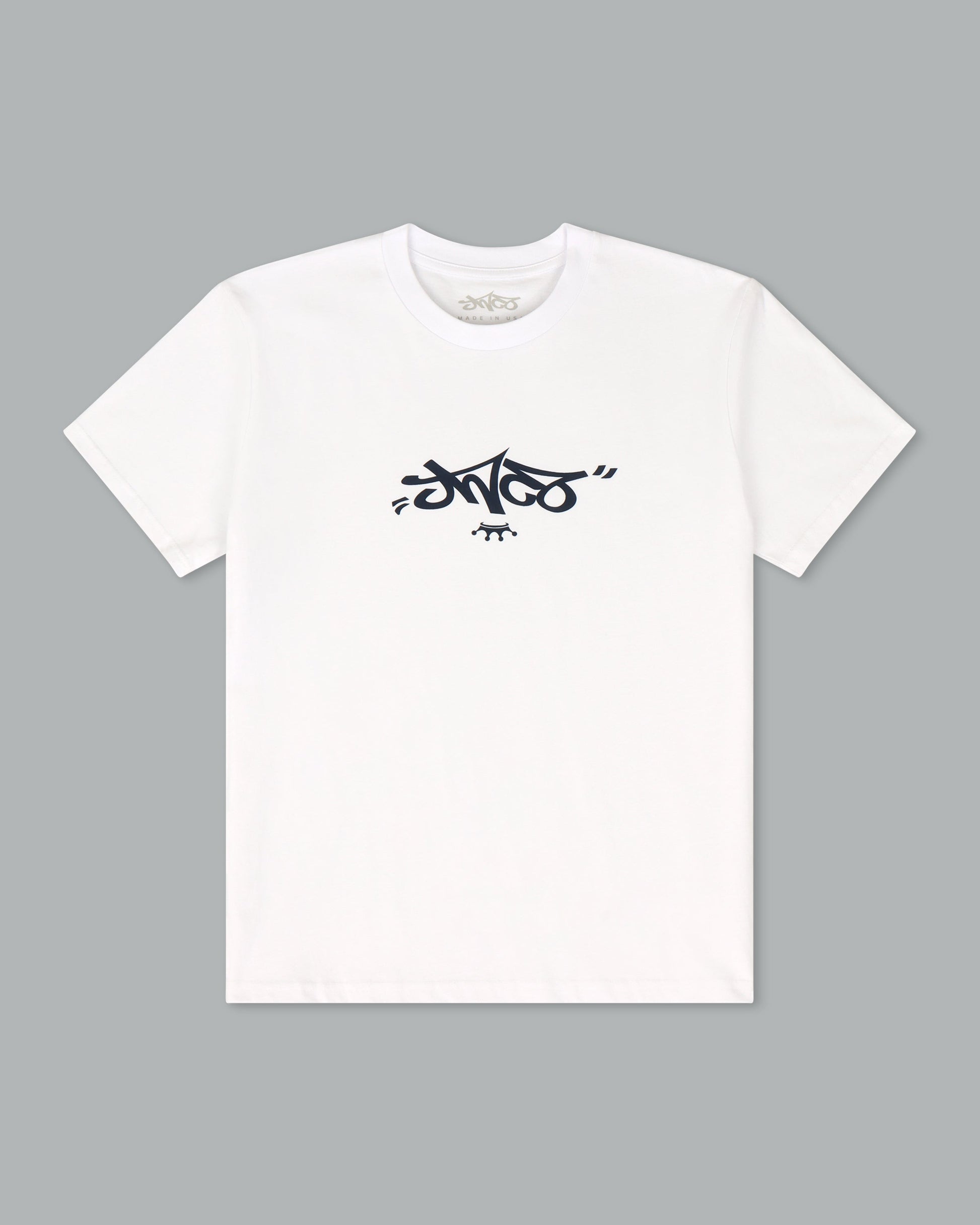 Reversed Crown Tee. White/ Twilight Blue.