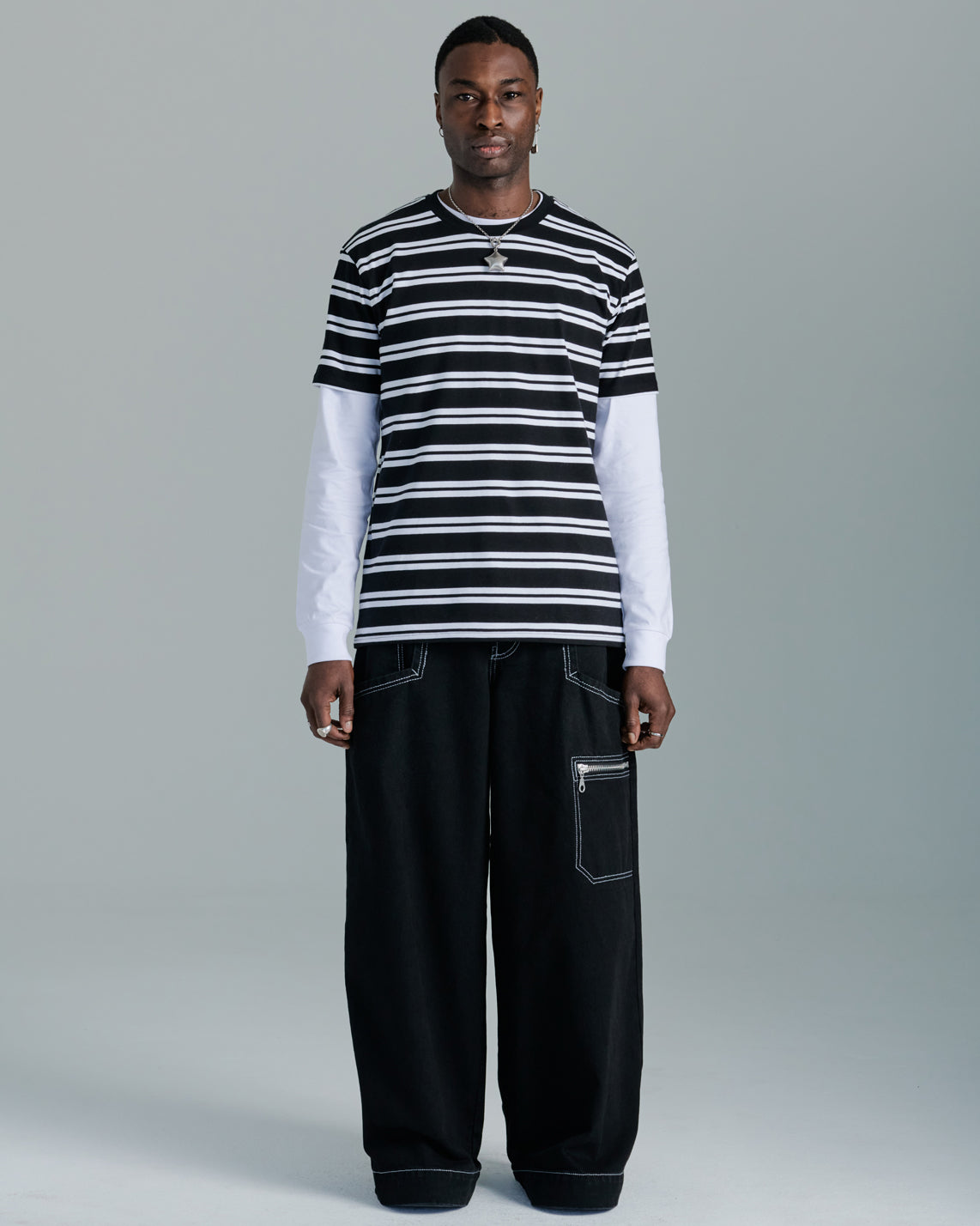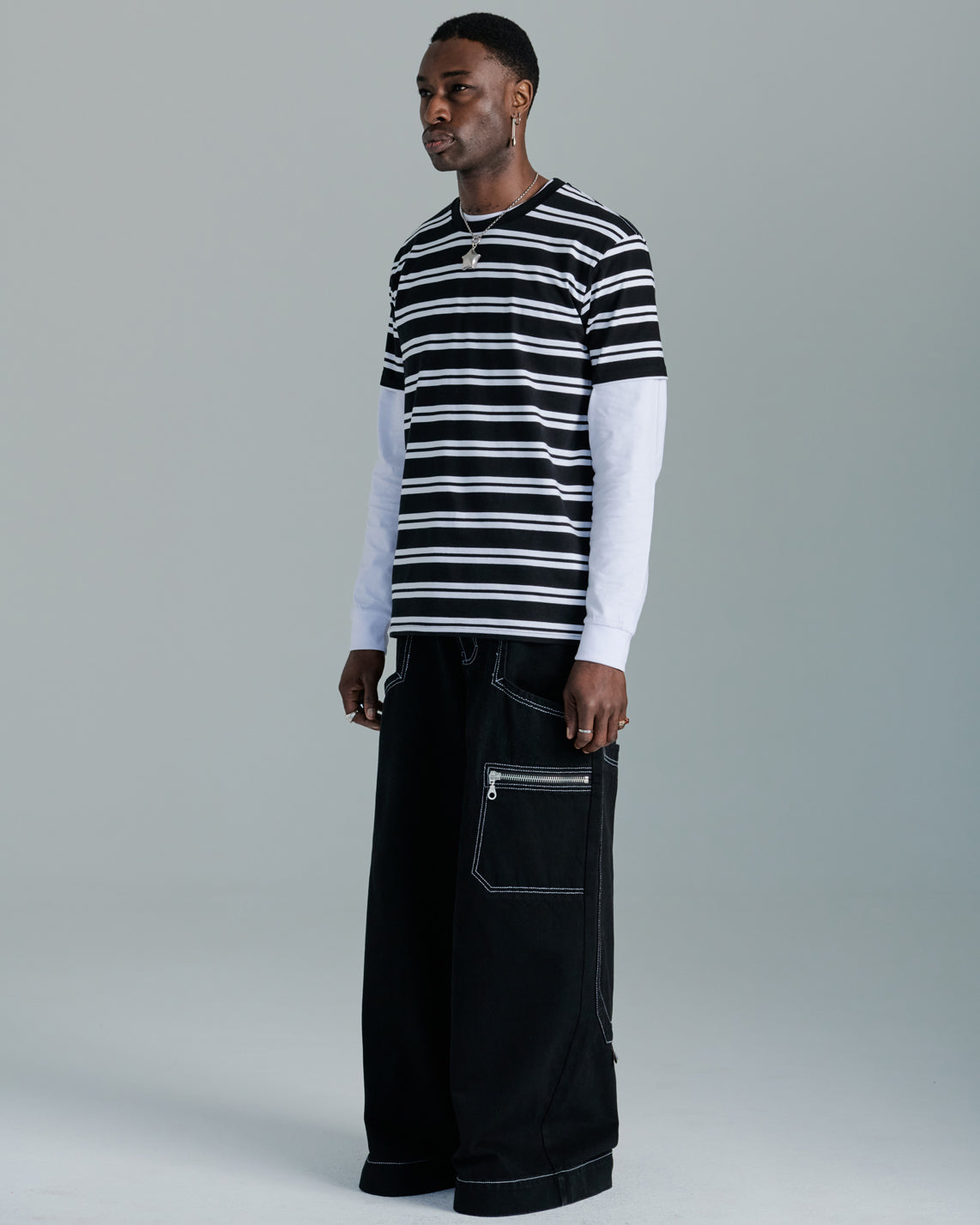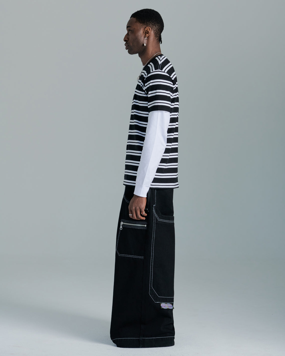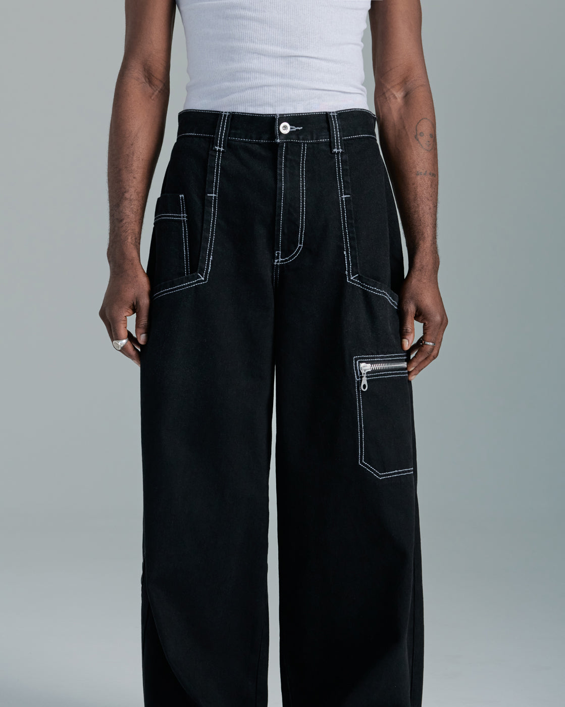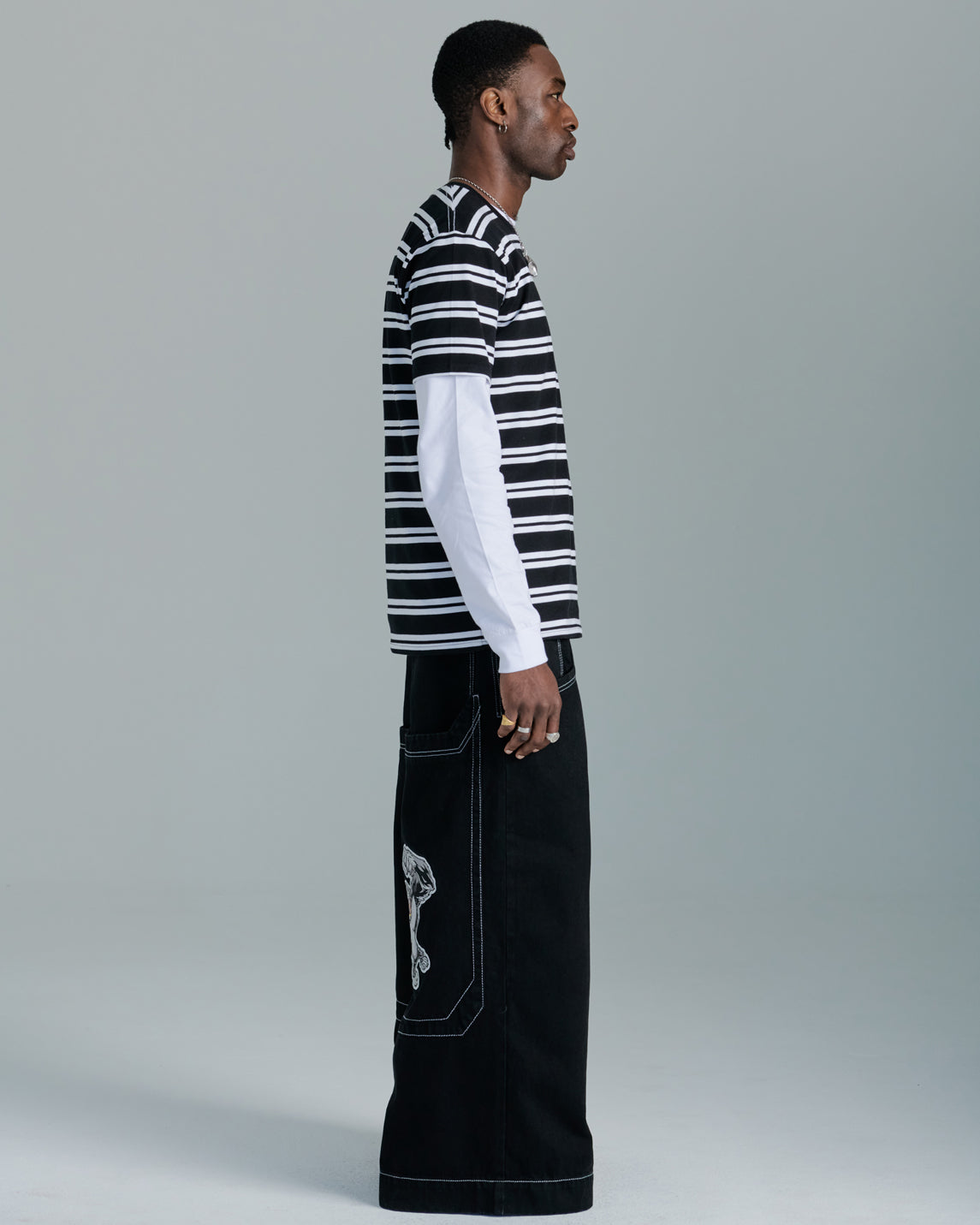 A collector’s piece from the Endangered Species Series. Jet Black denim, 32" bottom opening. 13oz rope-dyed cotton with a waxed finish. Features the 140,000-stitch Silverback patch, 4 oversized back pockets, and a zippered front pocket. Collectible Endangered Species flasher attached. Limited Edition – very Limited Stock.