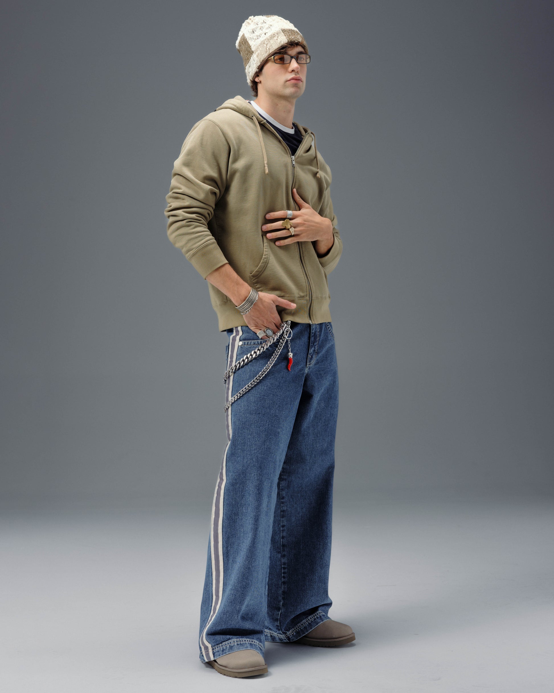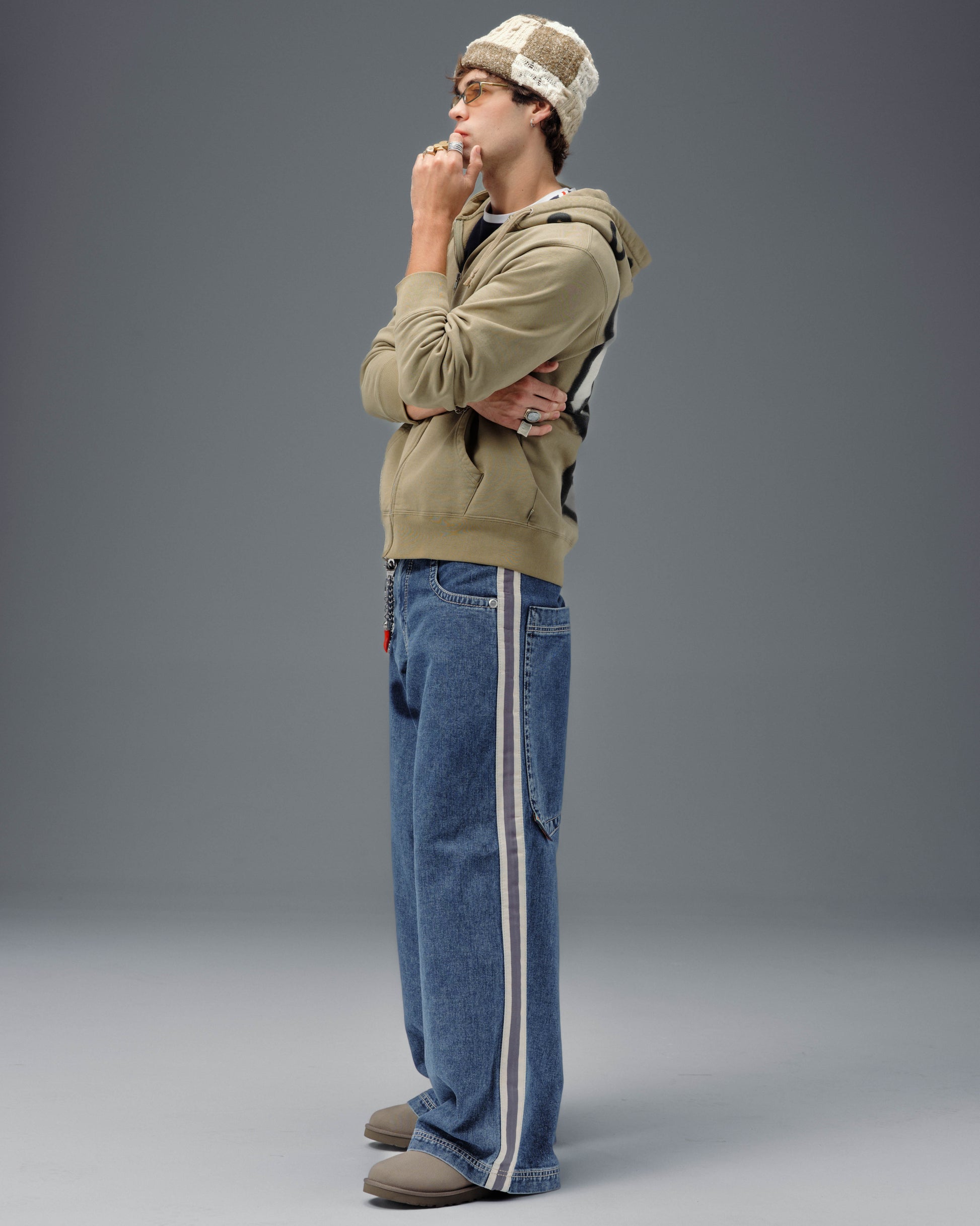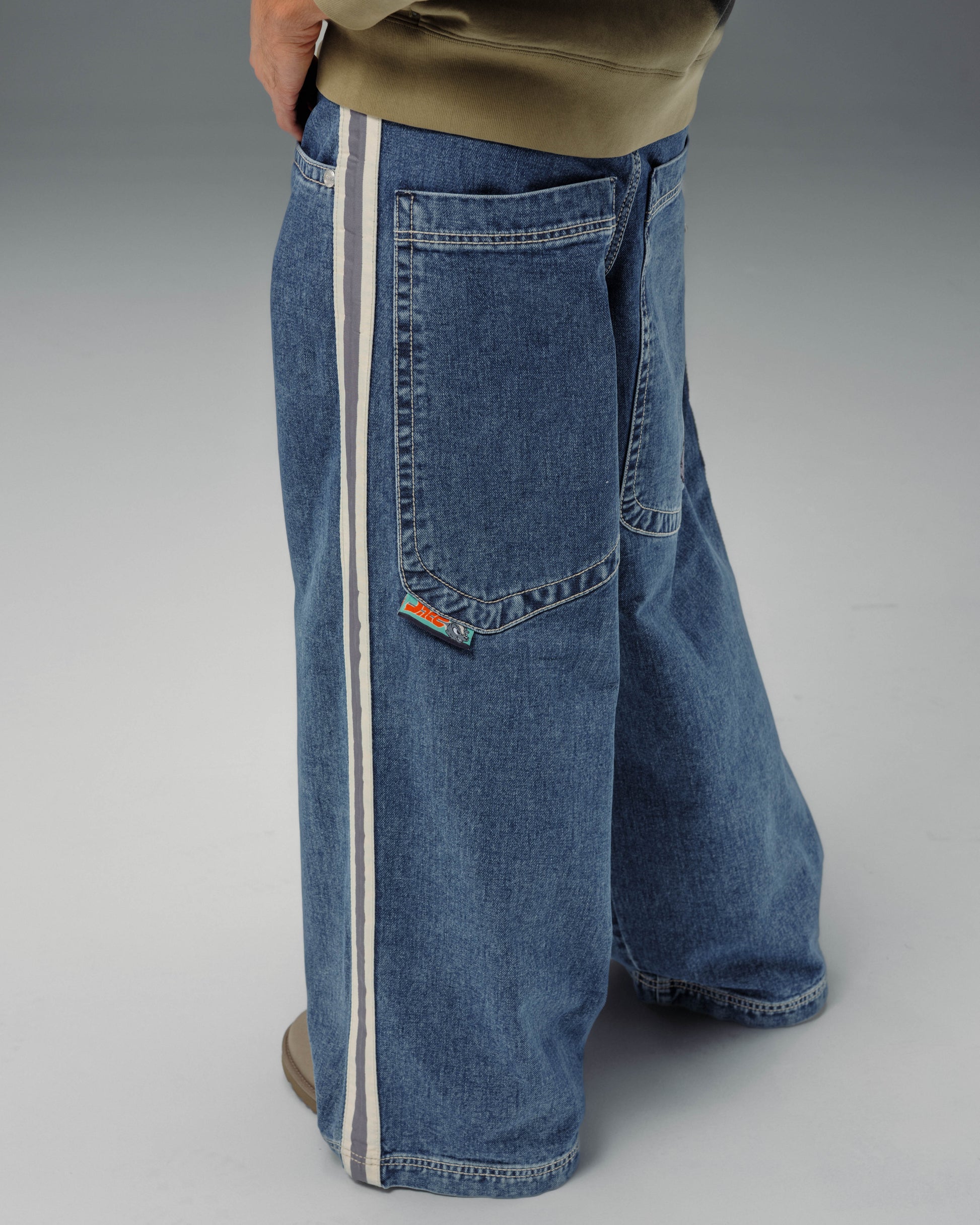A Collector’s Edition style in Original Dark Stone wash. 26" bottom opening. 14 oz. 100% cotton. 3x1 left hand weave. Features signature leg tape in natural and charcoal, and the original embroidered Skunk face. Detailed stitching, custom hardware, collectible flasher, and original labels. Limited Edition – very limited stock.