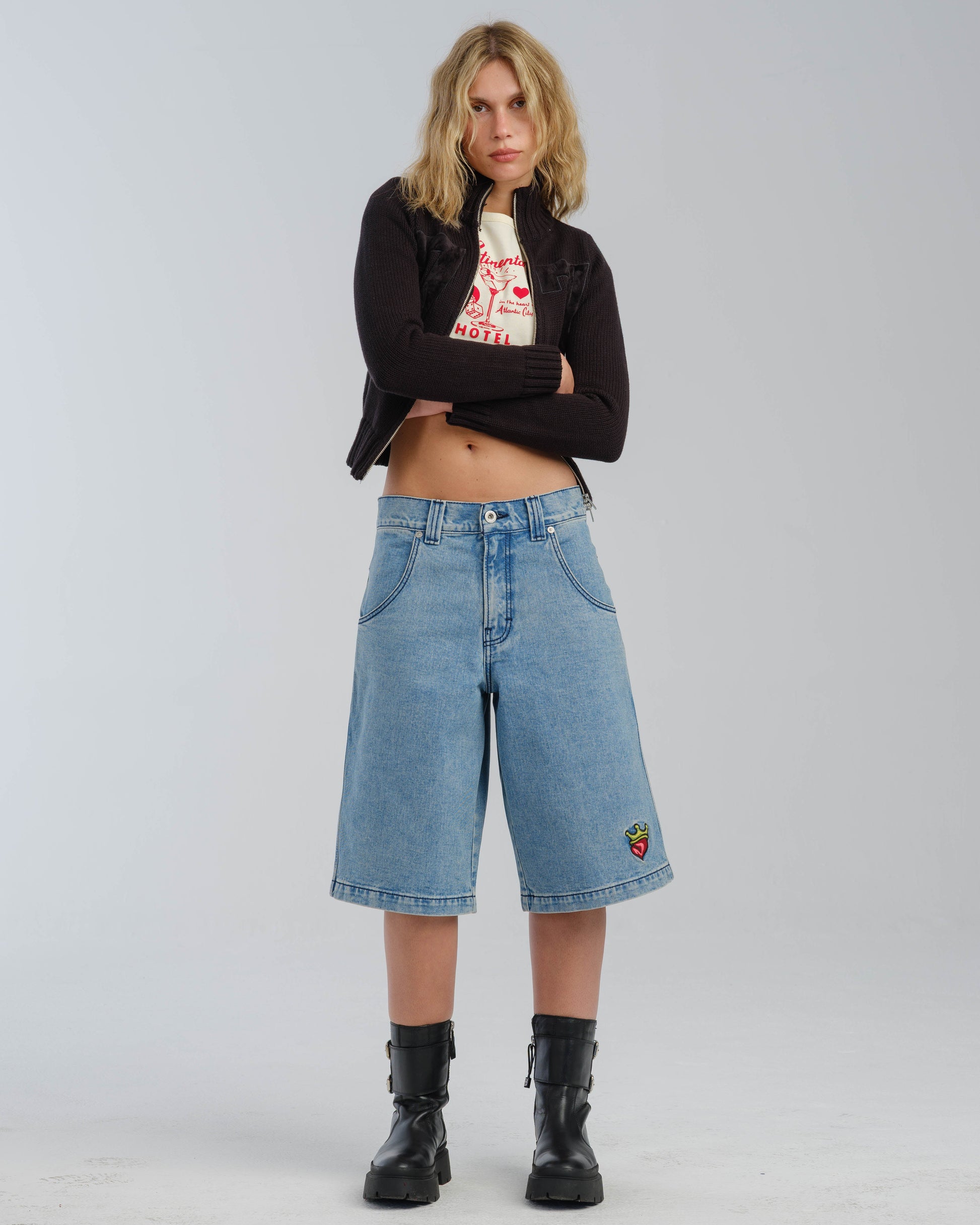A JNCO classic in Antique Wash with a 14" inseam. 14oz 100% cotton denim with contrast double stitching. Original artwork, labels, and embroidery. Collectible flasher included.