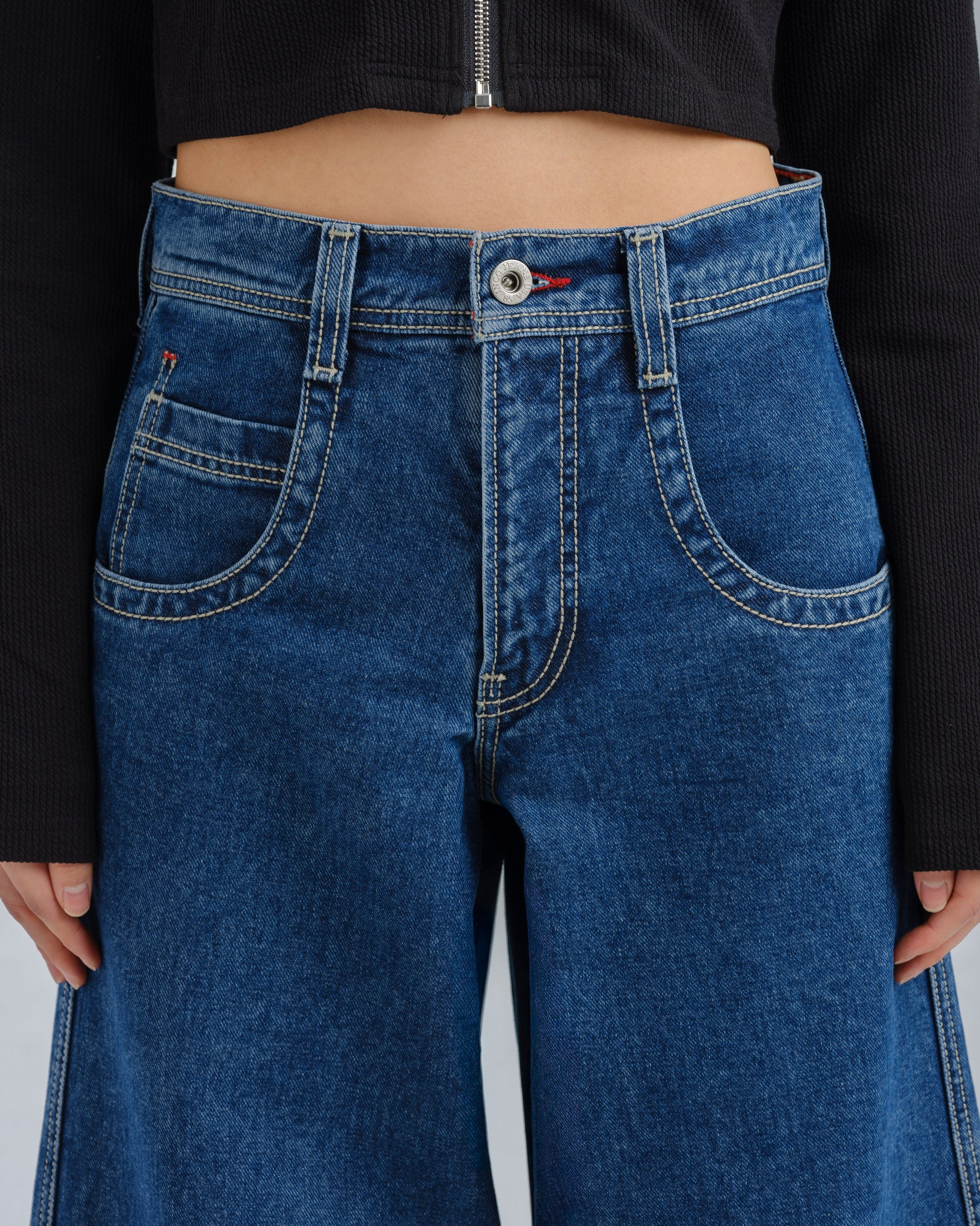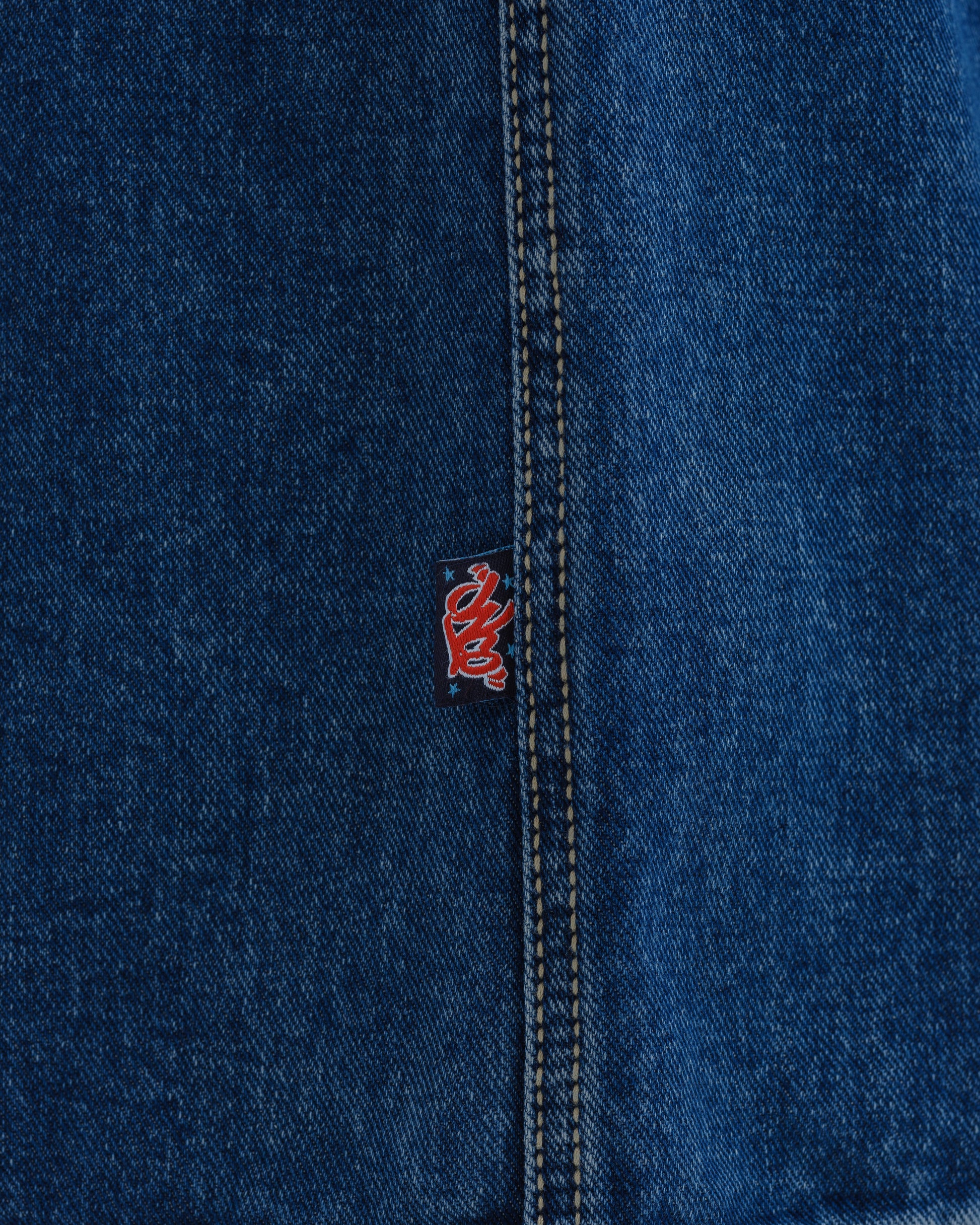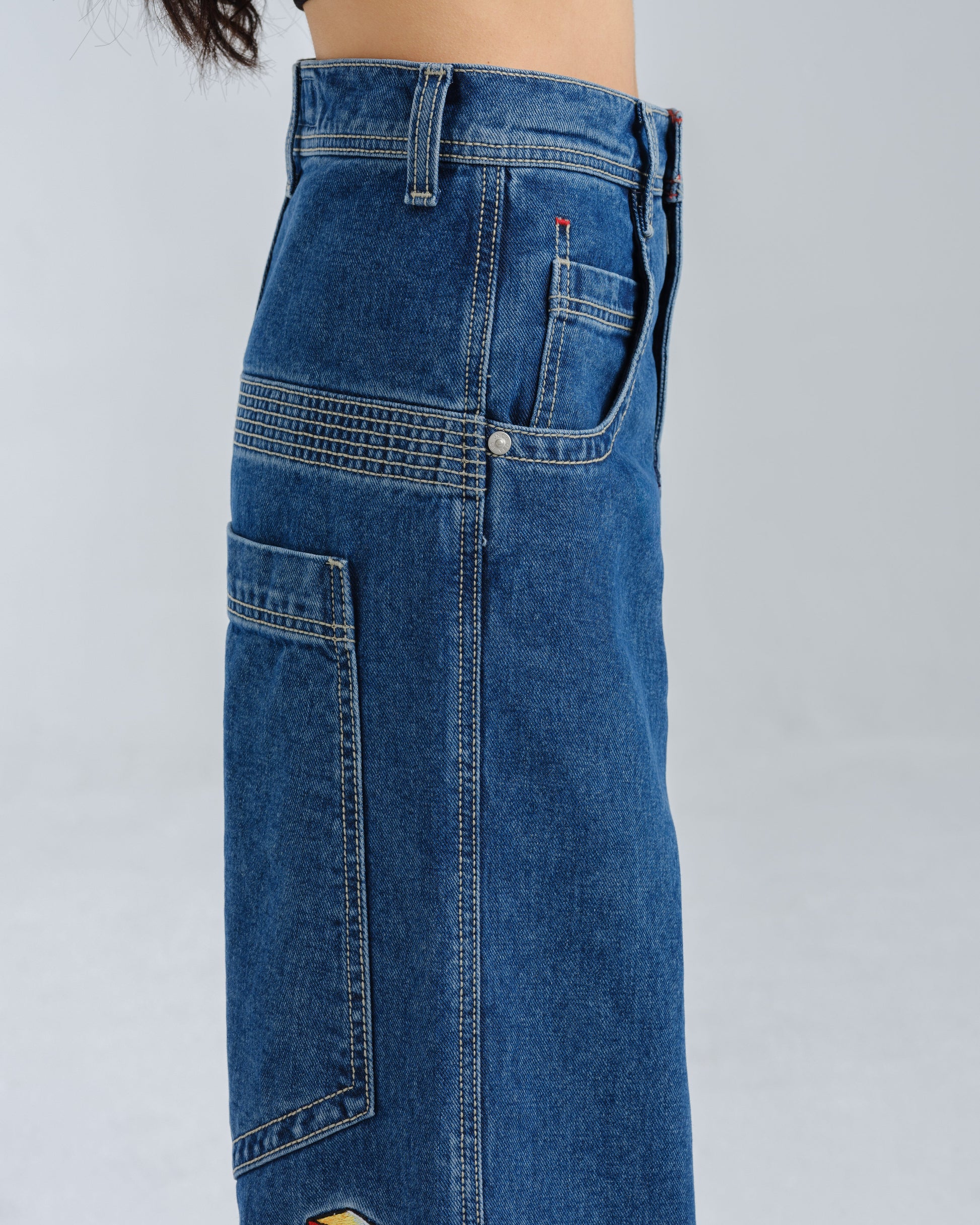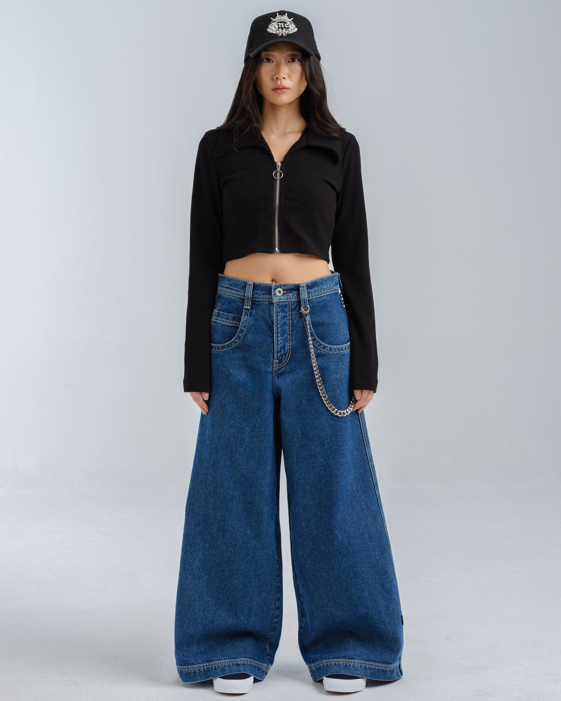 Collector’s item from the original JNCO Roots line. Dark Stone Wash, 30" bottom opening. 14oz 100% cotton denim with heavy double contrast stitching and six rows on back yoke. Back leg logo embroidery with 50,000+ stitches, signed by the original graffiti artist. Original labels, collectible flasher, and JNCO Roots stickers. Limited Edition – very limited stock.