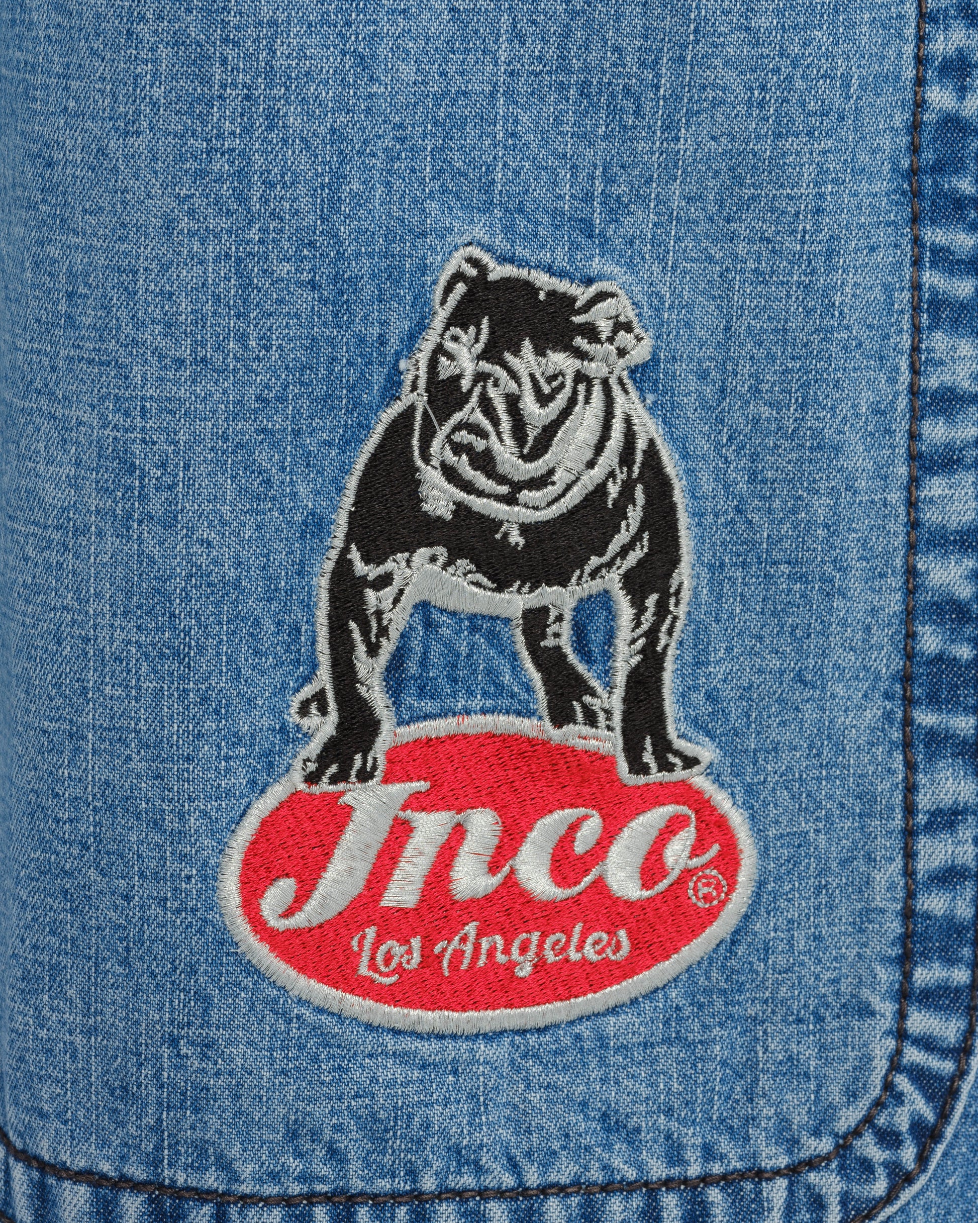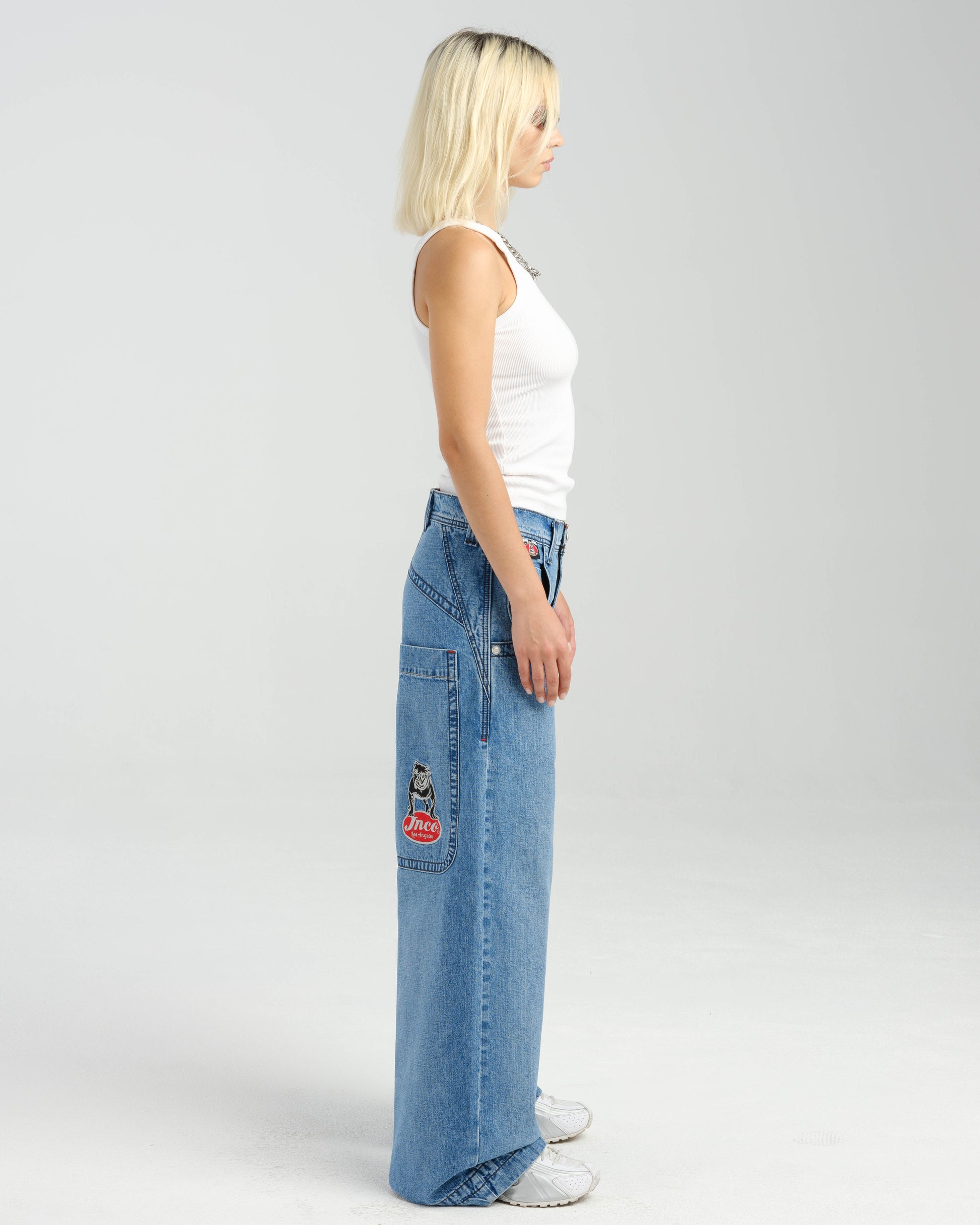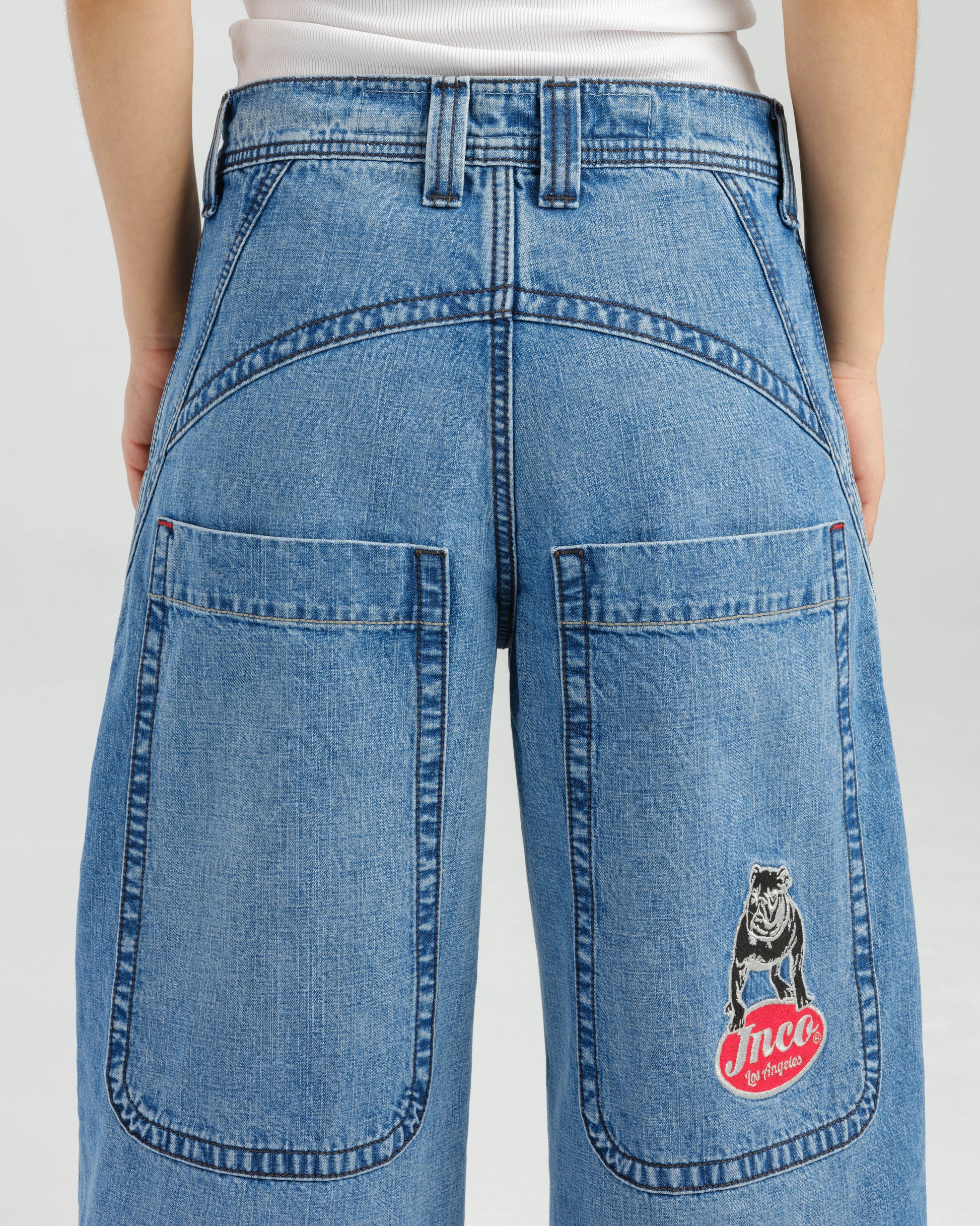 Original collector’s piece in Hand-Sand Medium Vintage Wash. 12.5oz 100% cotton cross-hatch denim with 3x1 right-hand weave. 26" bottom opening with extra-long pockets. Features dense metallic silver and red bulldog embroidery, custom Big Rig hardware, and collectible flasher. Designed for the Load. Powered for the Pull. Limited Edition – very limited stock.