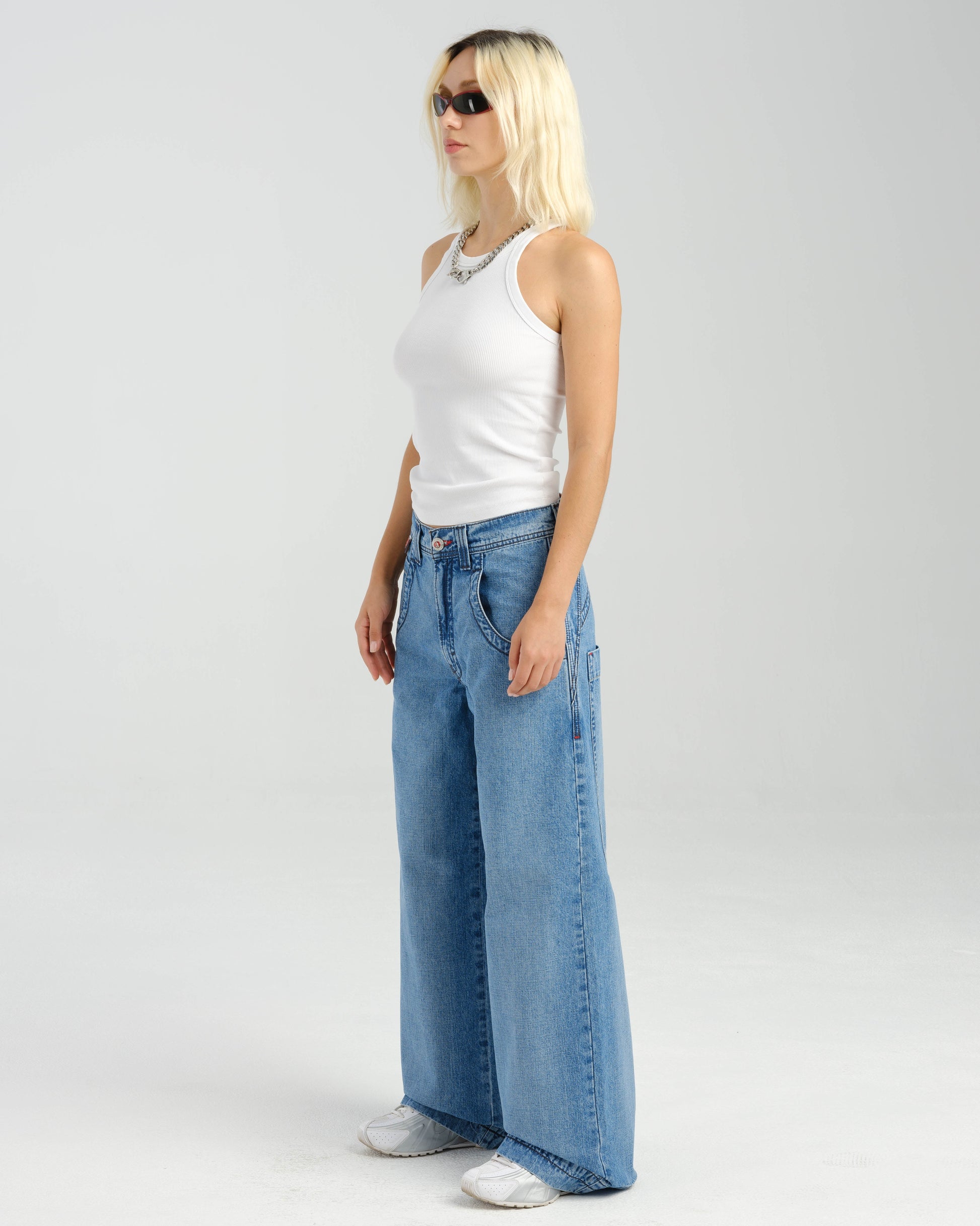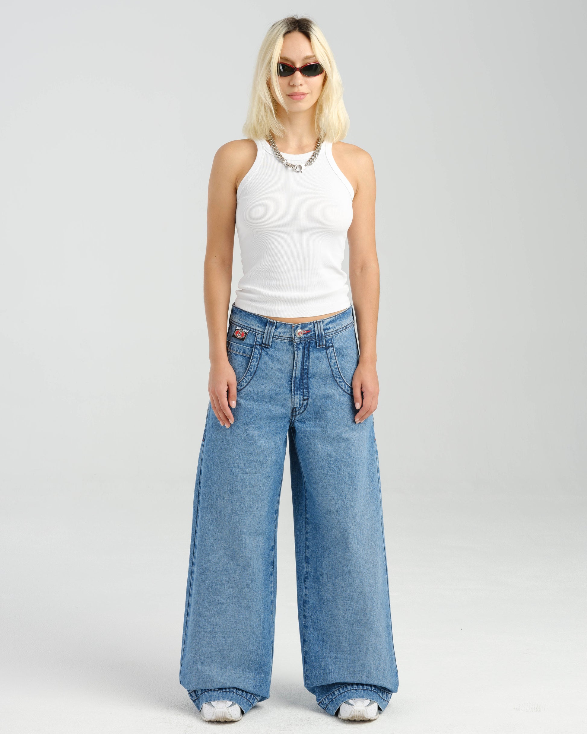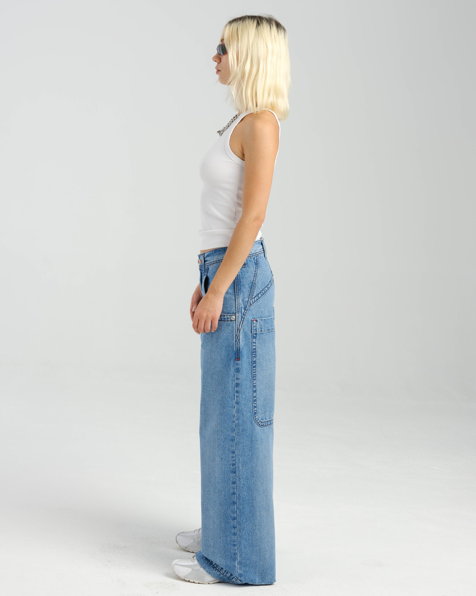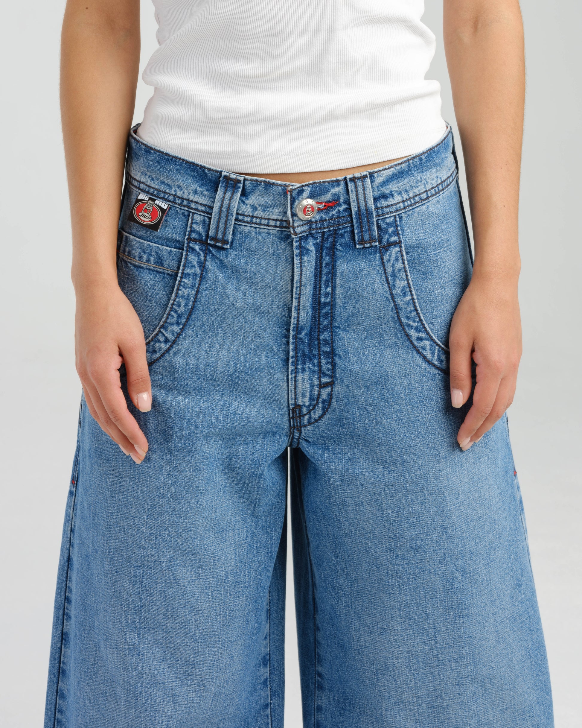 Original collector’s piece in Hand-Sand Medium Vintage Wash. 12.5oz 100% cotton cross-hatch denim with 3x1 right-hand weave. 26" bottom opening with extra-long pockets. Features dense metallic silver and red bulldog embroidery, custom Big Rig hardware, and collectible flasher. Designed for the Load. Powered for the Pull. Limited Edition – very limited stock.