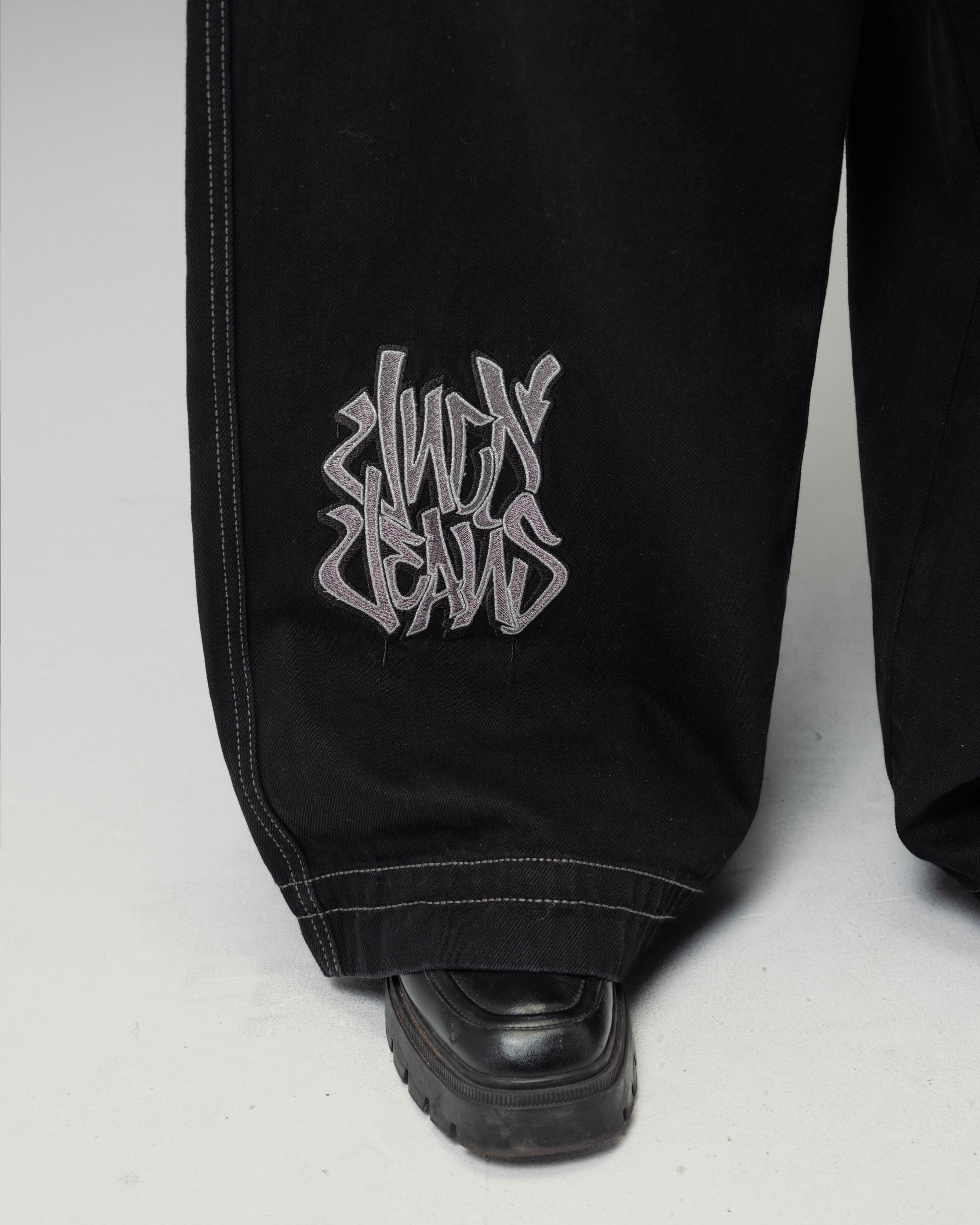13oz 100% cotton rope-dyed with a luxe starch wax finish. Features “Rollin' Style 360” graffiti embroidery on front leg with nearly 78,000 metallic stitches. Includes collectible Rollin’ flasher. Limited Edition – very limited stock.
