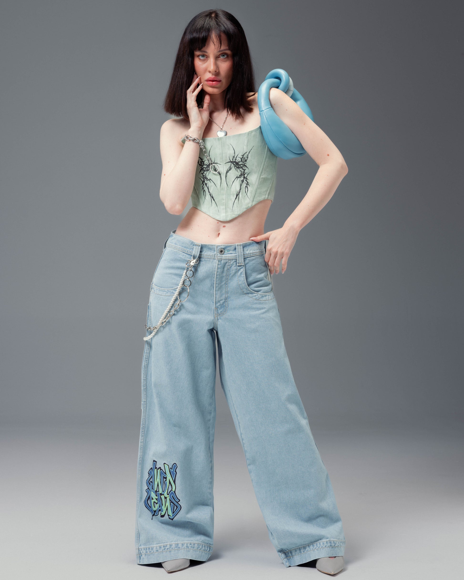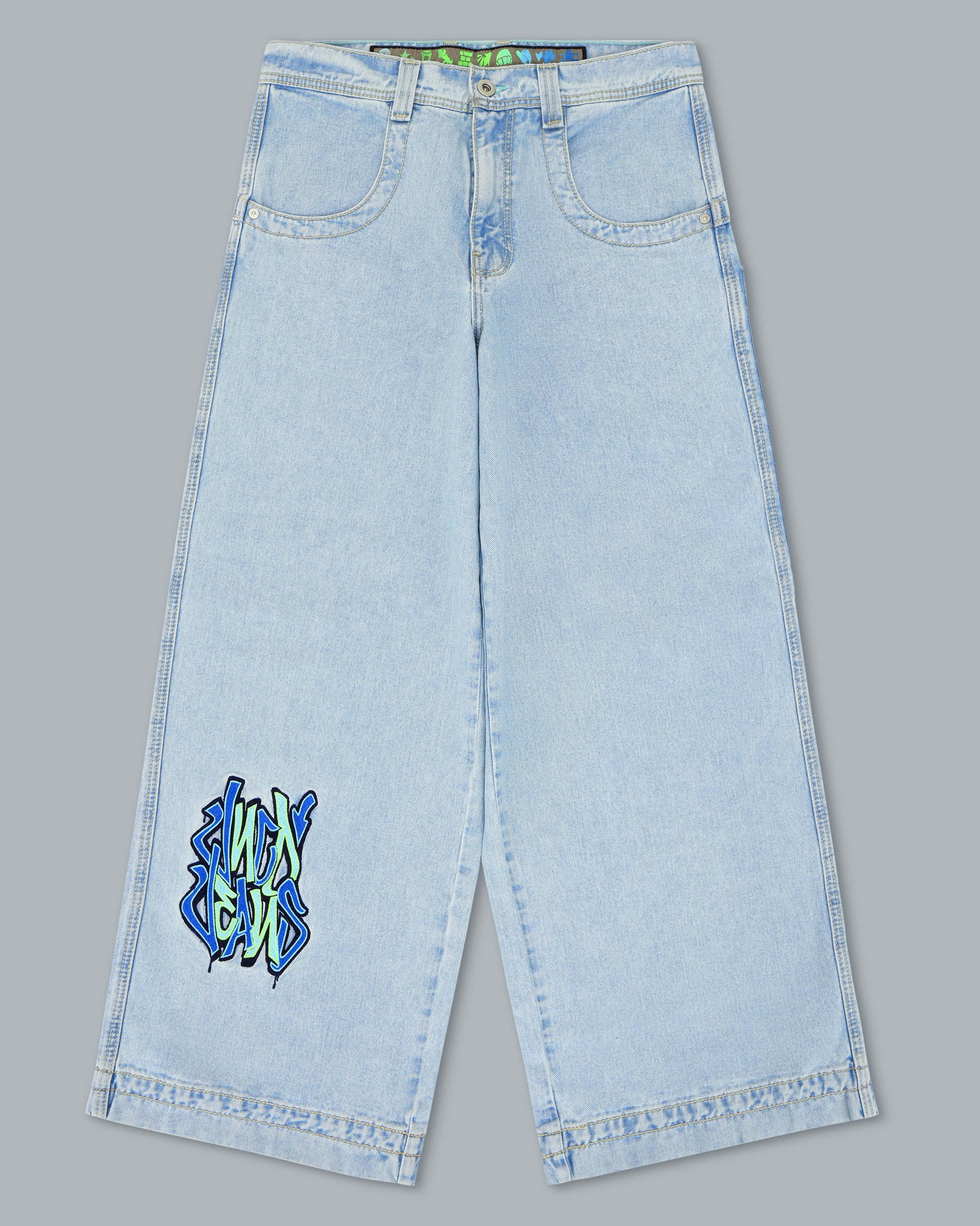 Collector’s piece from the JNCO Roots Collection in Original Vintage Wash with a 26" bottom opening. 14oz 100% cotton denim with heavy double contrast stitching. Features iconic “Rollin' Style 360” graffiti embroidery on front leg with nearly 78,000 stitches. Includes collectible Rollin’ flasher. Limited Edition – very limited stock.