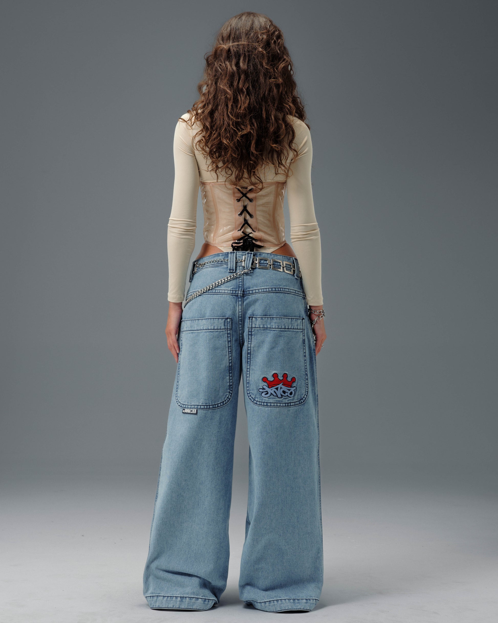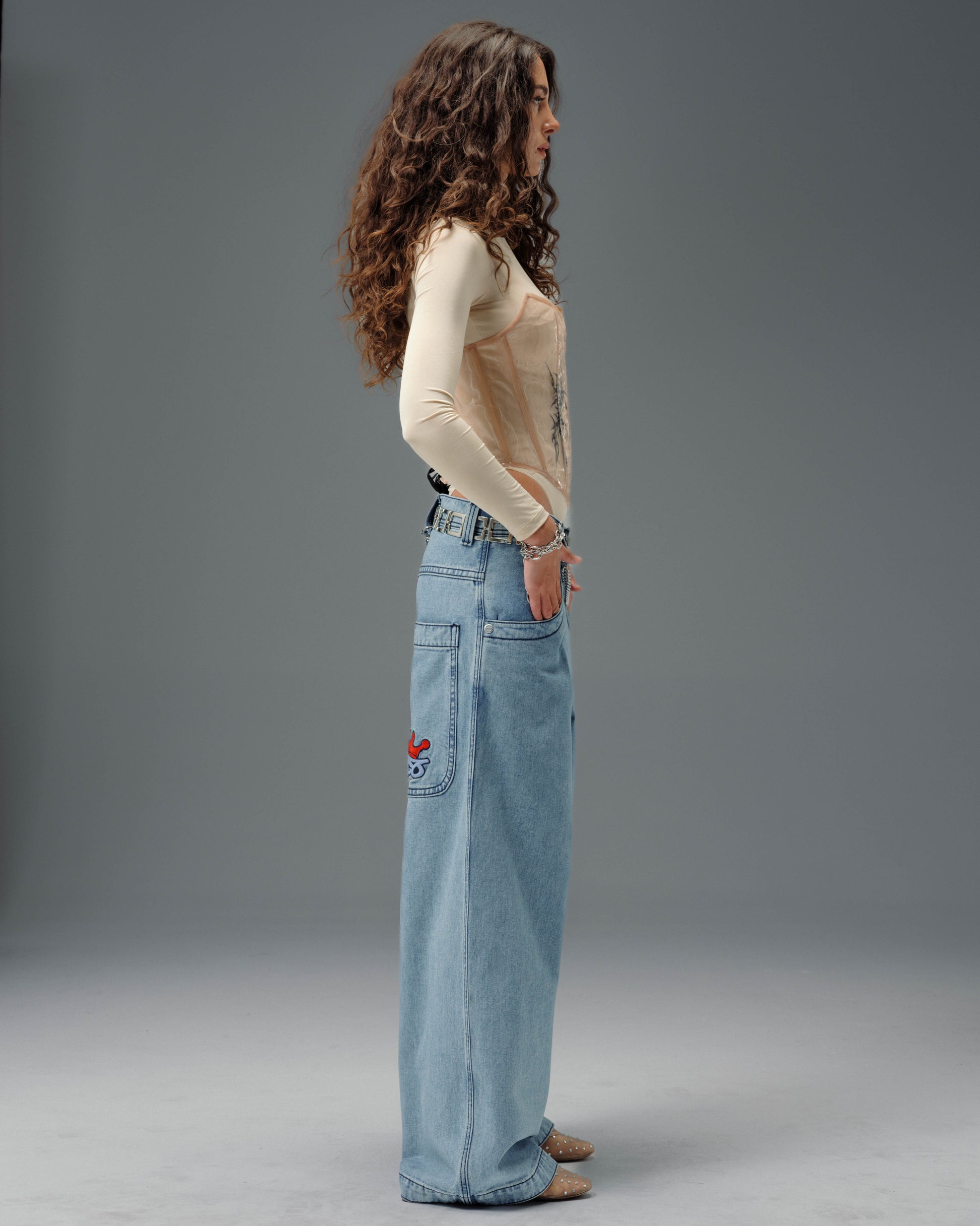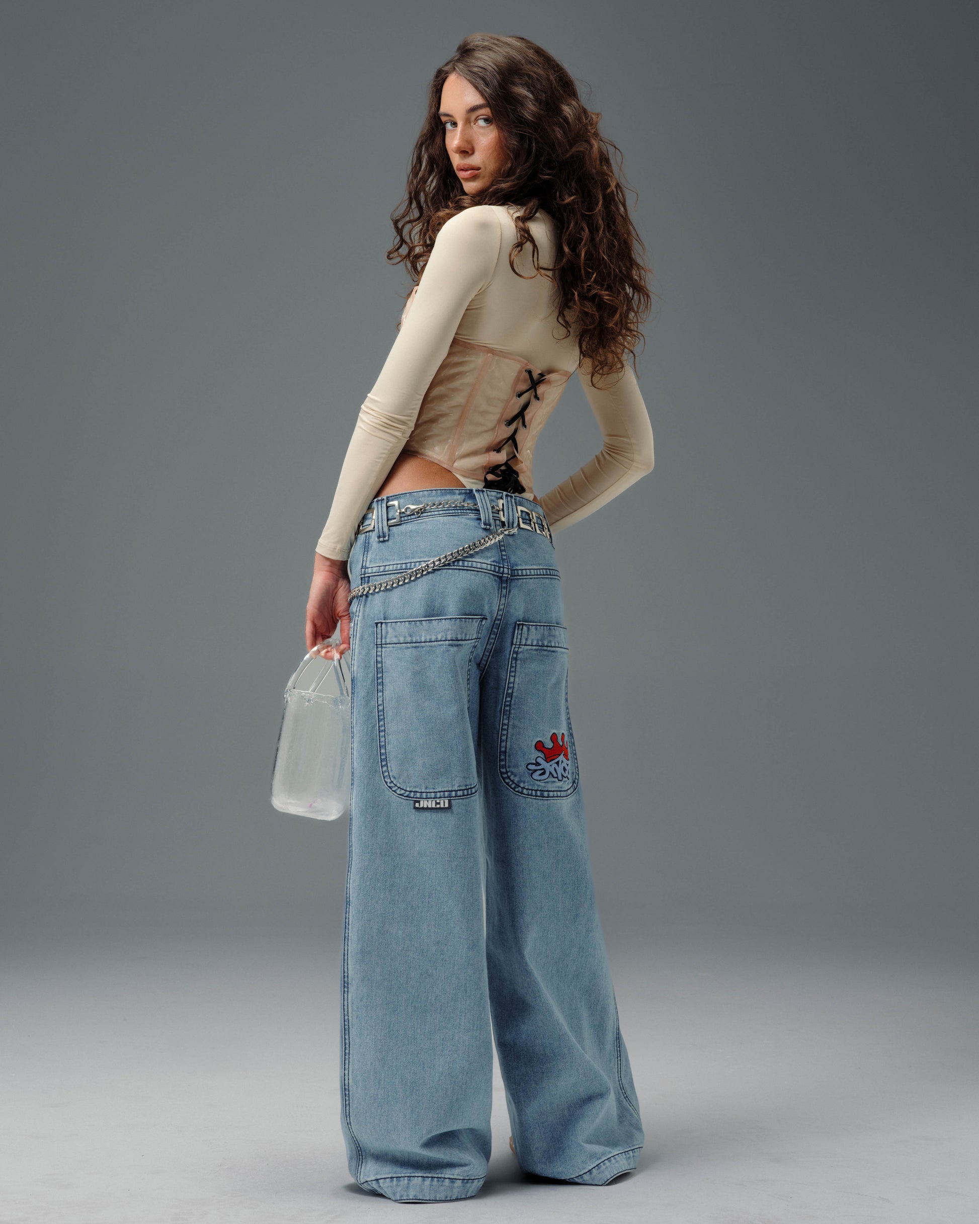 A revamped rendition of the original Twin Cannon in a classic Antique Wash. 14oz 100% cotton denim with a 3x1 left-hand weave and original contrast stitching. 26" bottom opening with double chain stitch detailing on the waistband and hem. Features the iconic JNCO Crown logo embroidery, and new custom buttons and rivets. Collectible new edition flasher included.