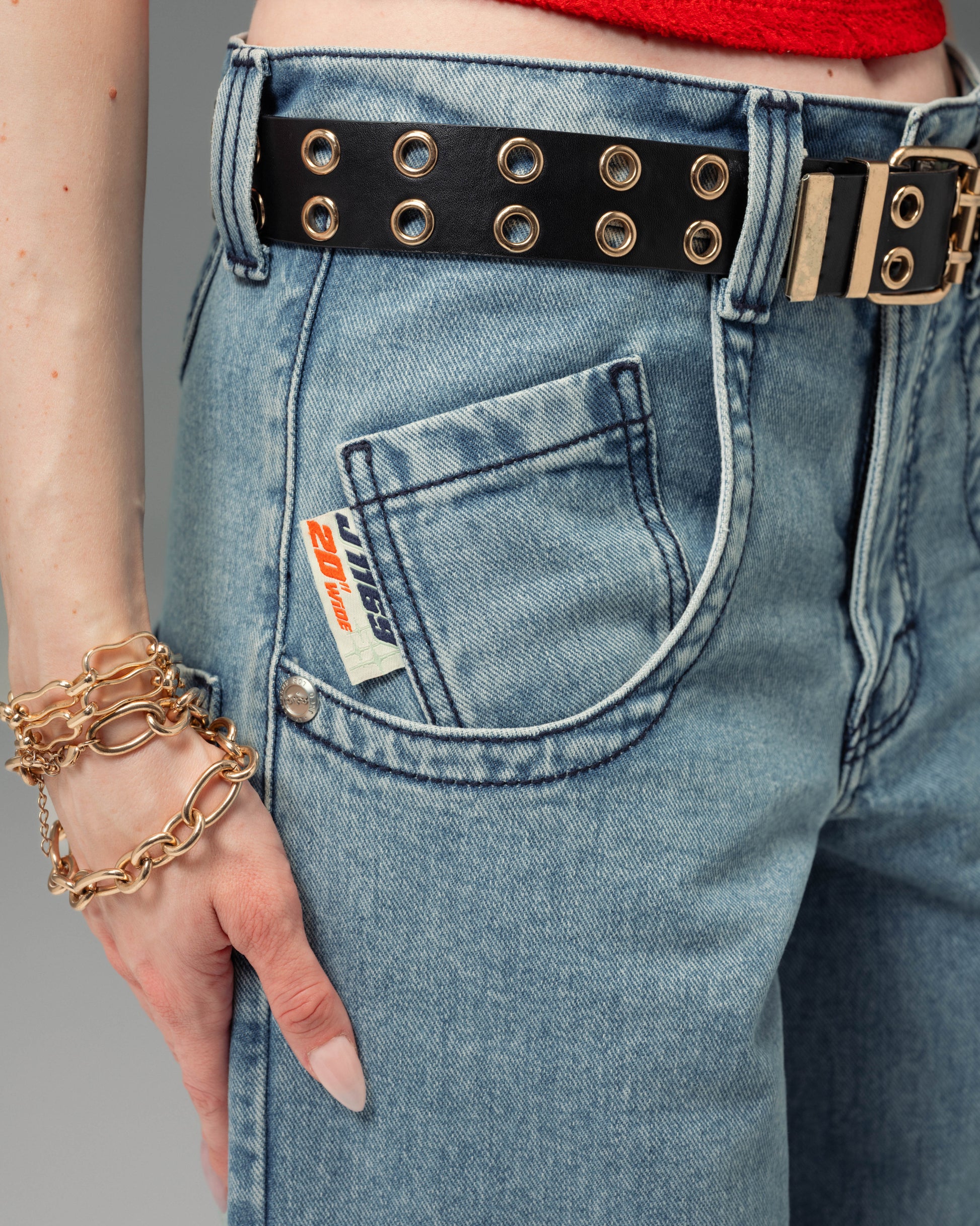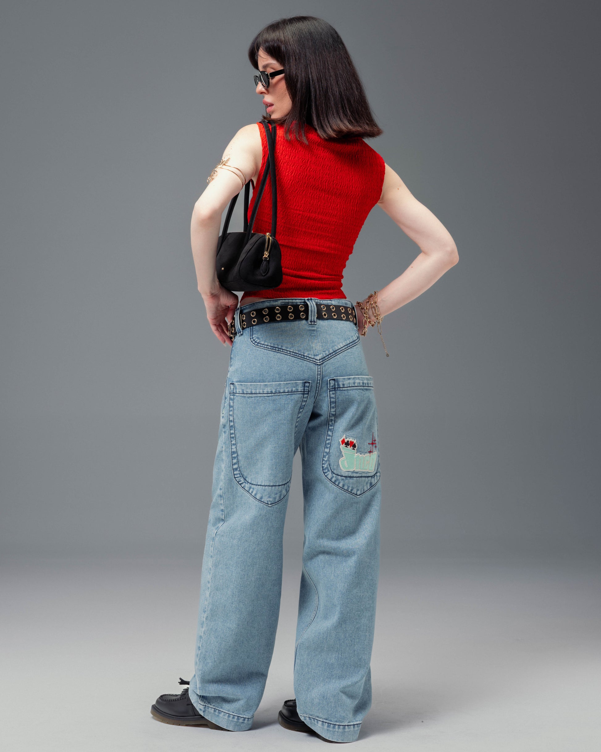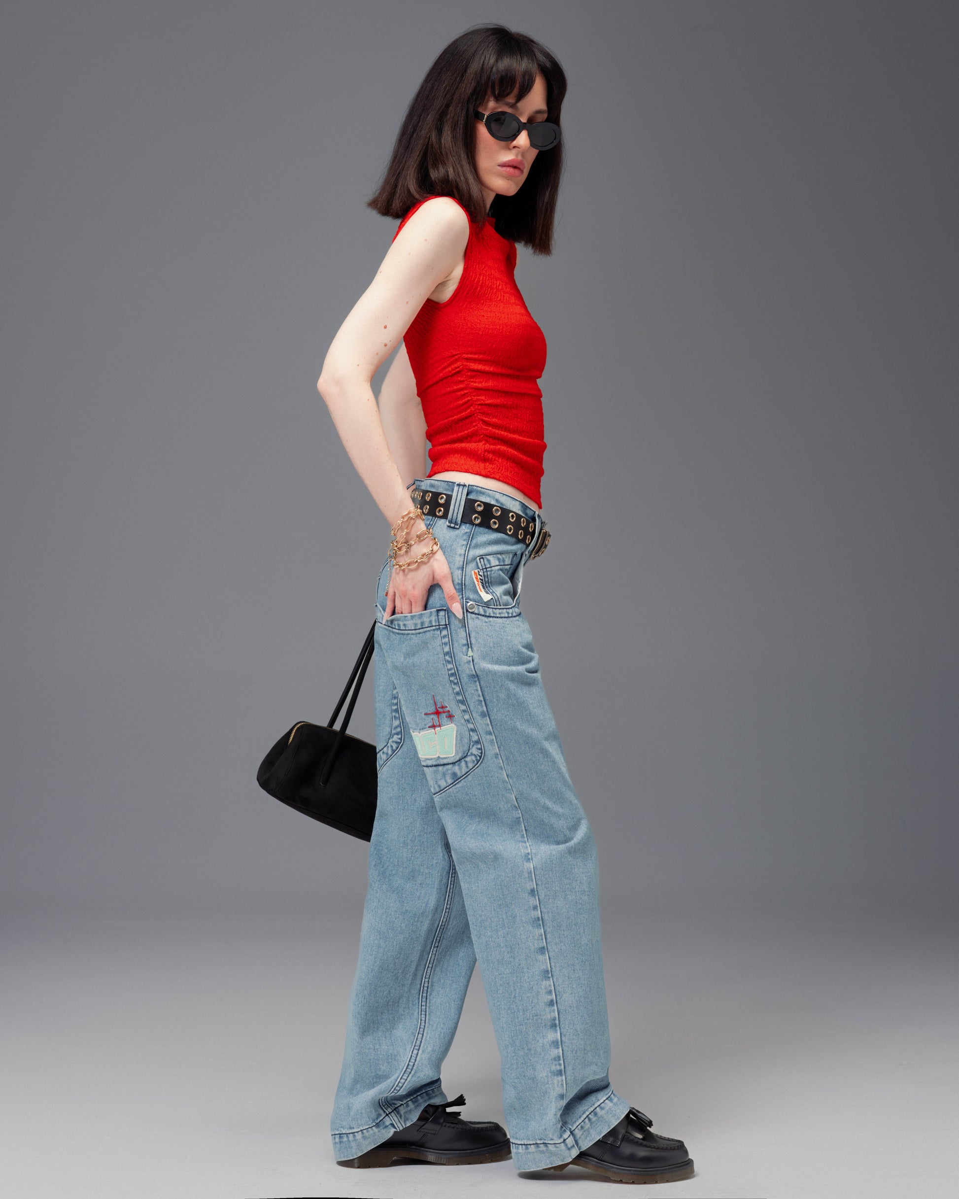 A revamped take of the original Low Down in a classic Antique Wash. 14oz 100% cotton denim with a 3x1 left-hand weave and contrast stitching. 20" bottom opening with double chain stitch detailing at the waistband and hem. Features the new JNCO Deck embroidery inspired by the four card suits, and custom buttons and rivets. Collectible new edition flasher included.