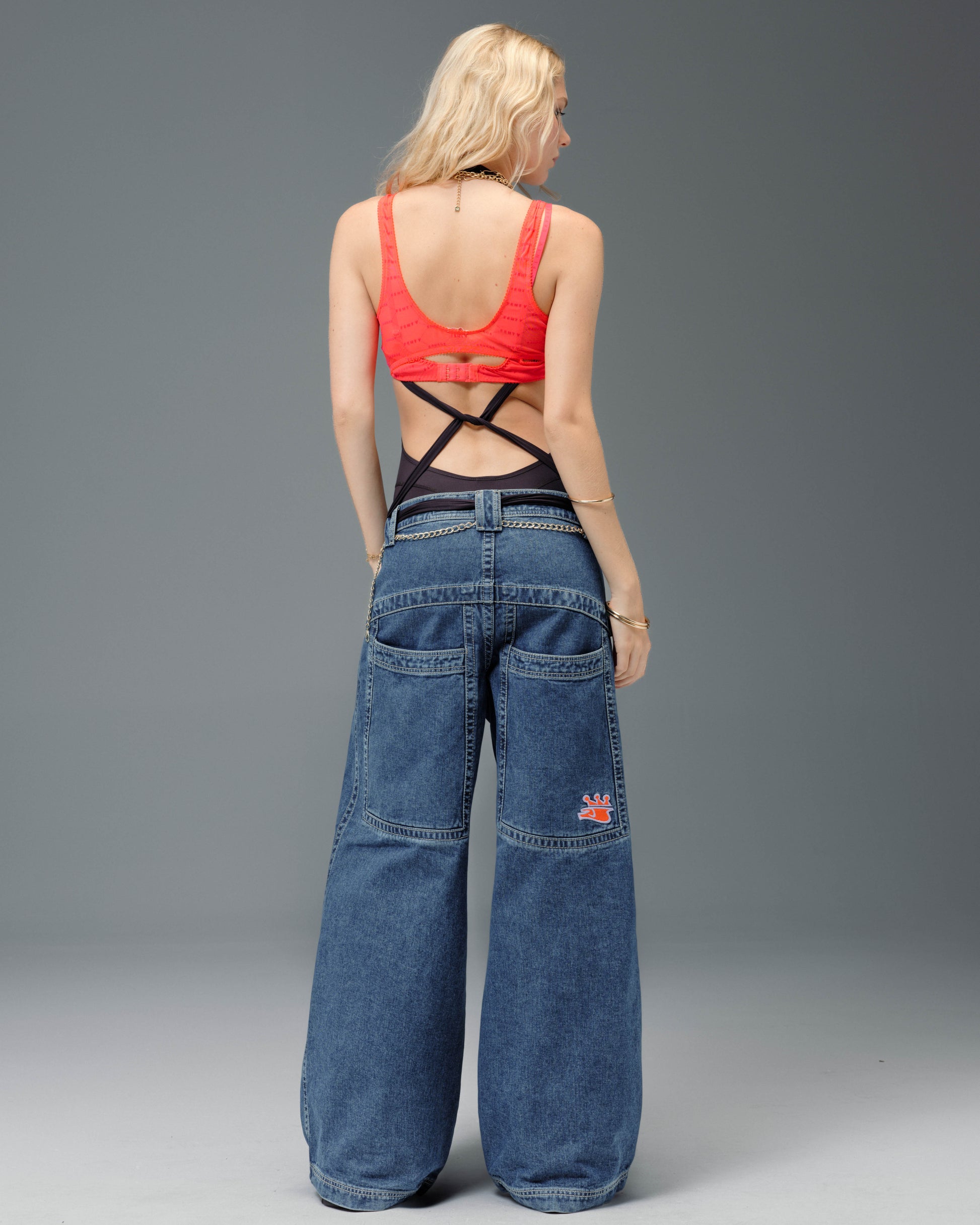 Classic 28" bottom opening in Original Dark Stone Wash. 14oz 100% cotton denim with 3x1 left hand weave. Heavy double contrast stitching. Features “Royal J” embroidery on back pocket and “Royal JNCO” on front leg. Includes collectible King Size flasher. Limited Edition – limited stock.