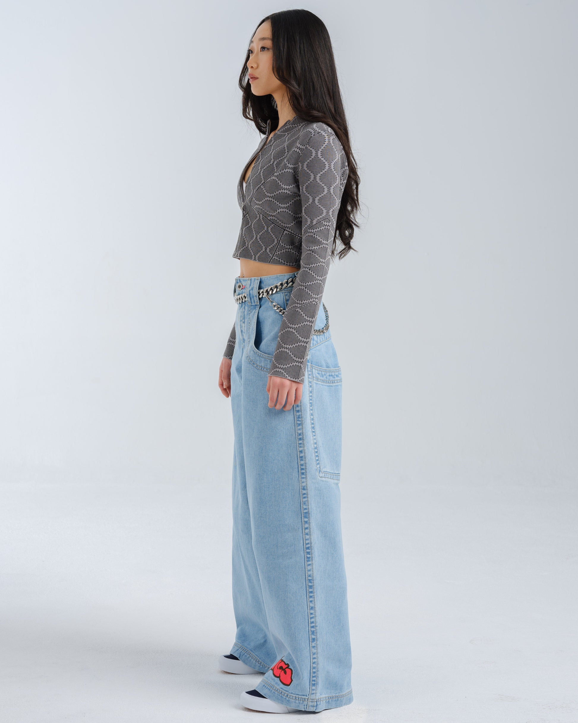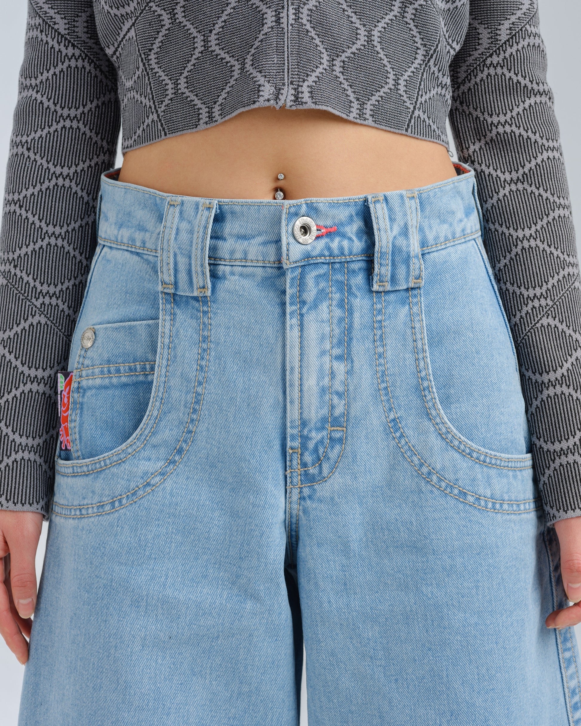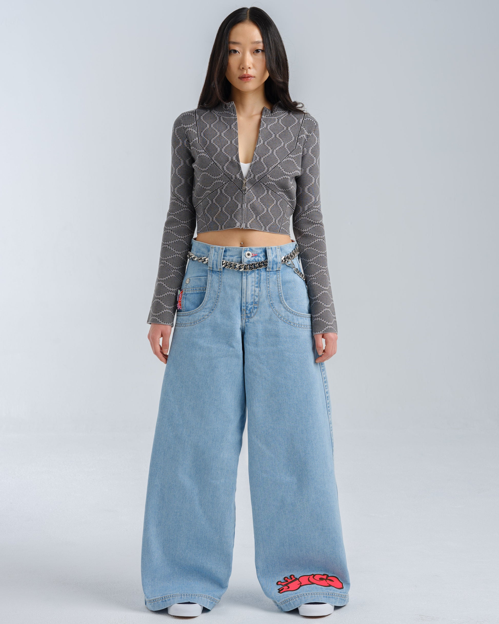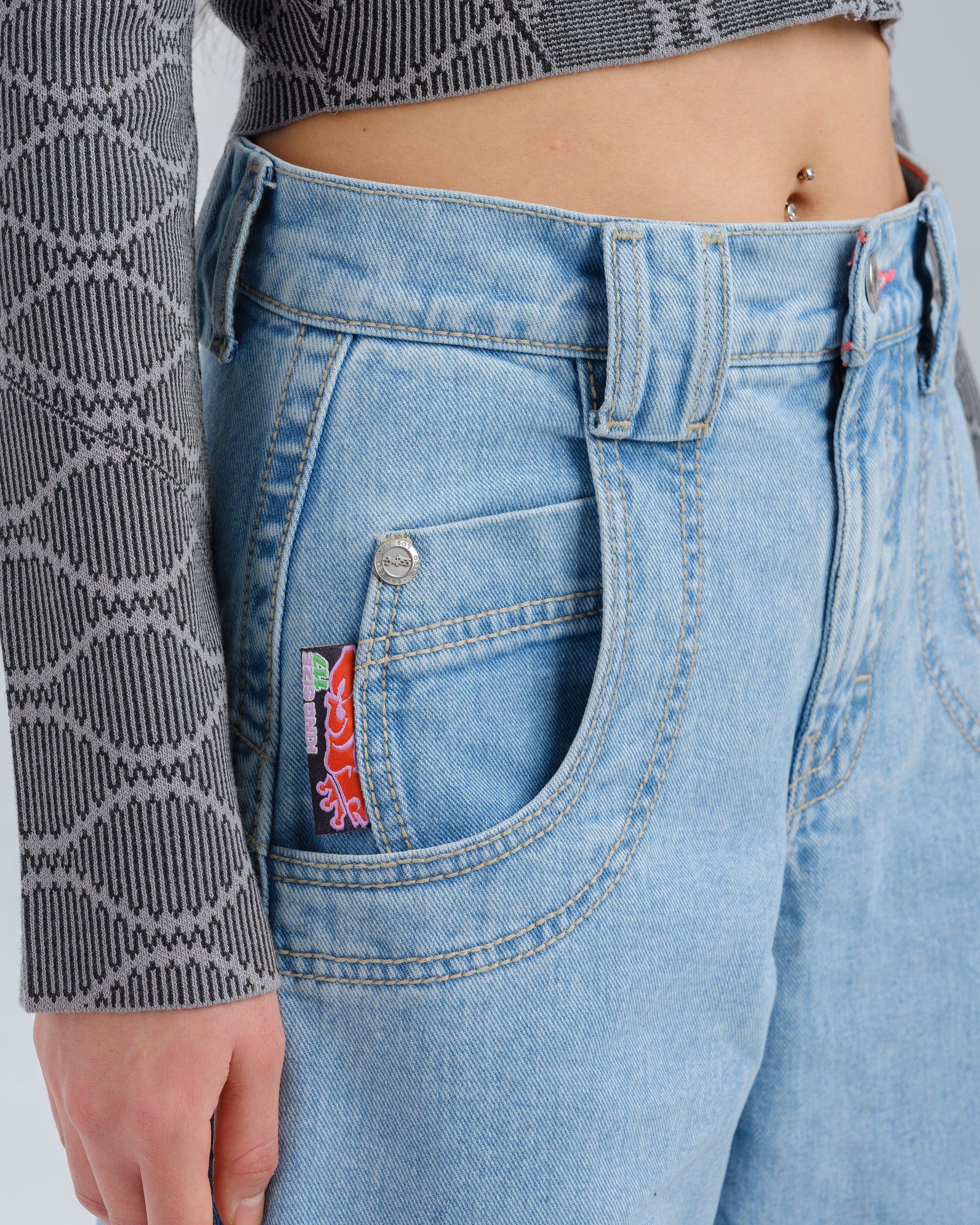 Classic 28" bottom opening in Original Vintage Wash. 14oz 100% cotton denim with heavy double contrast stitching. Features “Royal J” embroidery on back pocket and “Royal JNCO” on front leg. Includes collectible flasher. Limited Edition – limited stock.