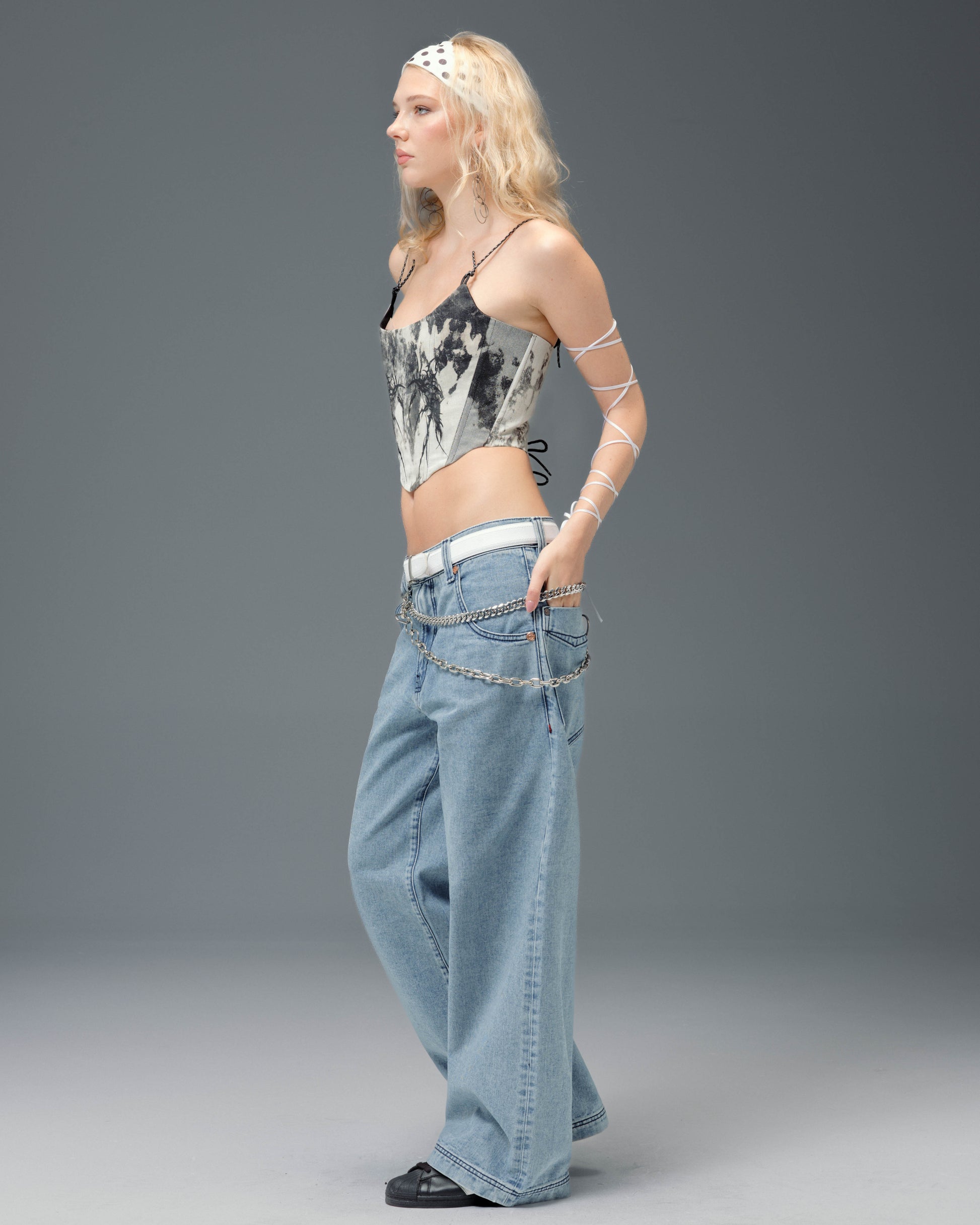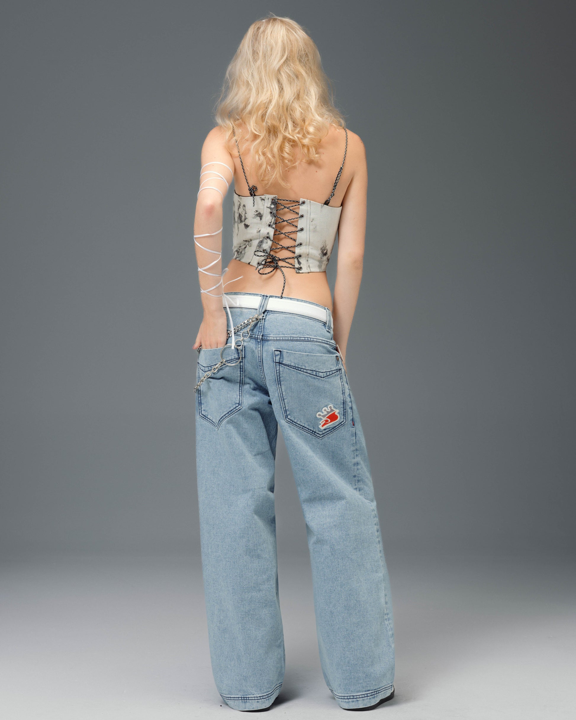A fresh revival of the original Pipes in an authentic Antique Wash. 14oz 100% cotton denim with a 3x1 left-hand weave and contrast stitching. 23" bottom opening with angular pockets and double chain stitch detailing on the waistband and hem. Features the new Easy Wide Pipes “JNCO J” embroidery, custom buttons and rivets, and a collectible new edition flasher.