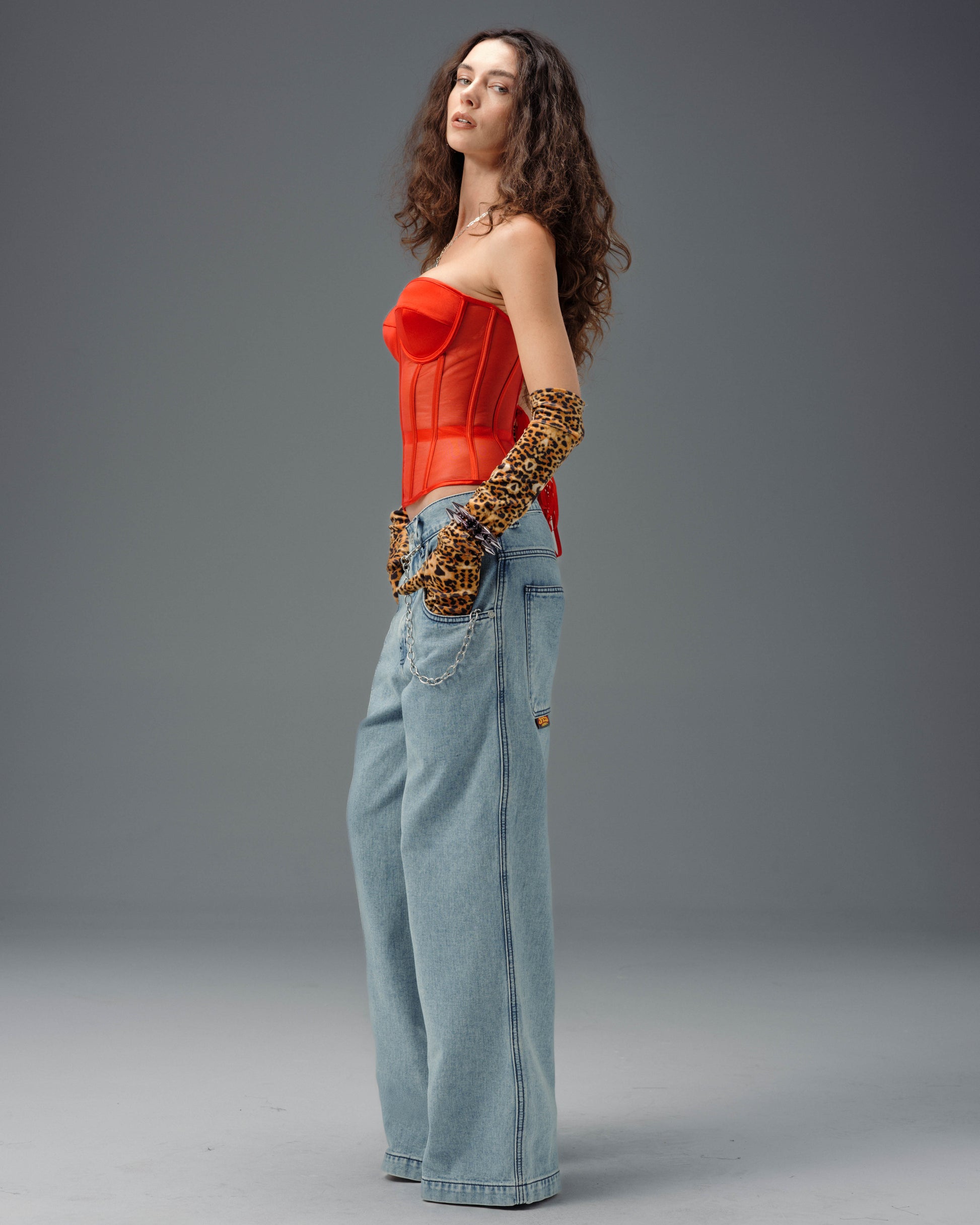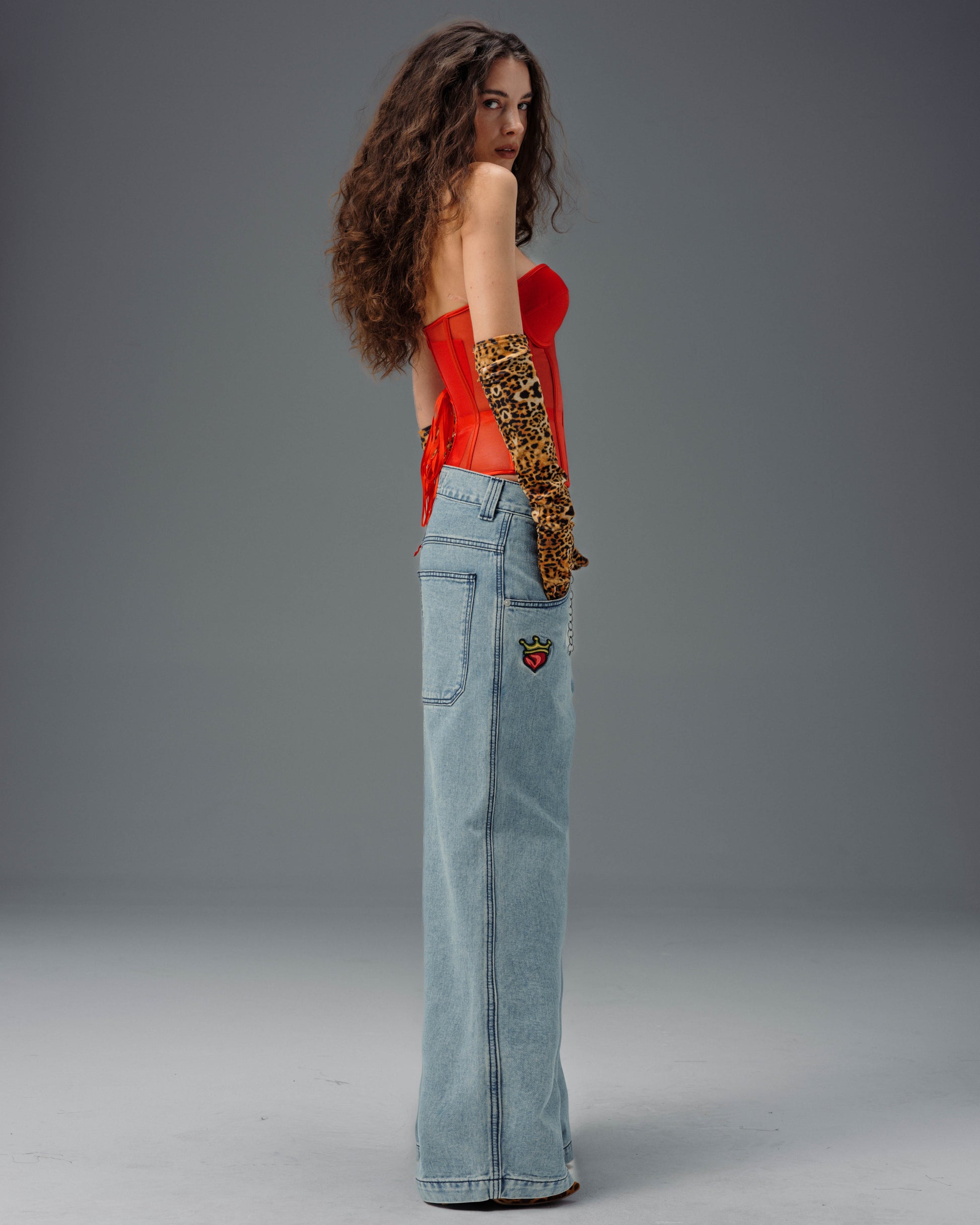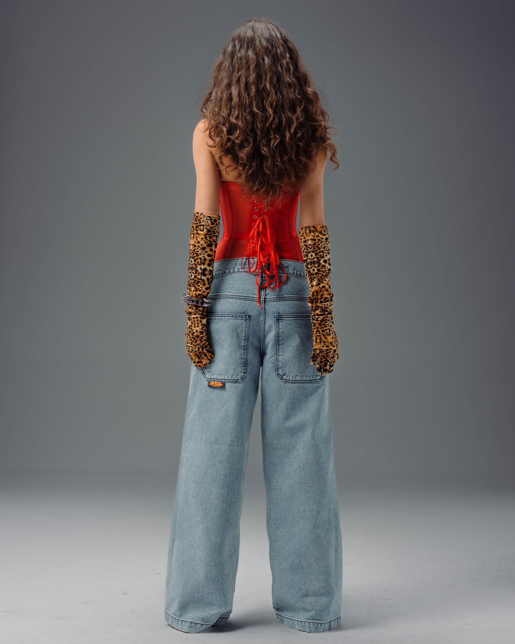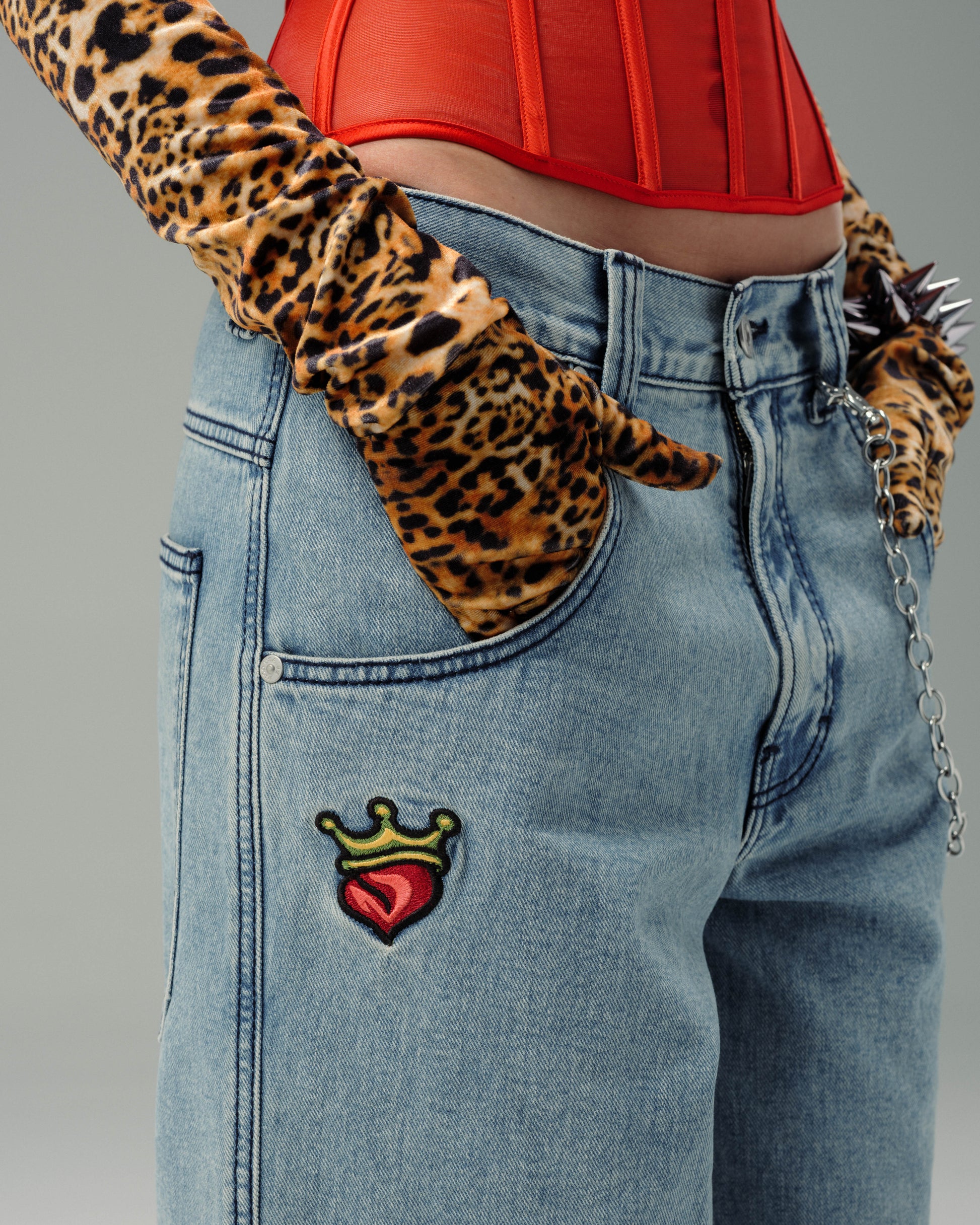 JNCO classic in Original Antique Wash. 23" bottom opening with original artwork, labels, and front right pocket embroidery. 14oz 100% cotton denim with contrast stitching. Collectible flasher included.